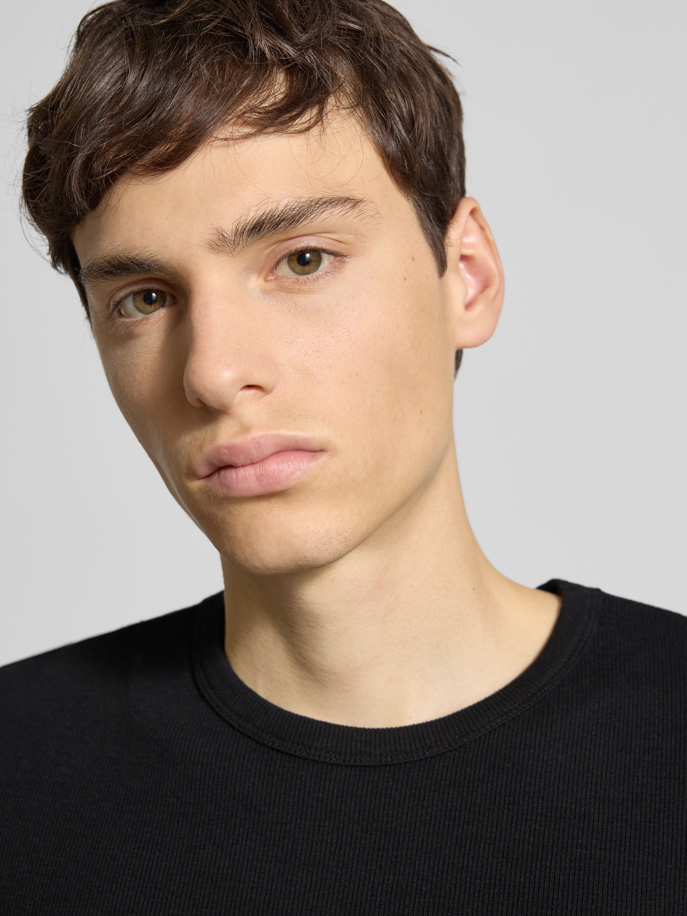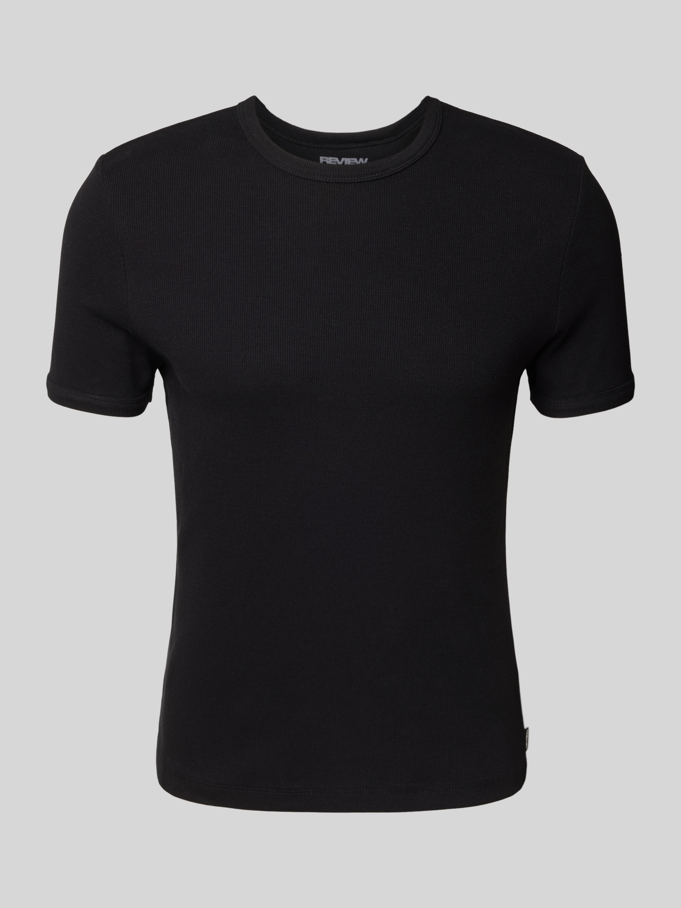 T-shirt z prążkowanym okrągłym dekoltem - czarny