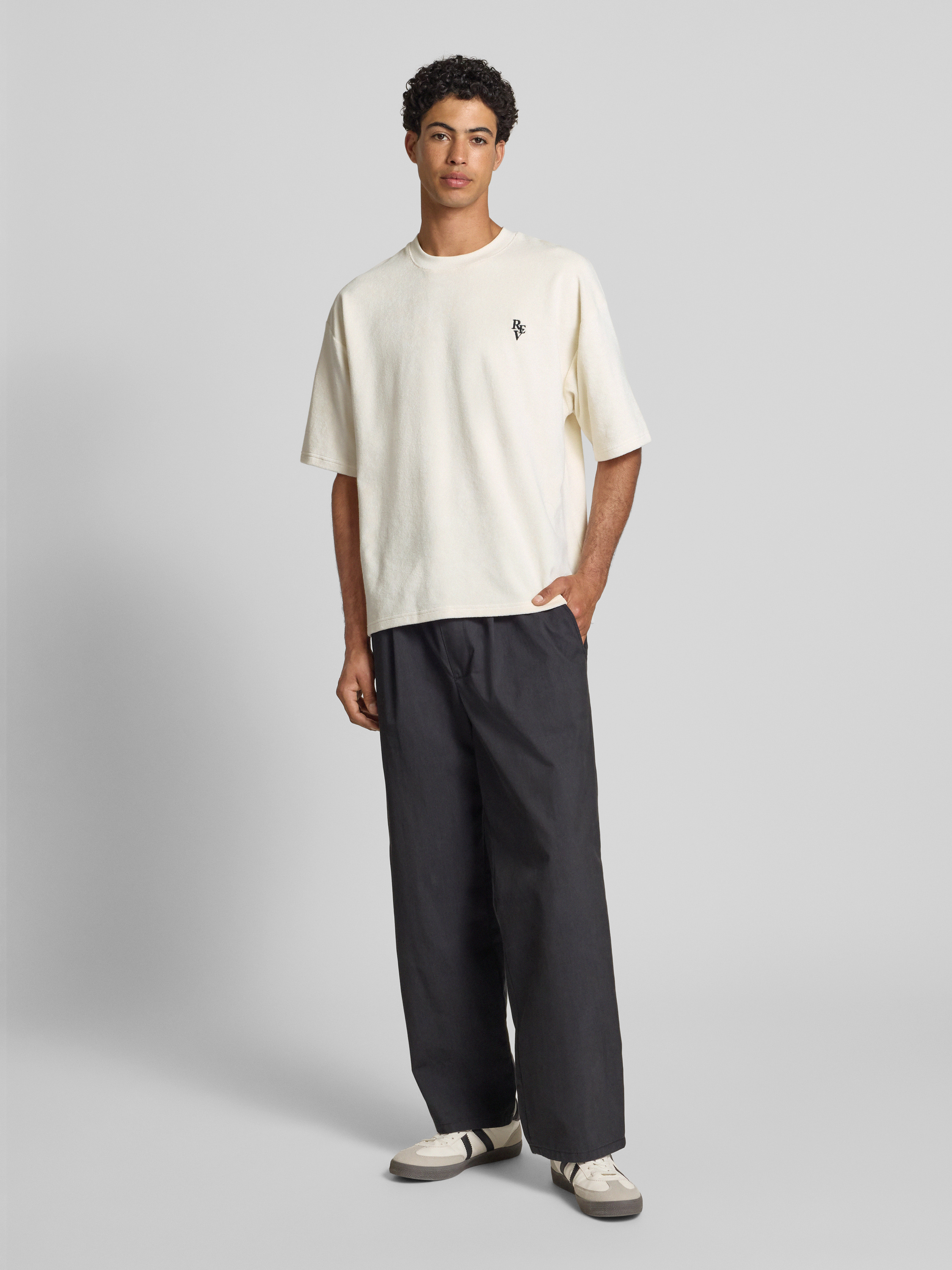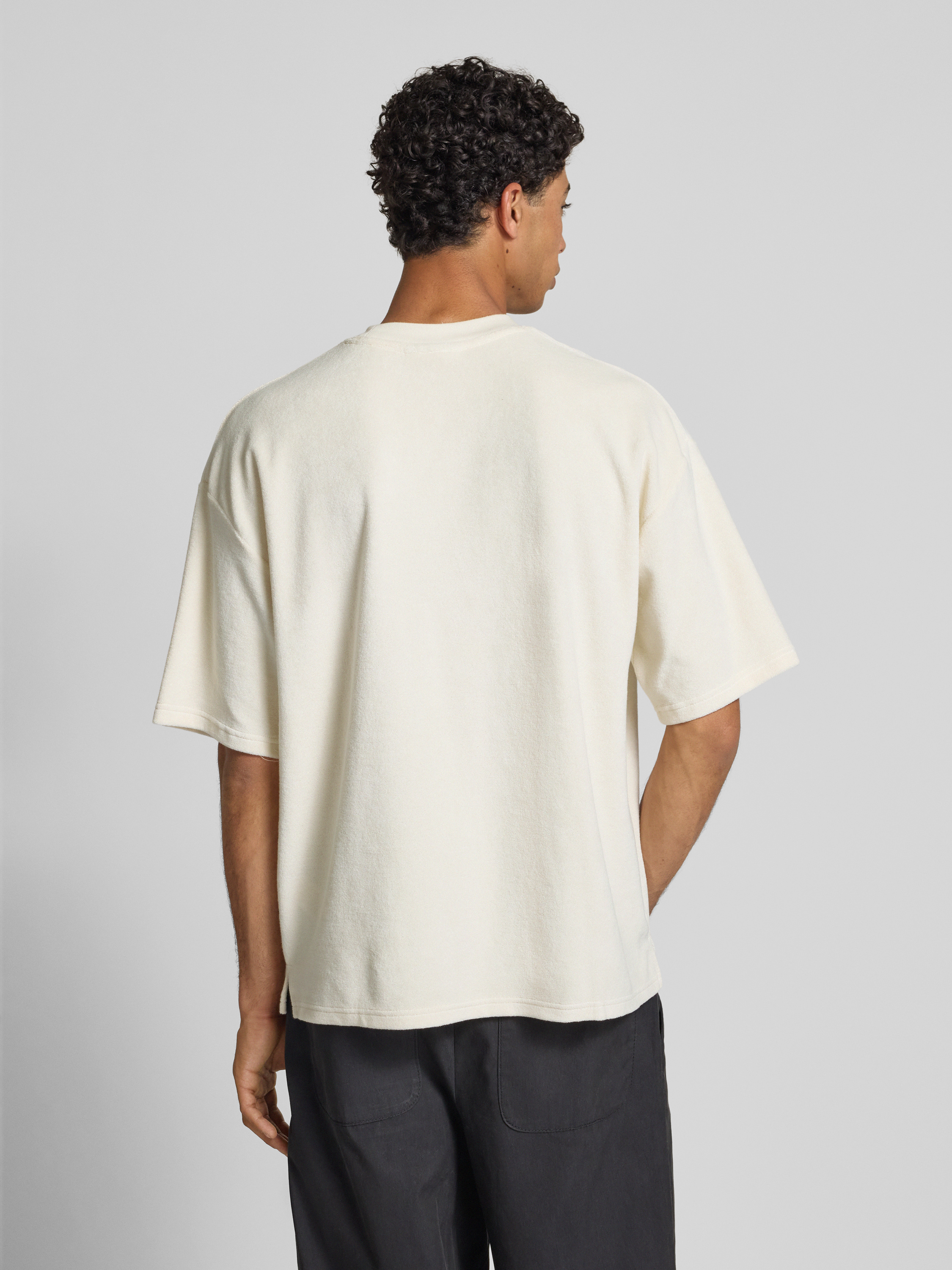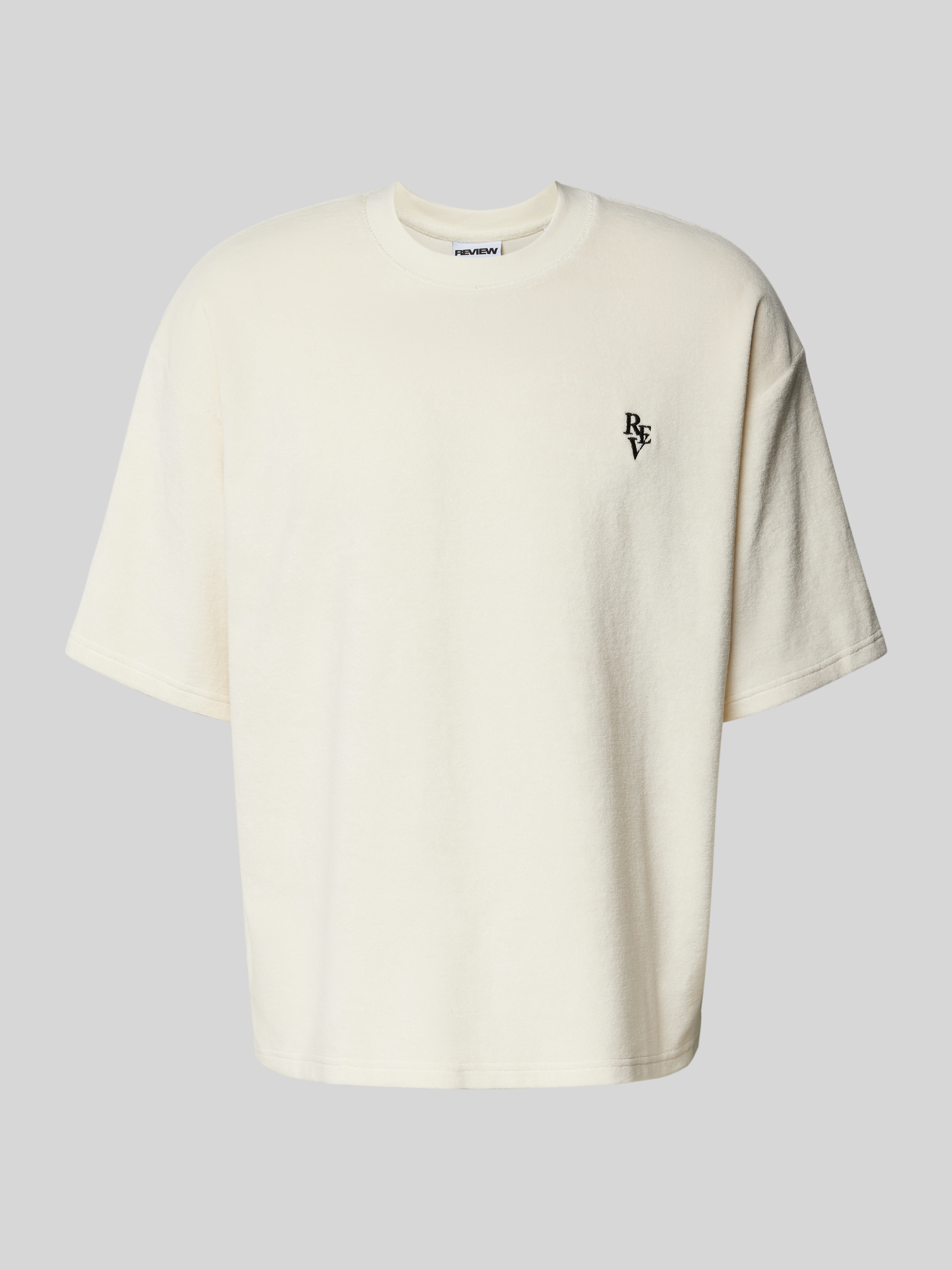 T-shirt z prążkowanym okrągłym dekoltem - écru