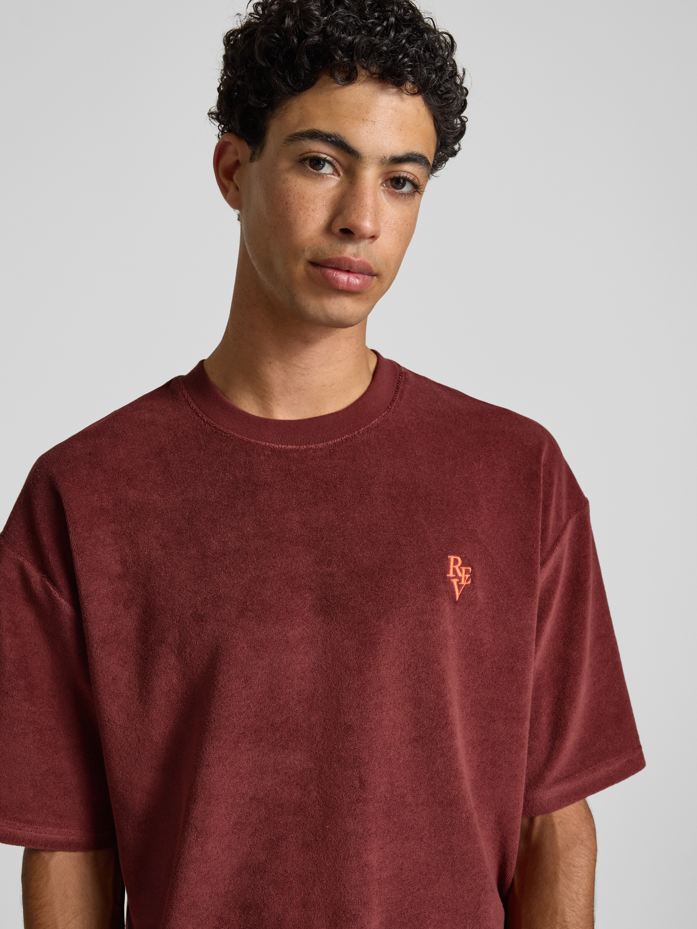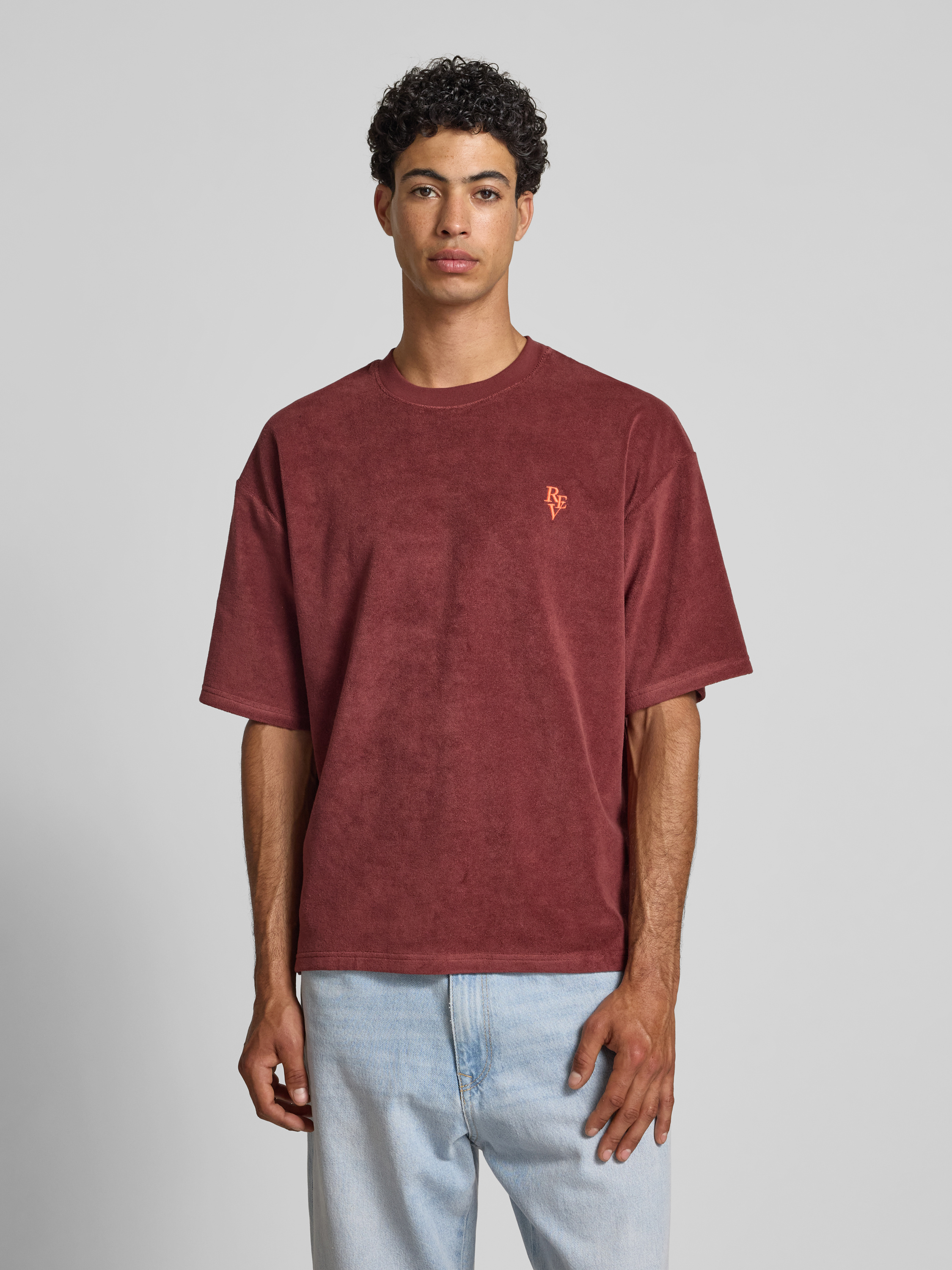 T-shirt z prążkowanym okrągłym dekoltem - rdzawoczerwony