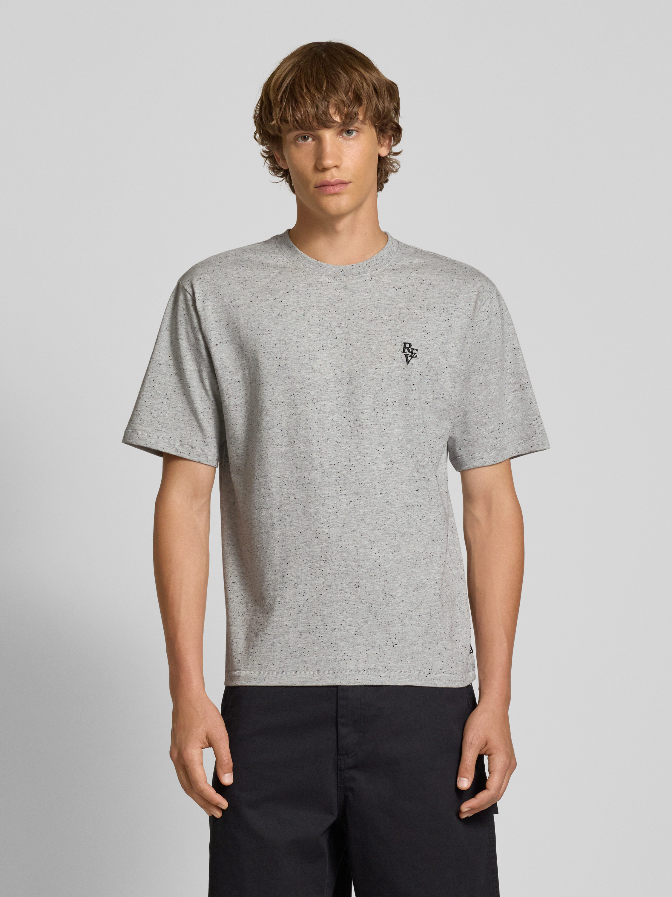 T-shirt z wyhaftowanym logo - jasnoszary melanż