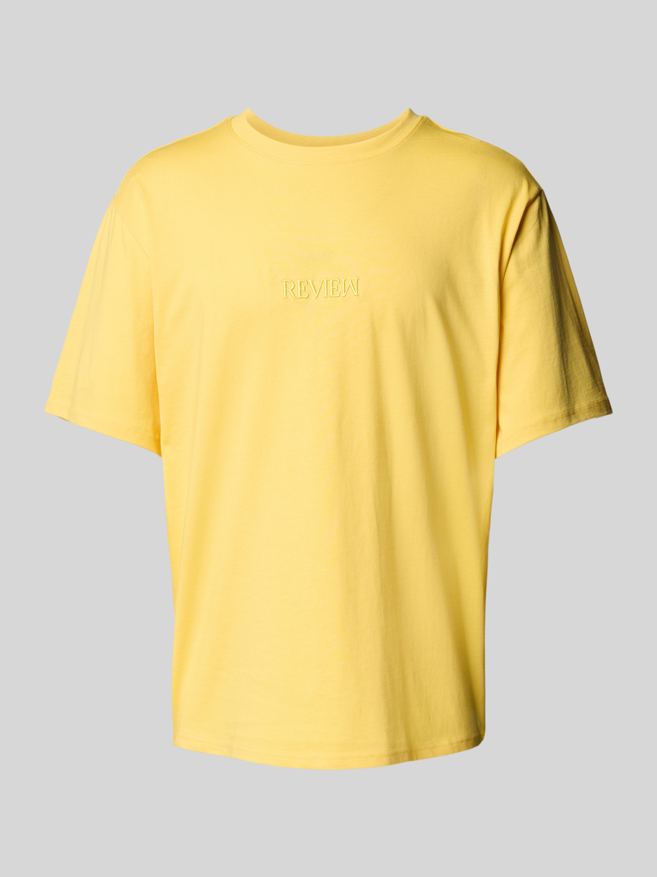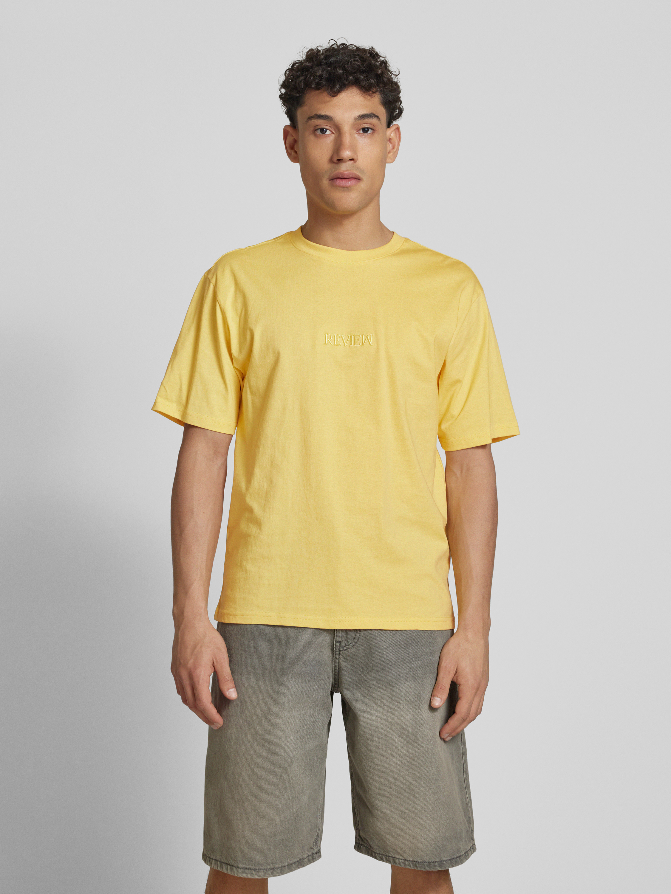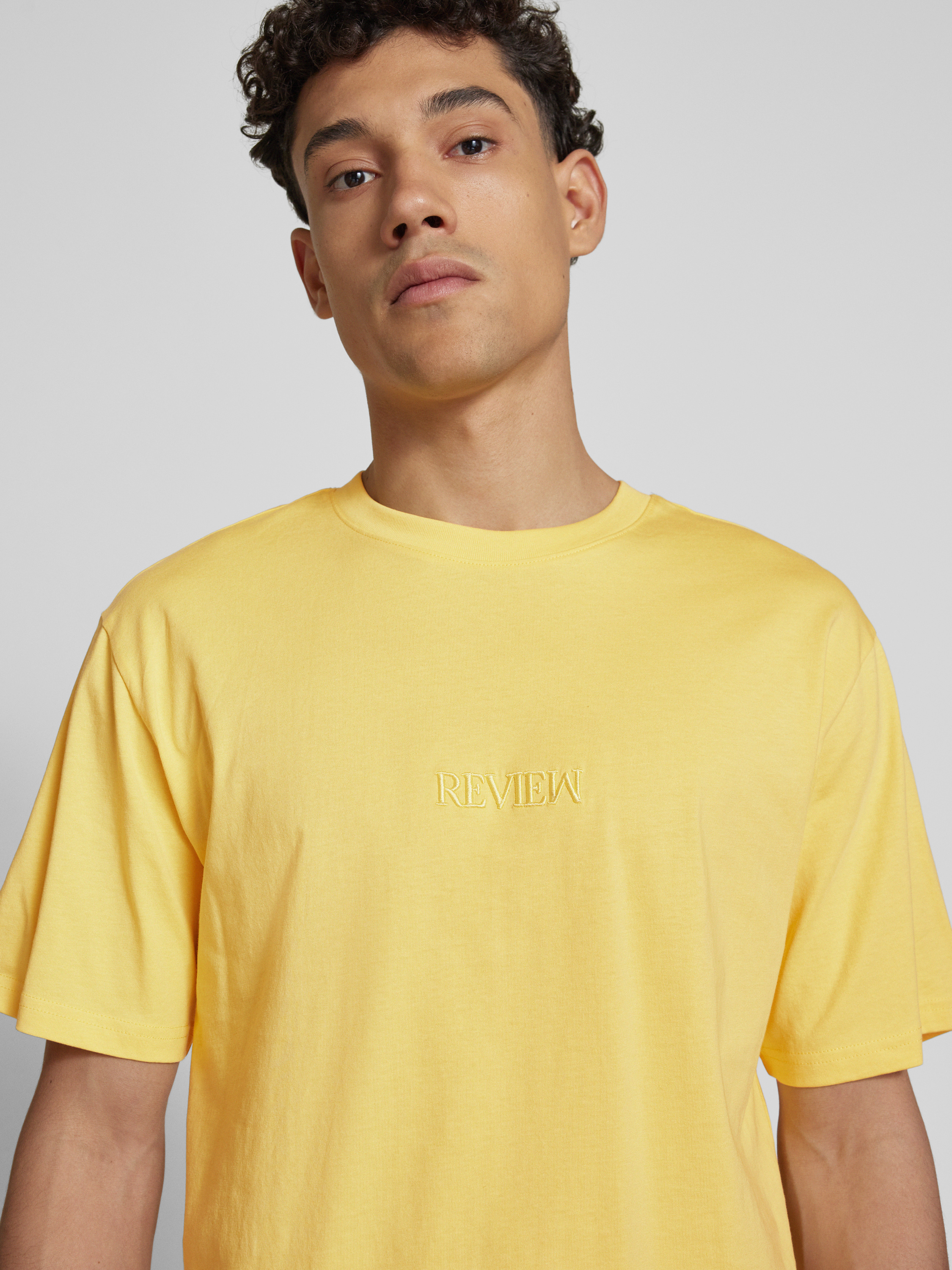 T-shirt z wyhaftowanym logo - pastelowy żółty