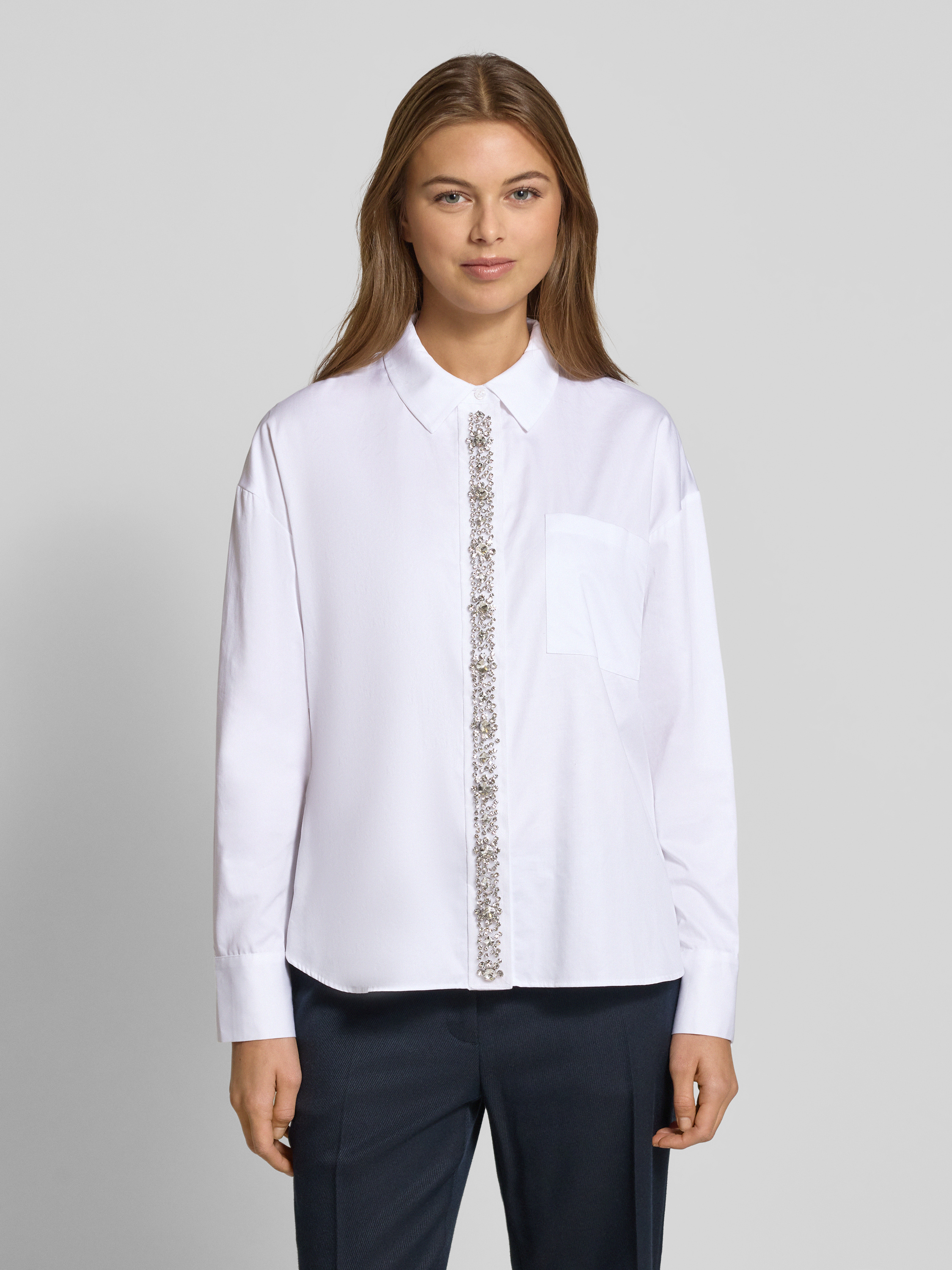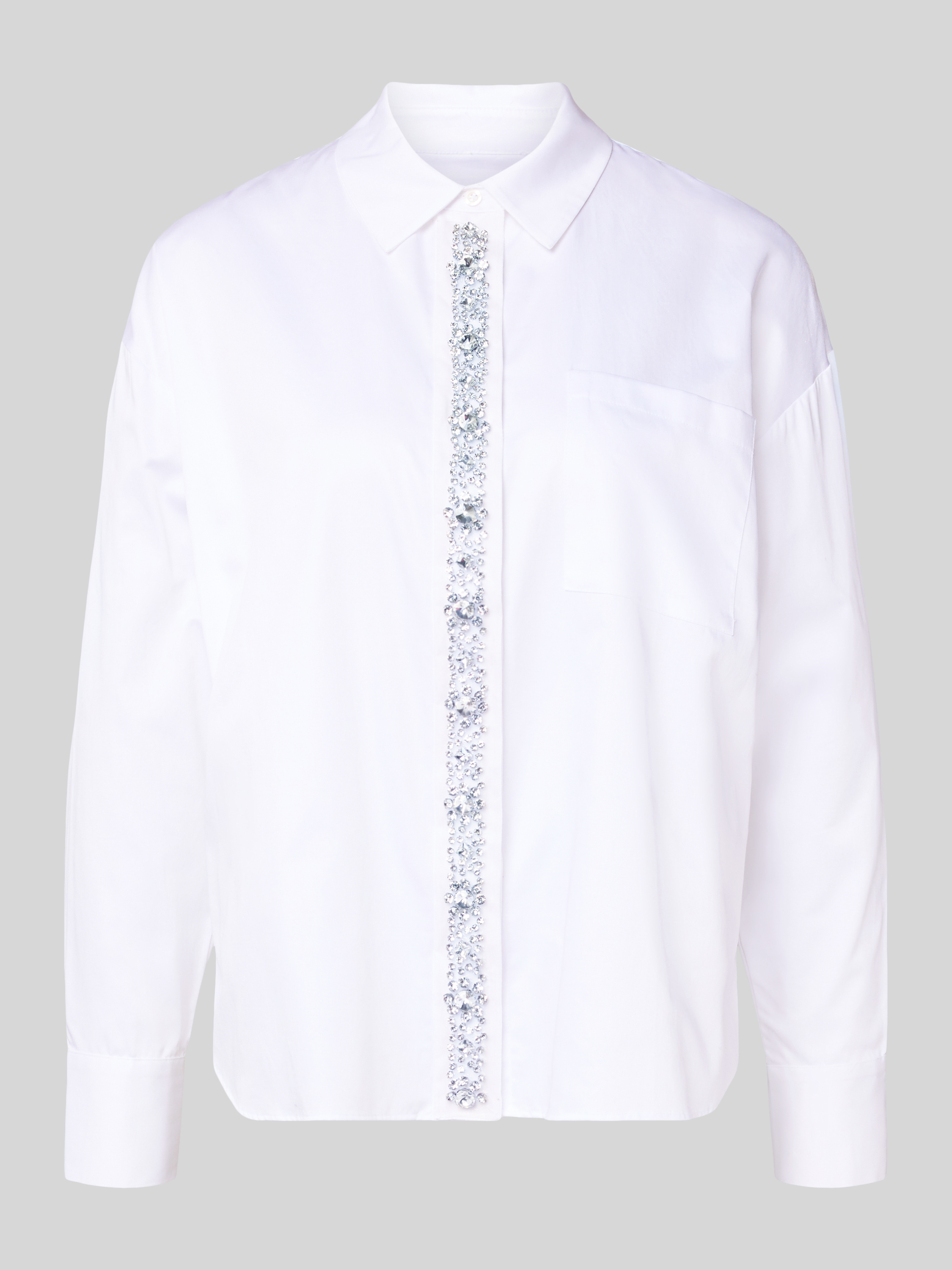 Bluzka koszulowa o kroju relaxed fit z obszyciem kamieniami stras - biały