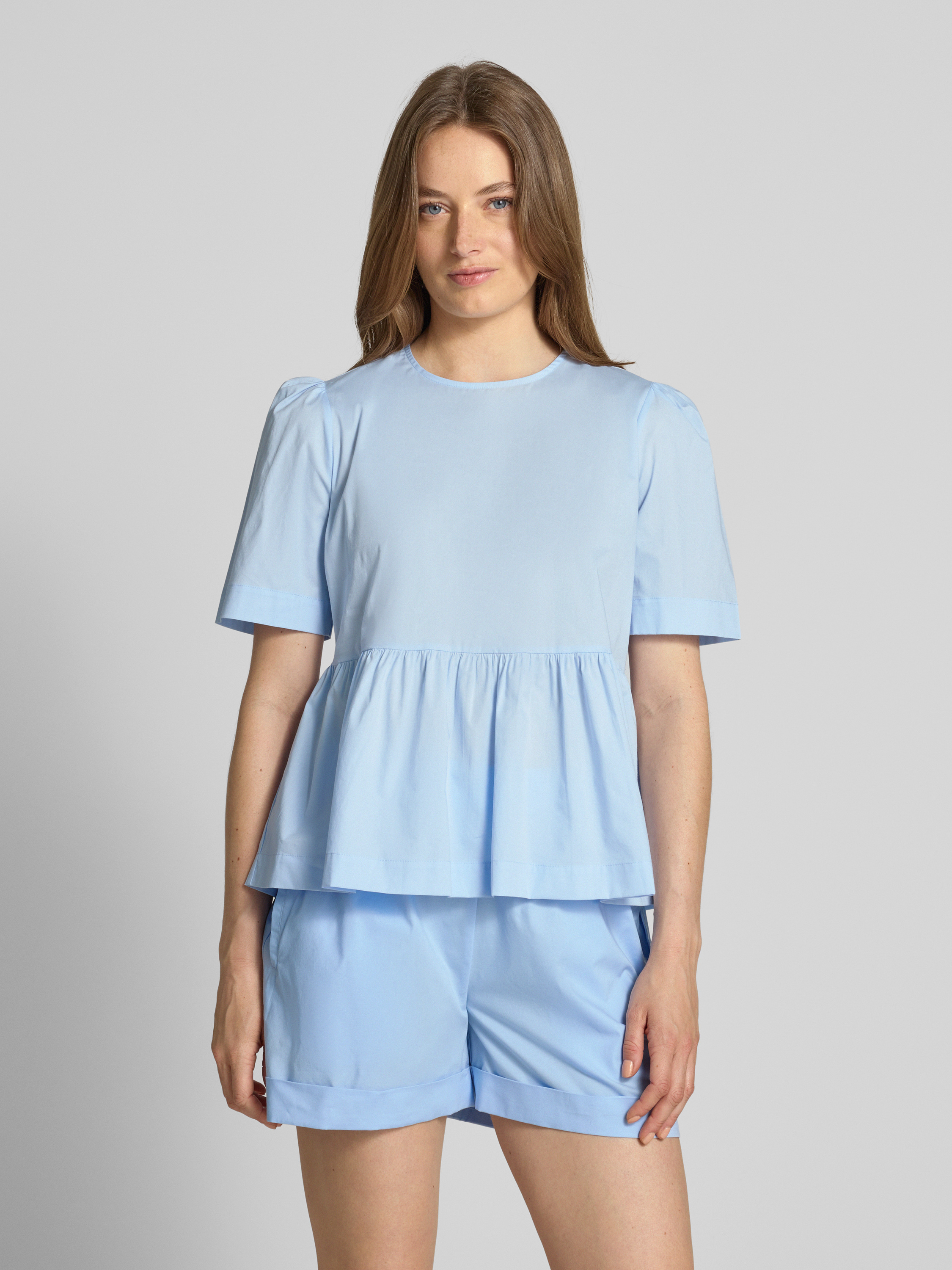Bluzka z okrągłym dekoltem i zapięciem na guzik - niebieski