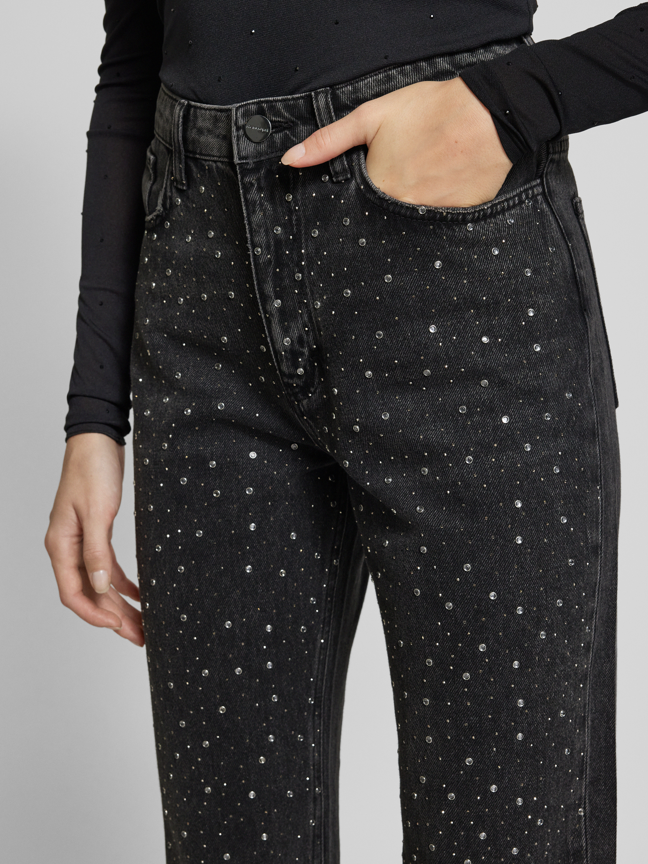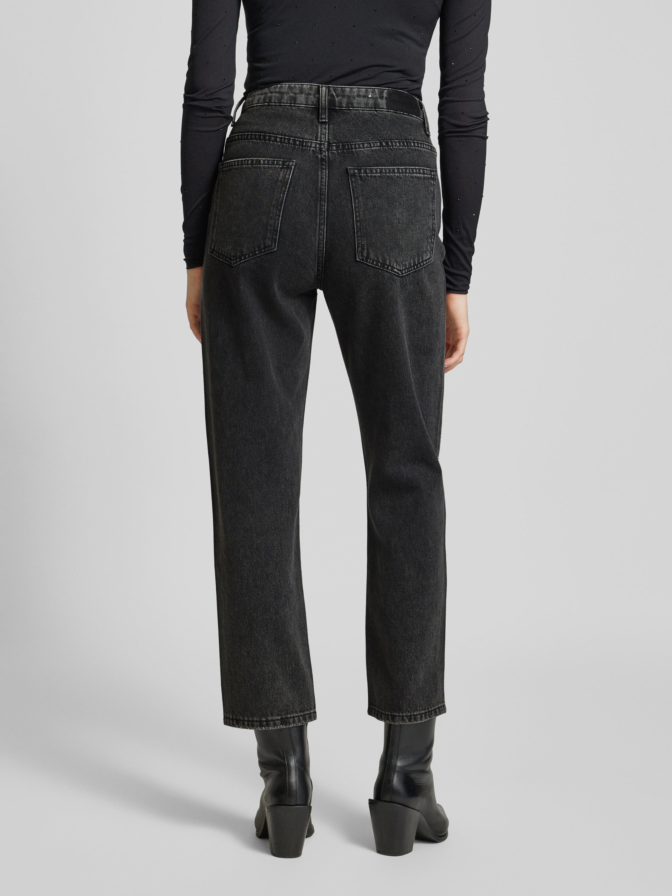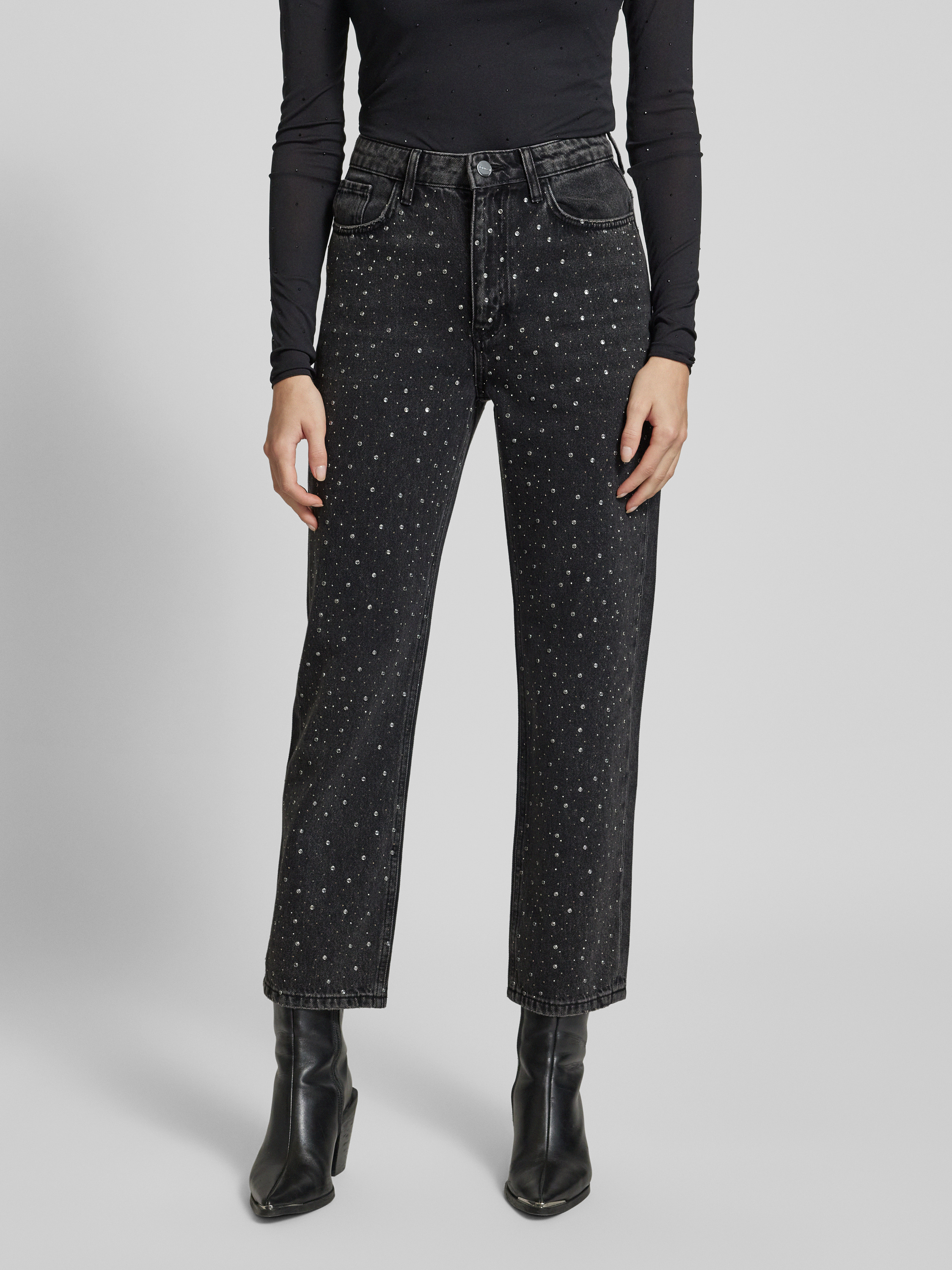 Jeansy o kroju vintage straight fit z obszyciem kamieniami stras - średnioszary