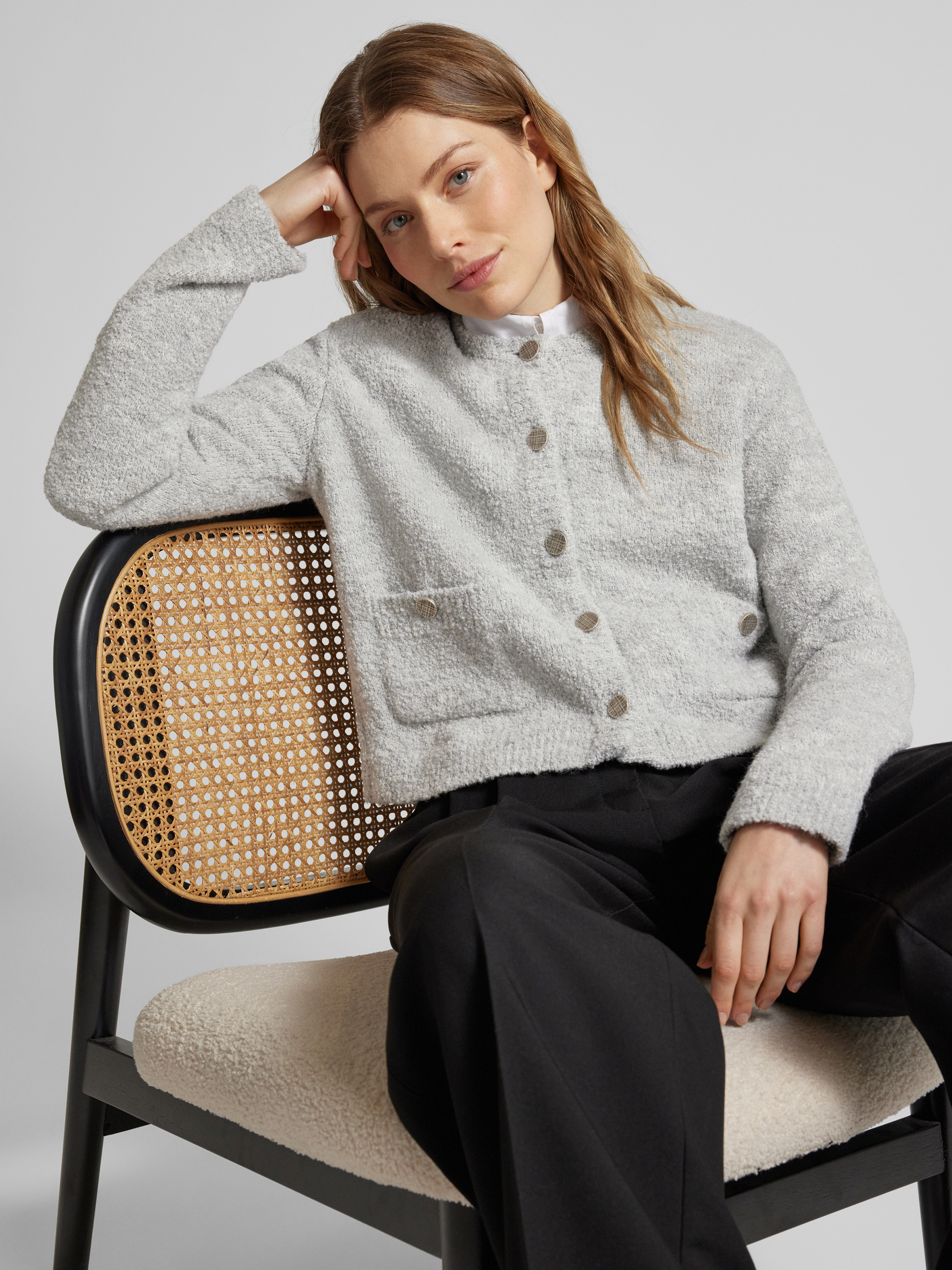 Kardigan z listwa guzikową na całej długości - średnioszary