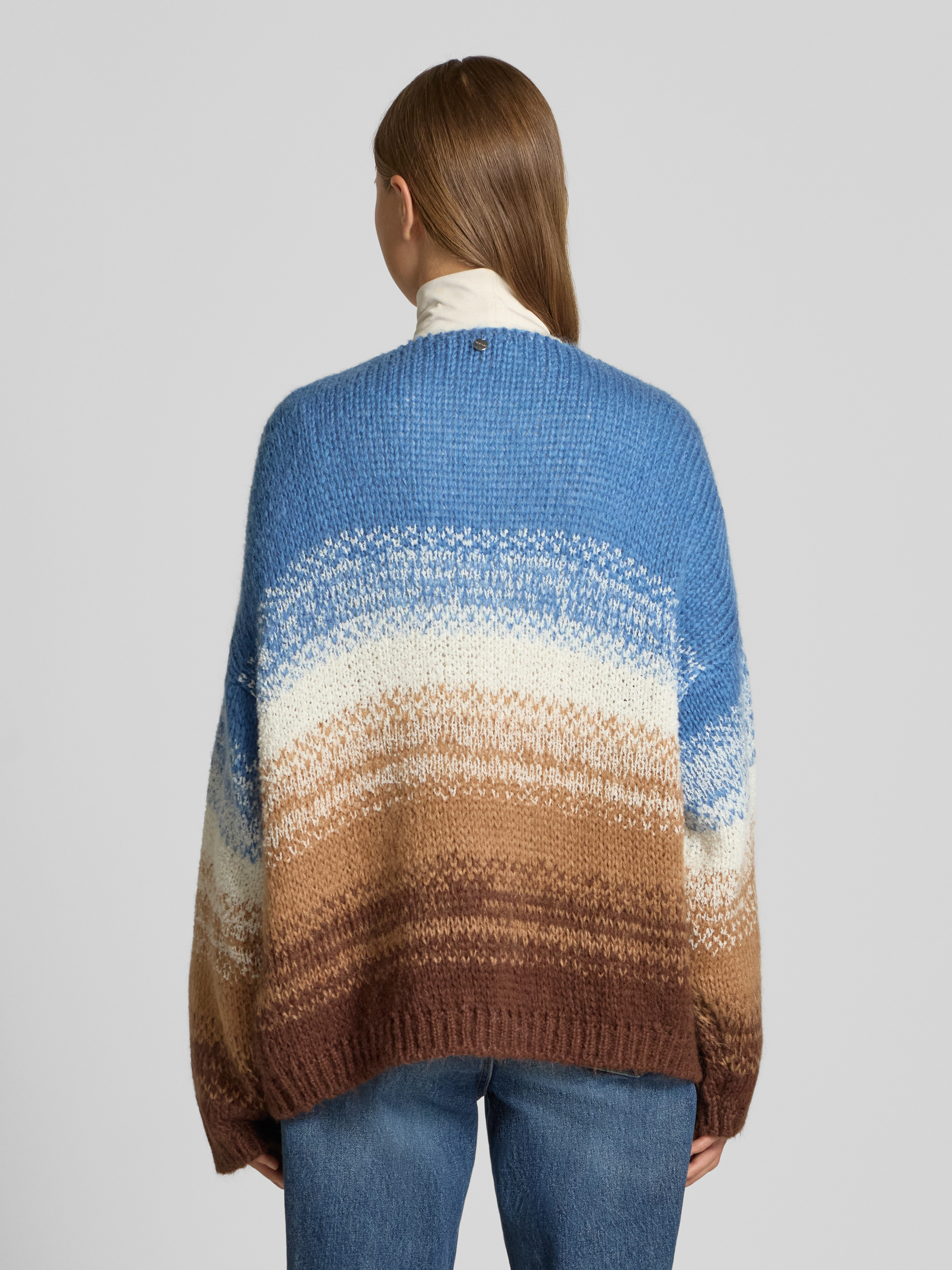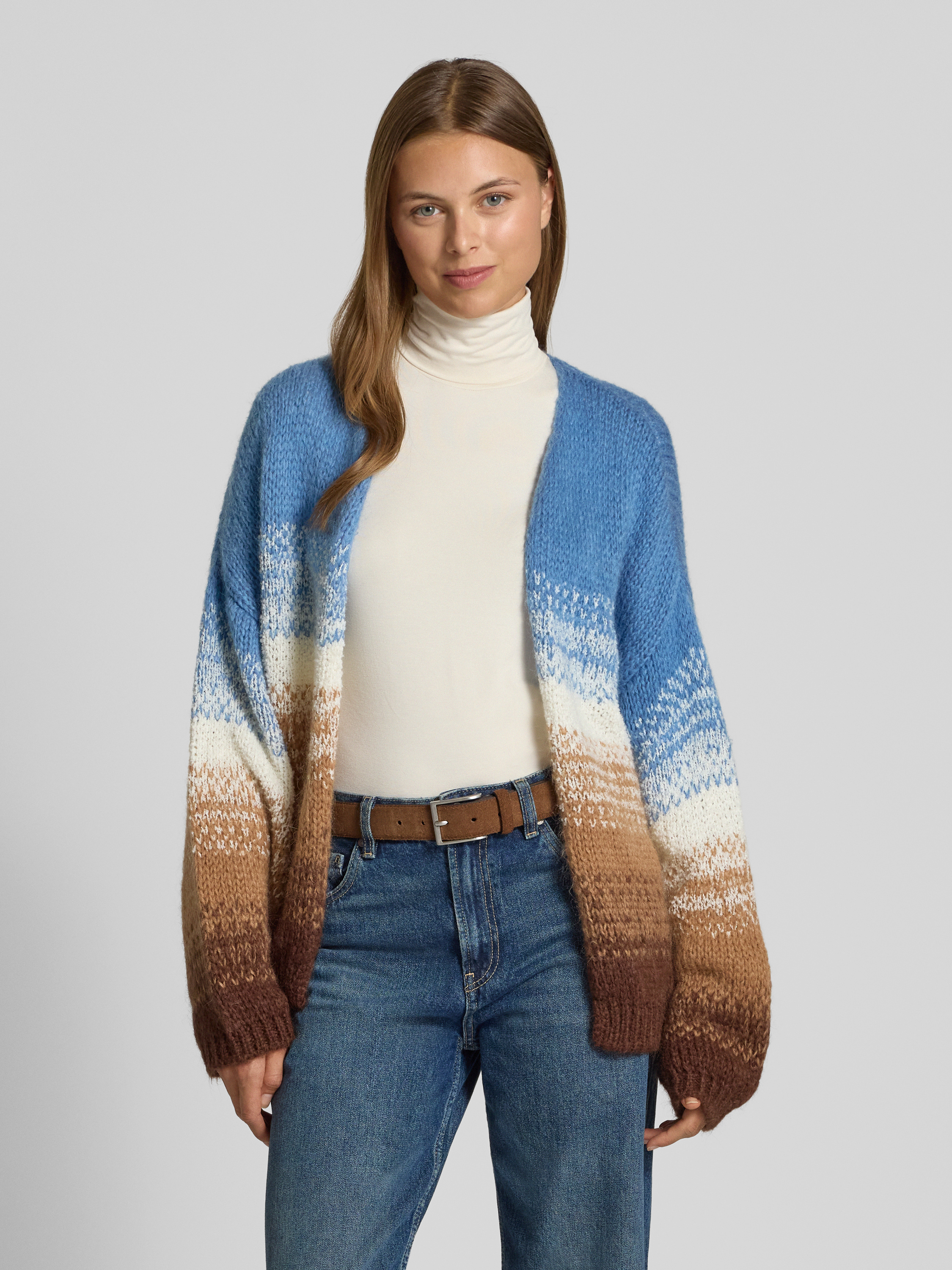Kardigan z prążkowanymi wykończeniami - szaroniebieski