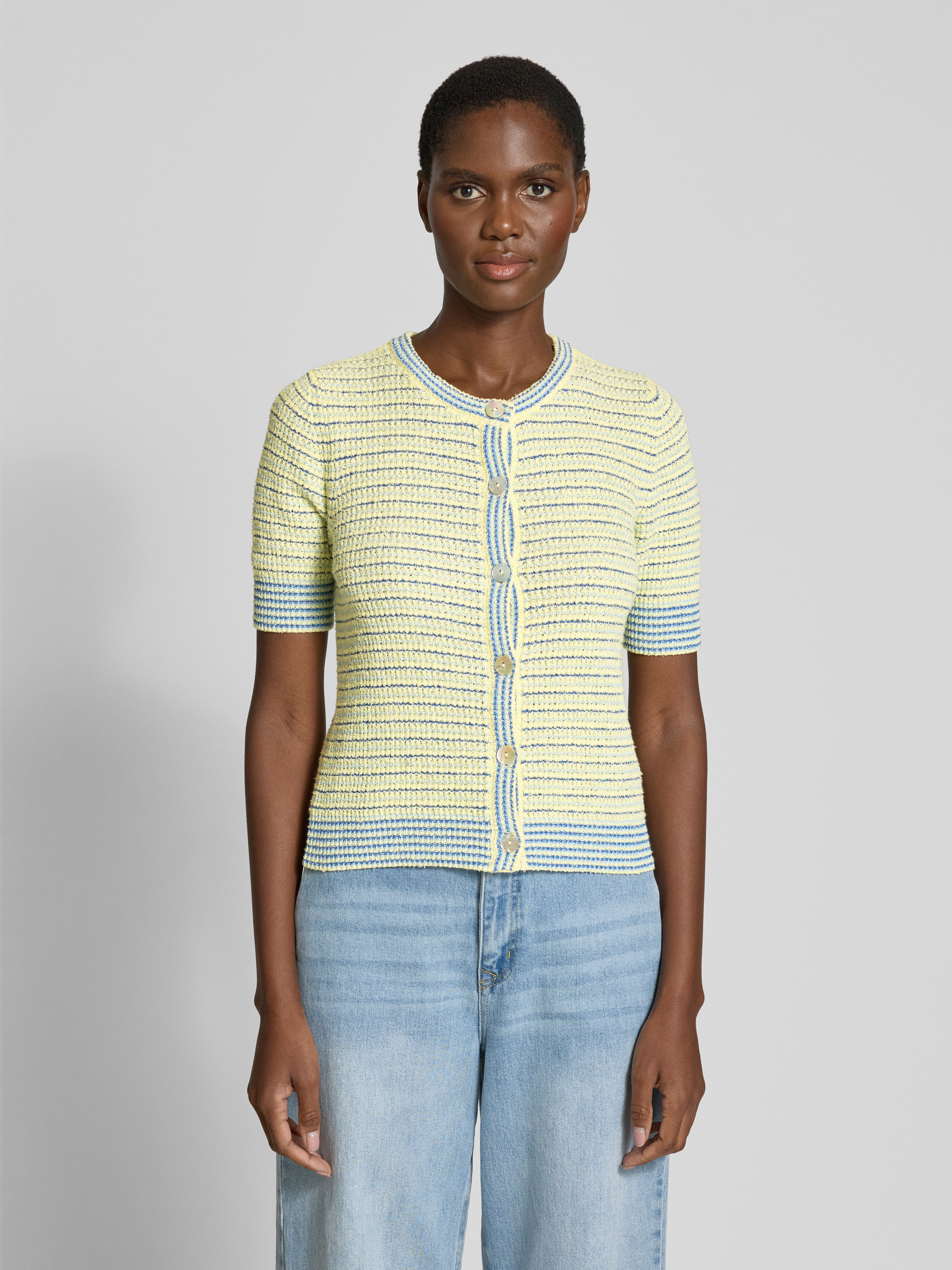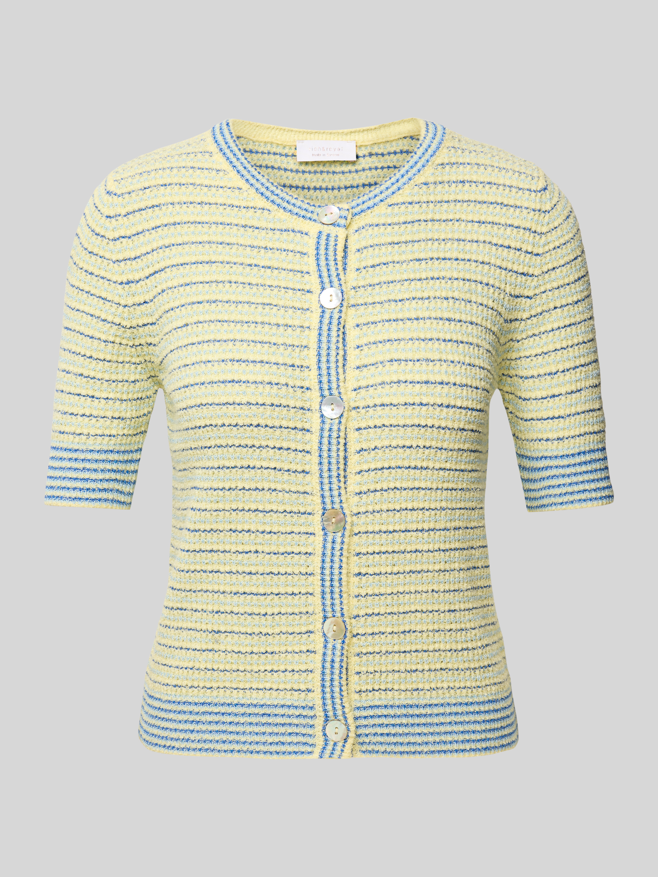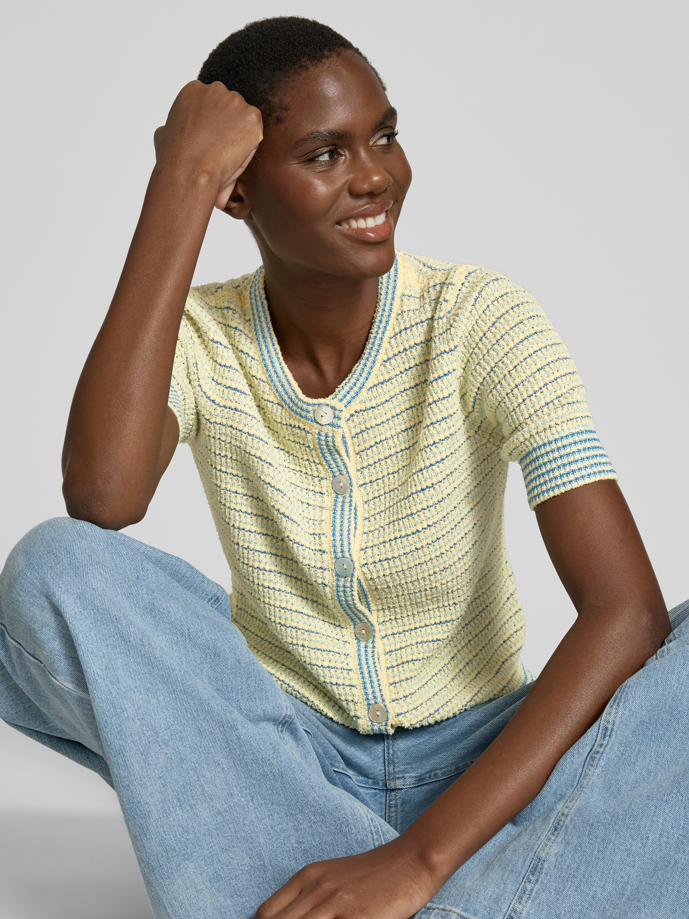 Kurtka z dzianiny z listwą guzikową - jasnożółty