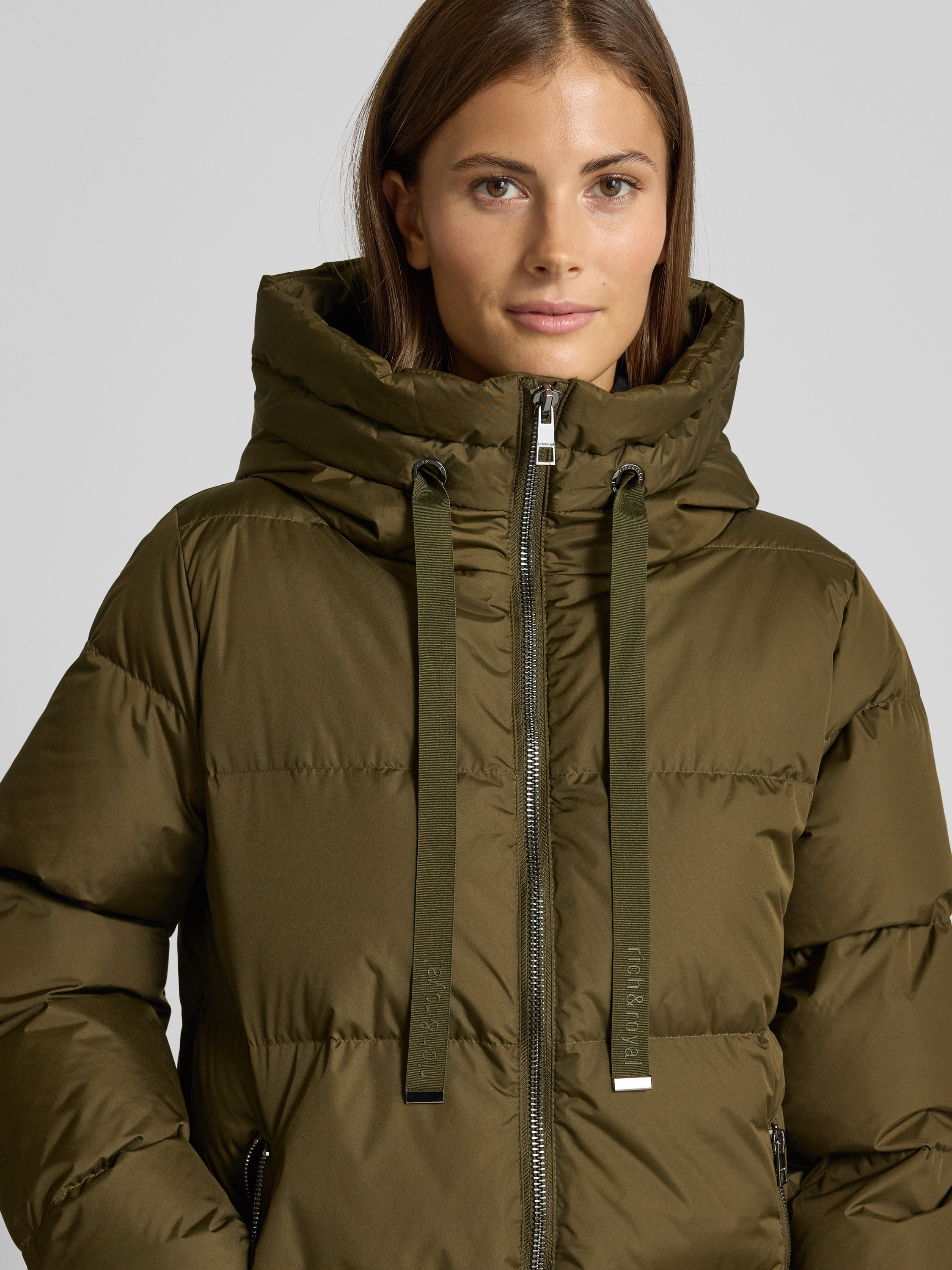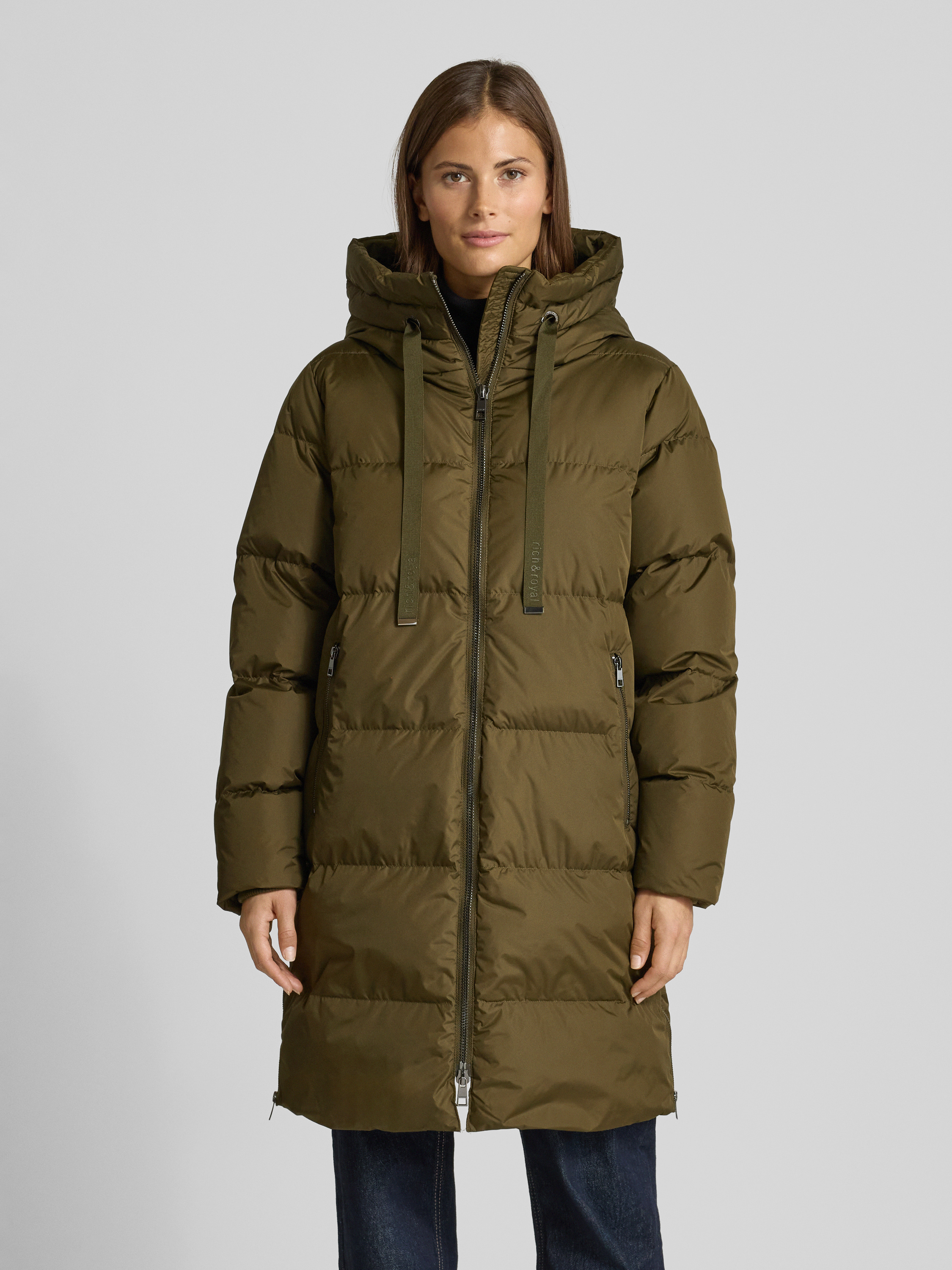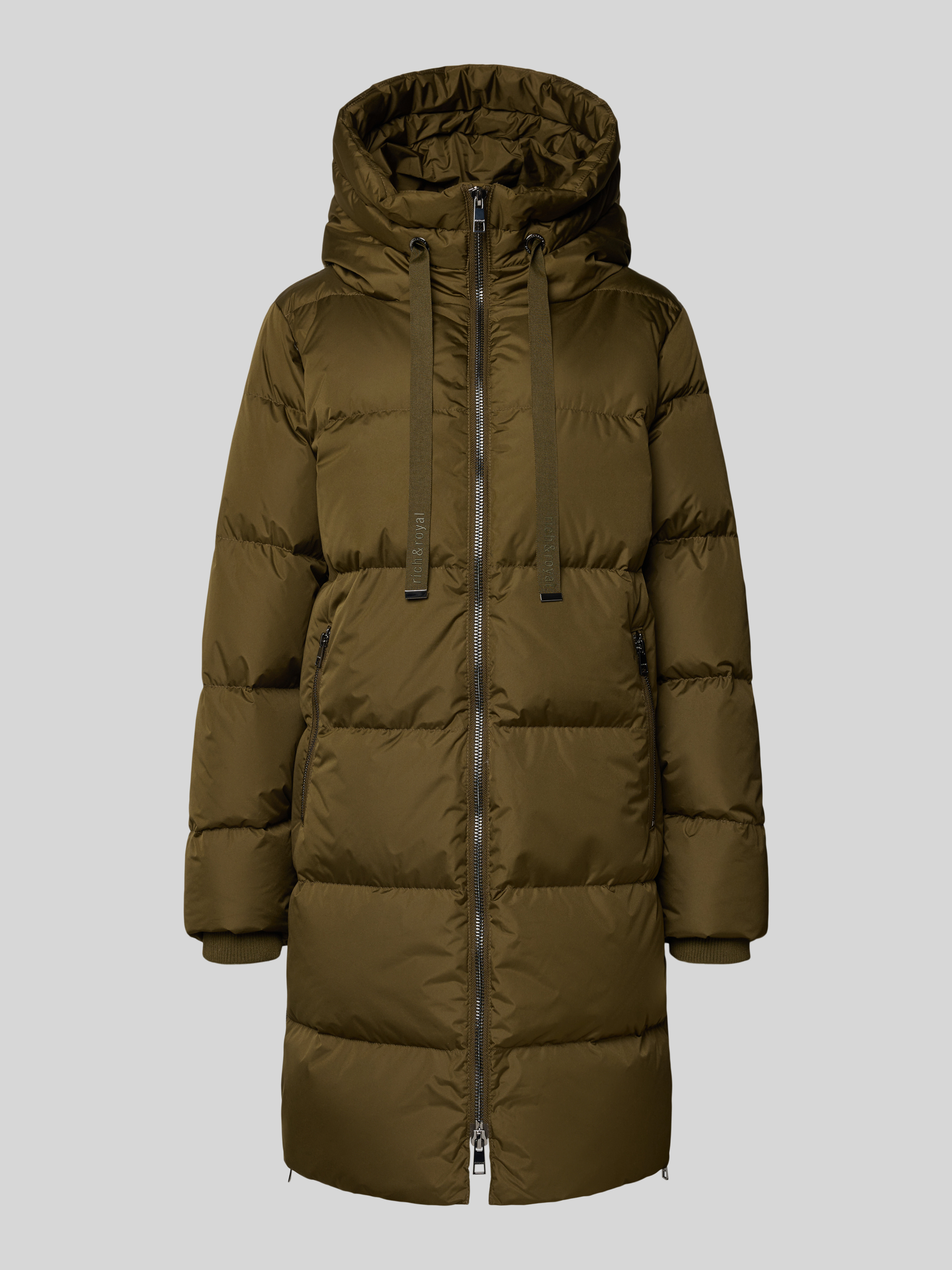Płaszcz pikowany z wypełnieniem puchem oraz zamkiem błyskawicznym dwustronnym - oliwkowy