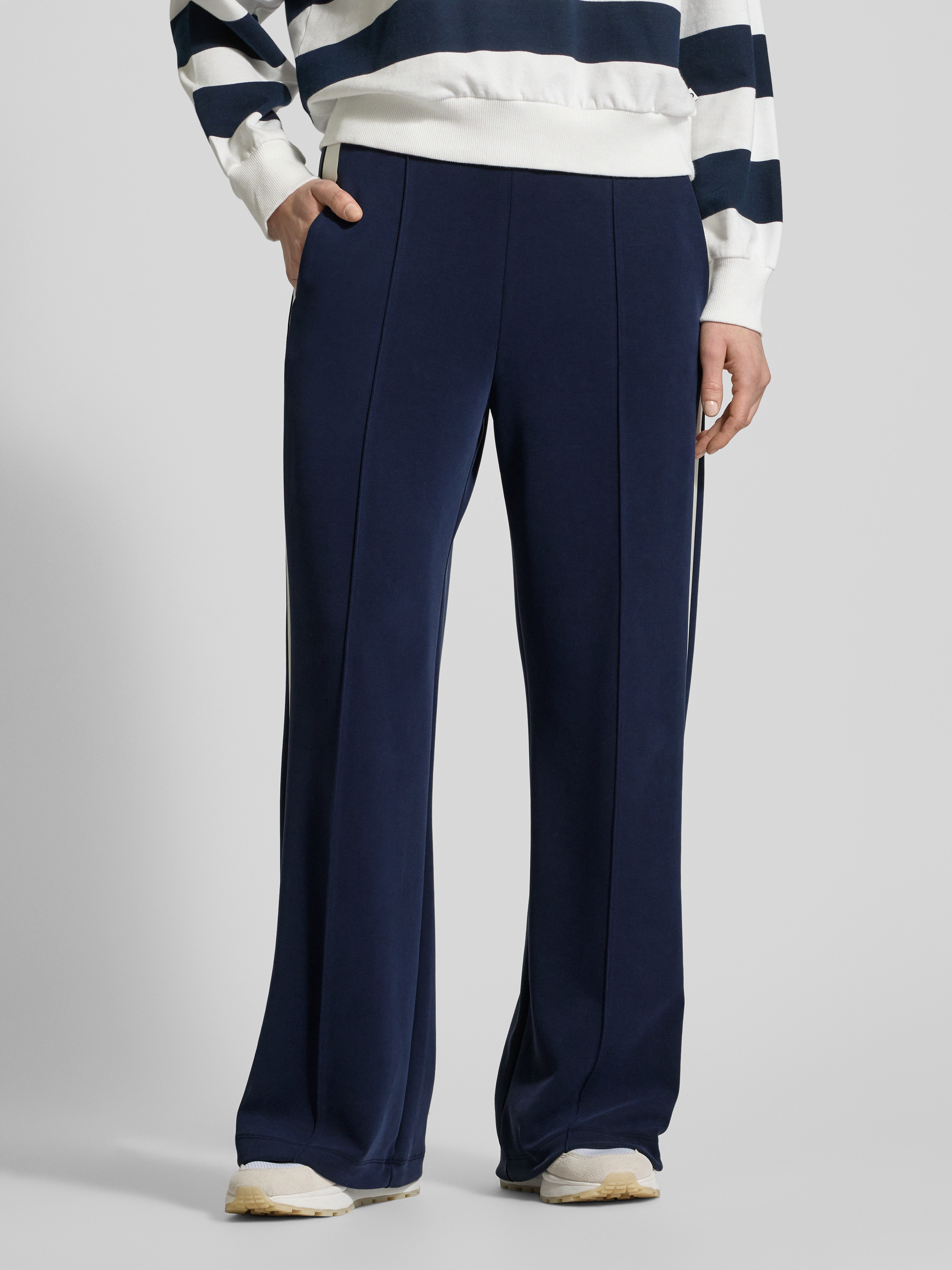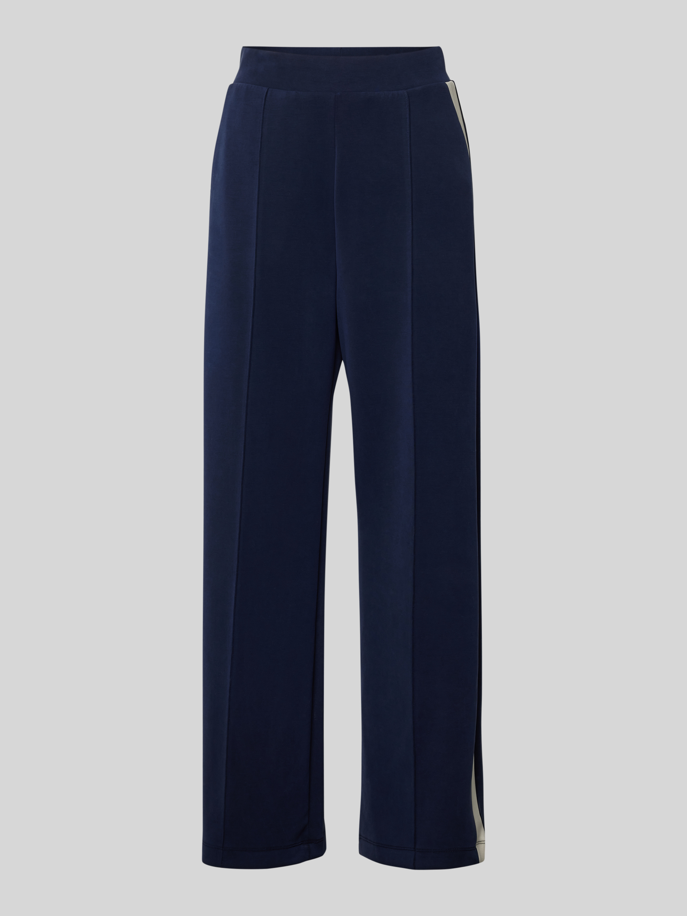 Spodnie materiałowe z prostą nogawką i lampasami - granatowy