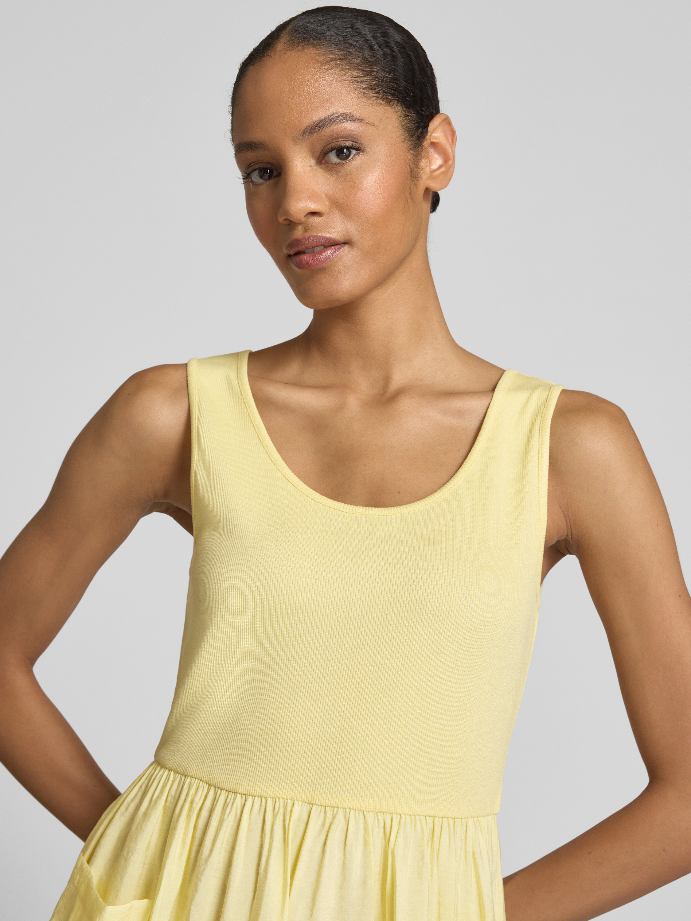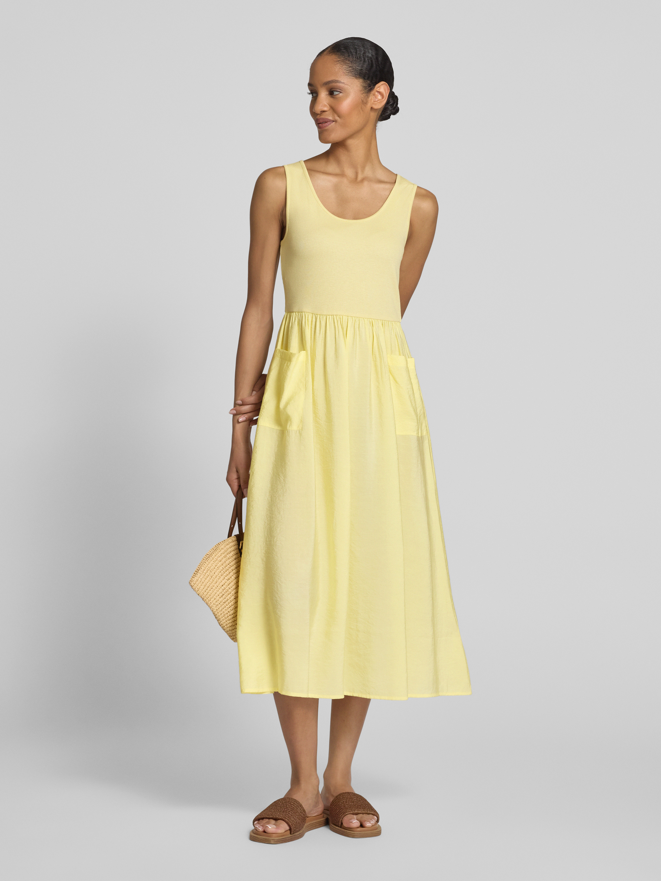 Sukienka midi z nakładanymi kieszeniami - jasnożółty