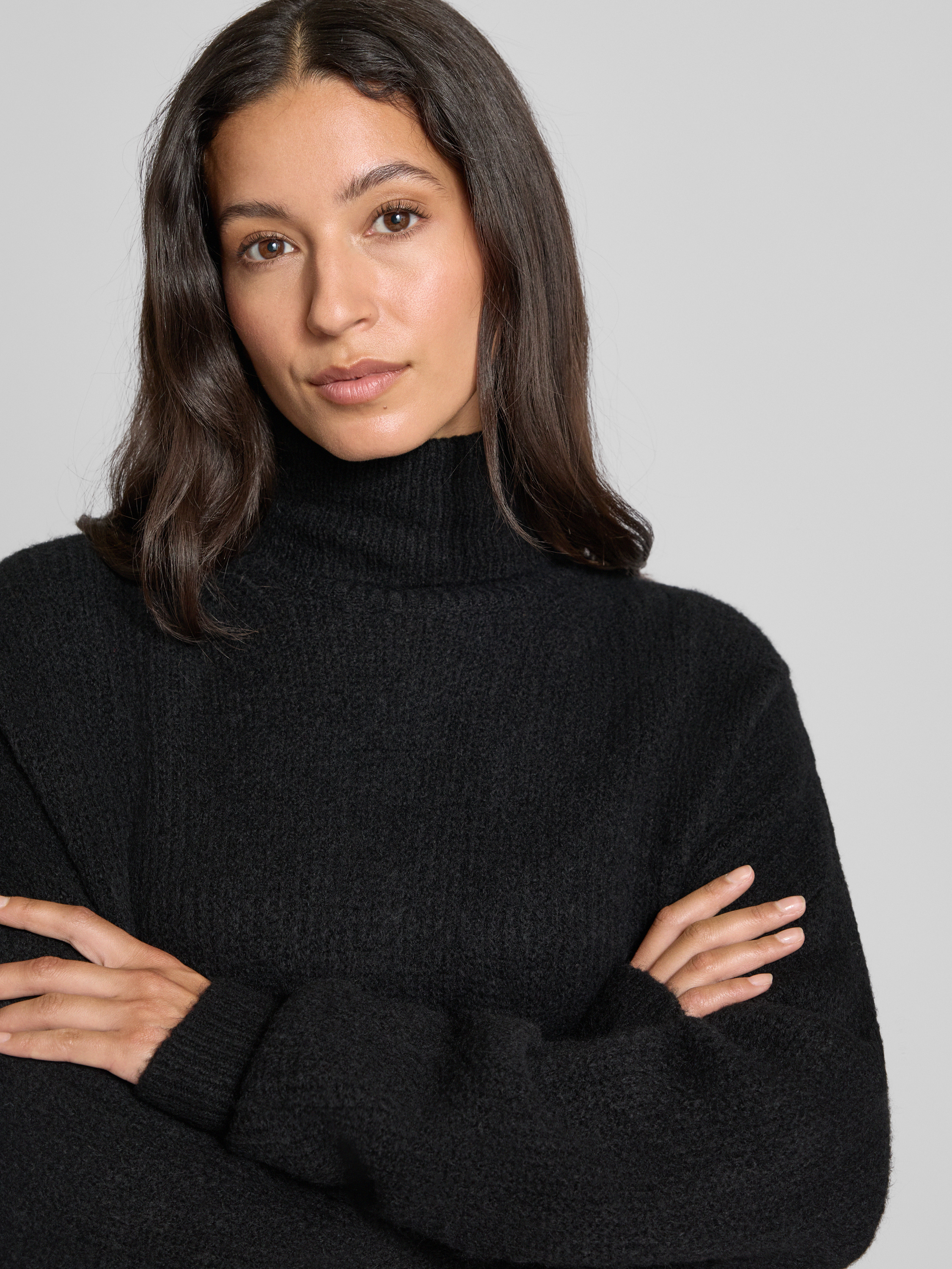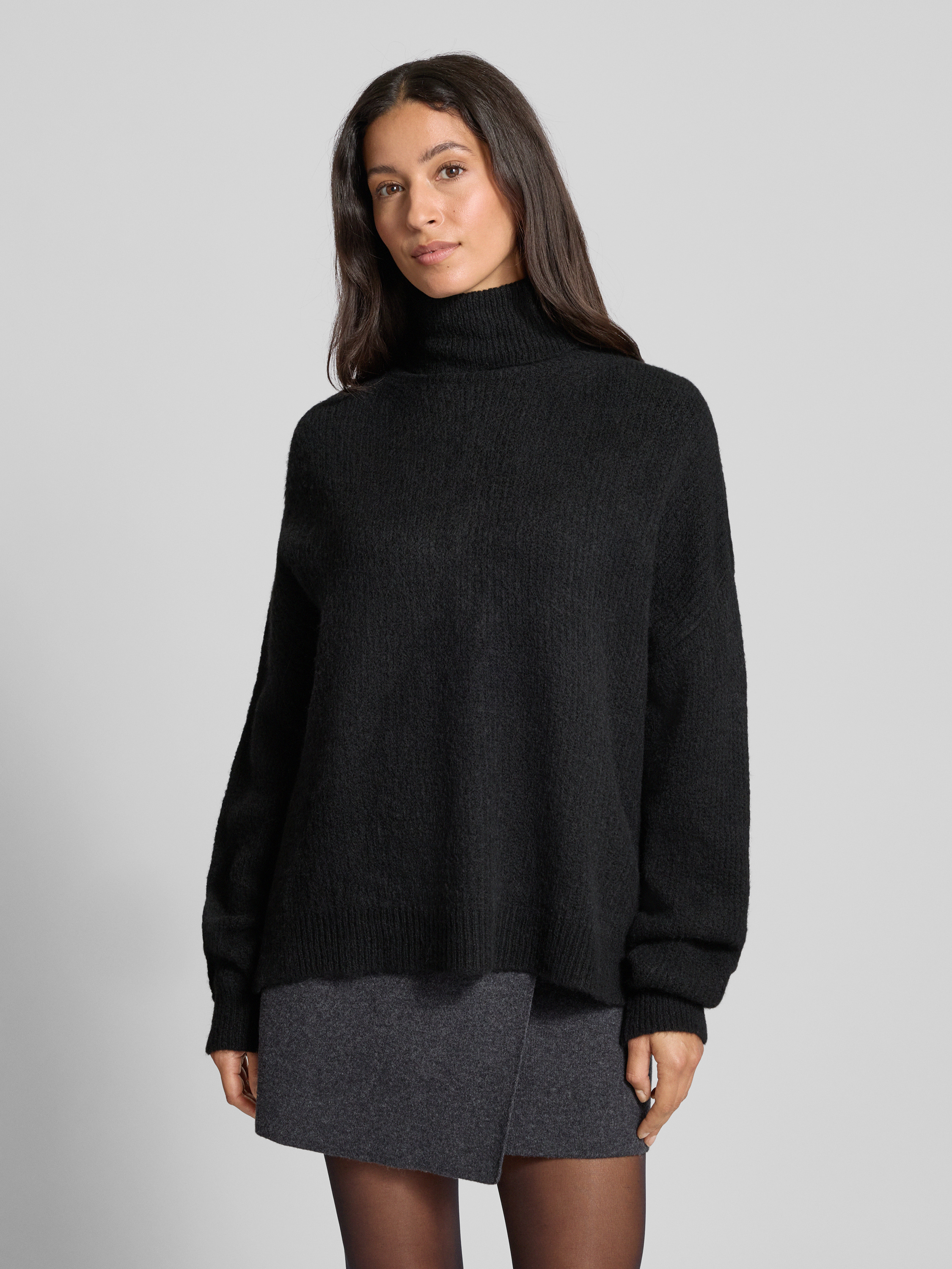 Sweter z wywijanym kołnierzem z efektem melanżu - czarny