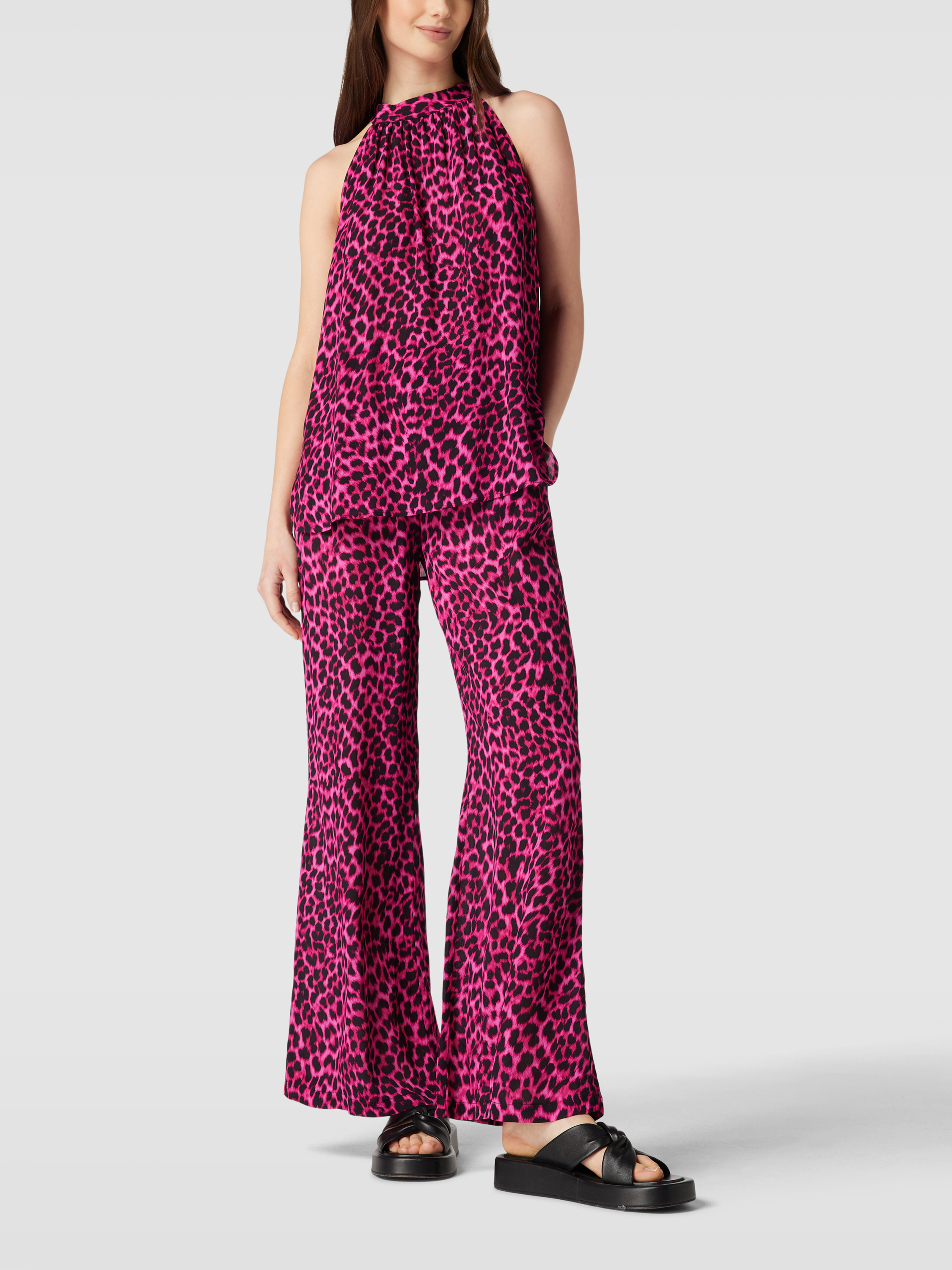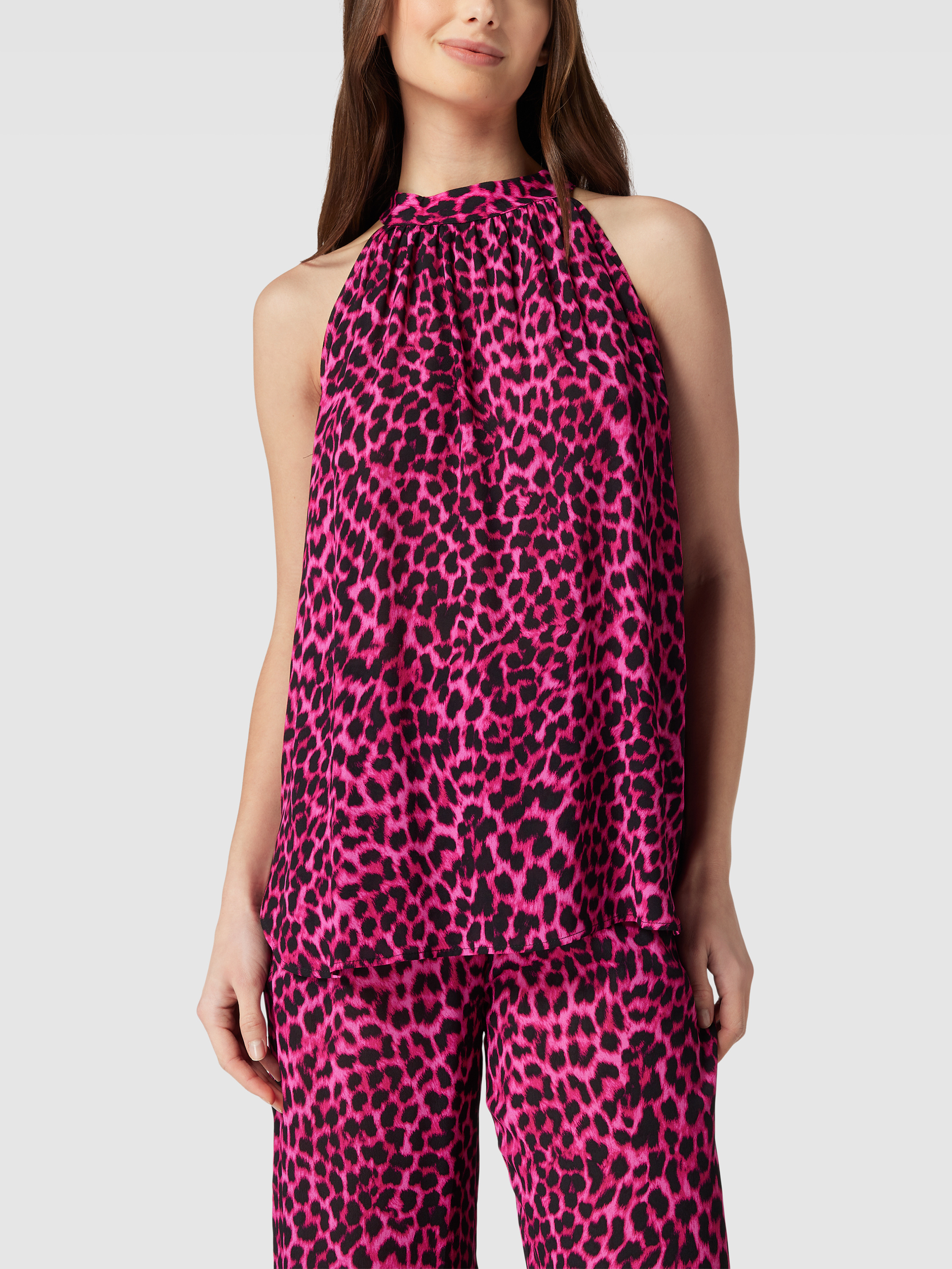 Bluzka koszulowa ze zwierzęcym nadrukiem model ‘Palma’ - mocnoróżowy