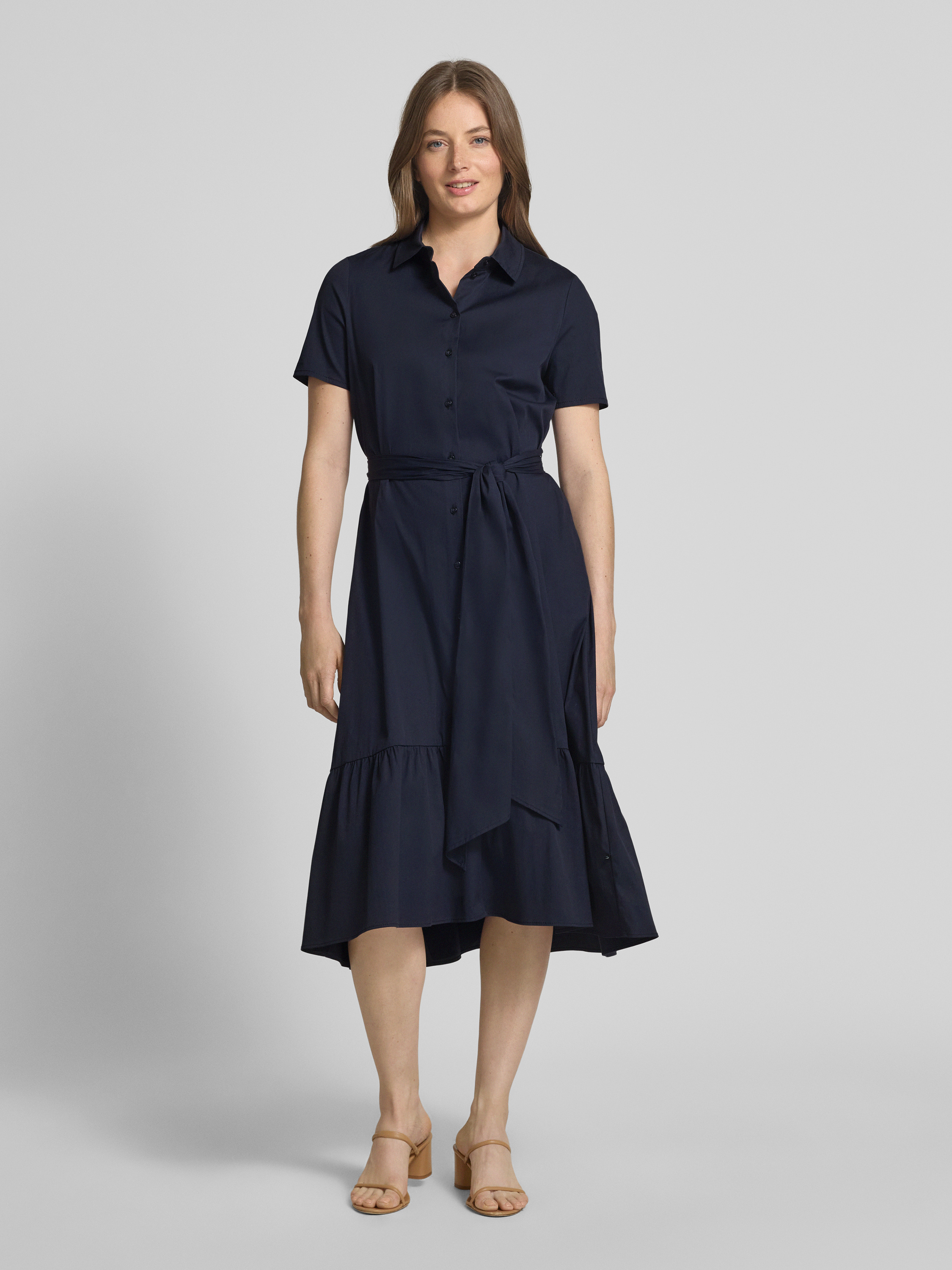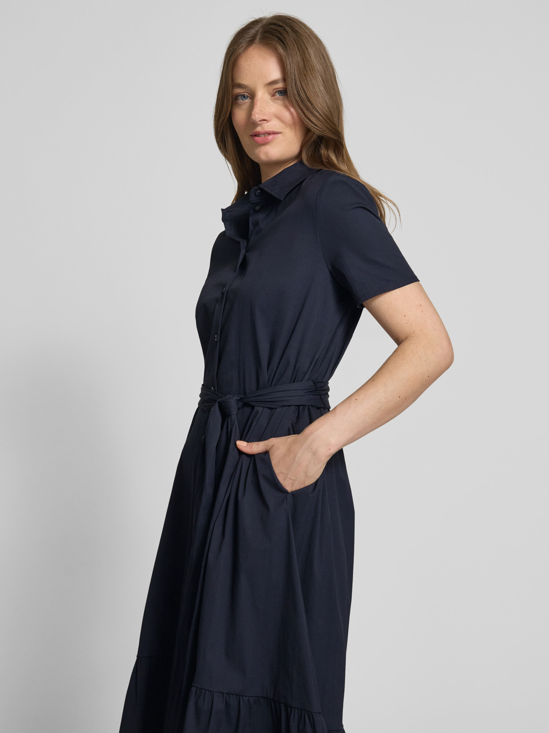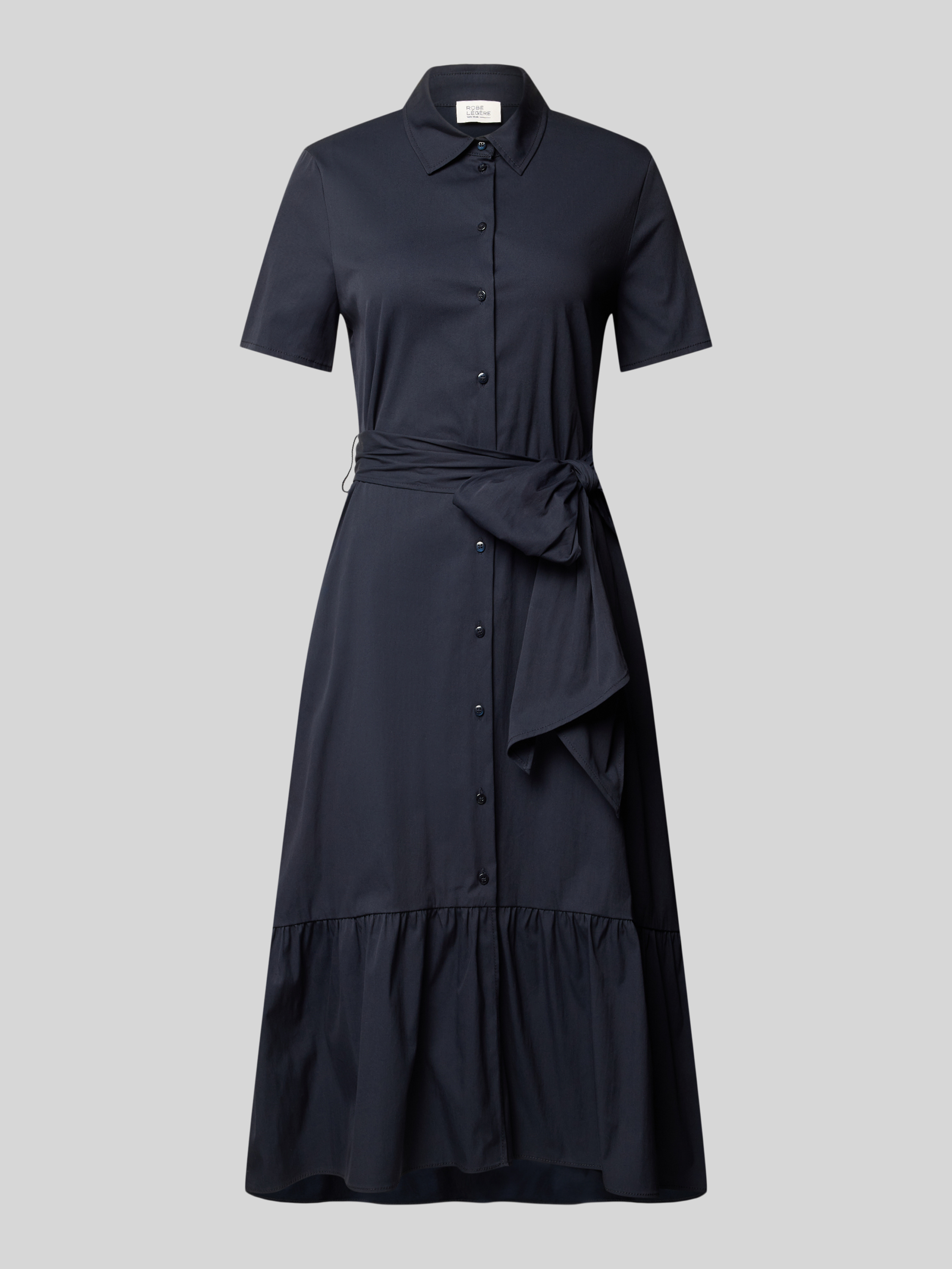 Sukienka koszulowa z wiązanym paskiem - granatowy