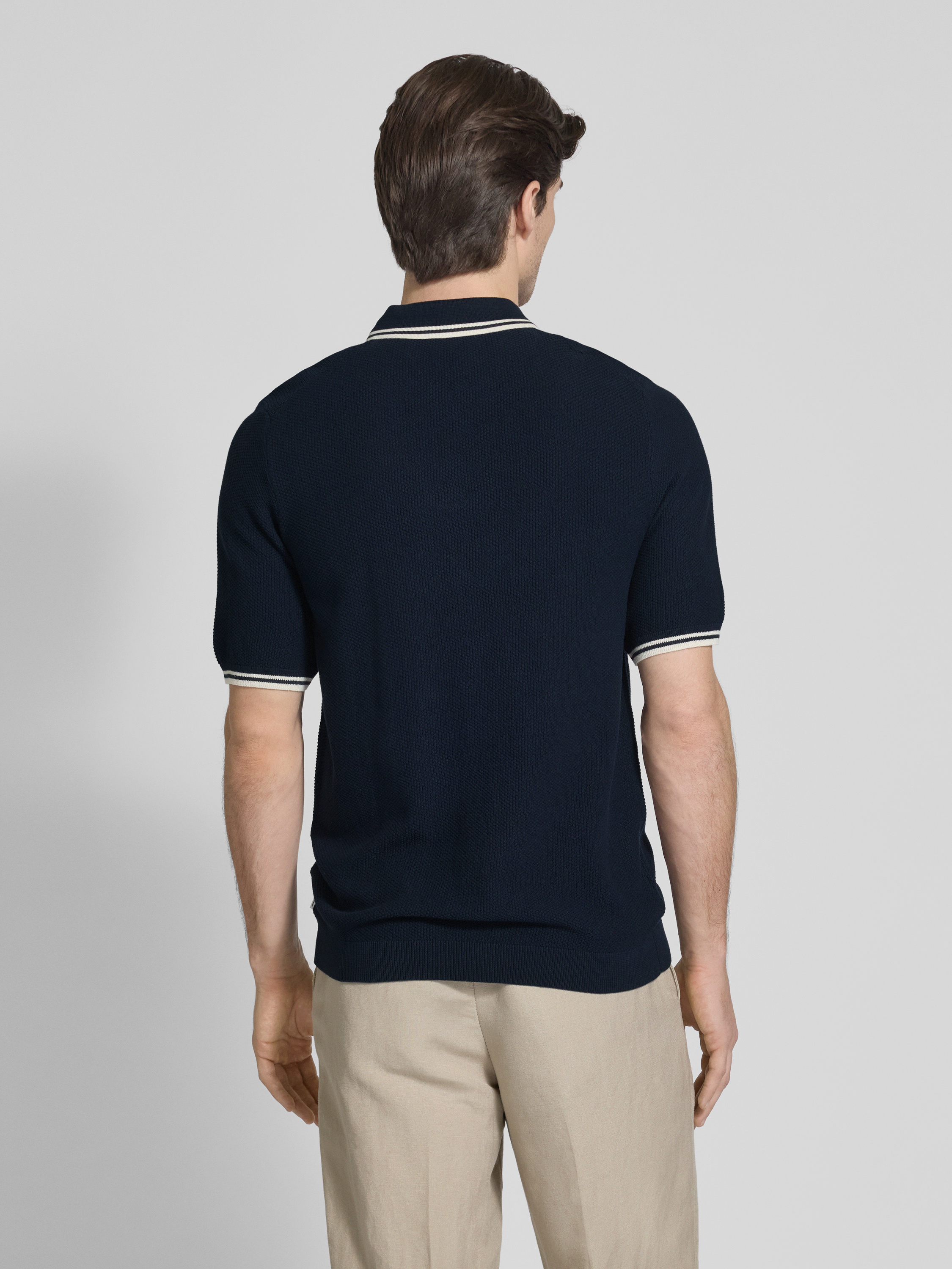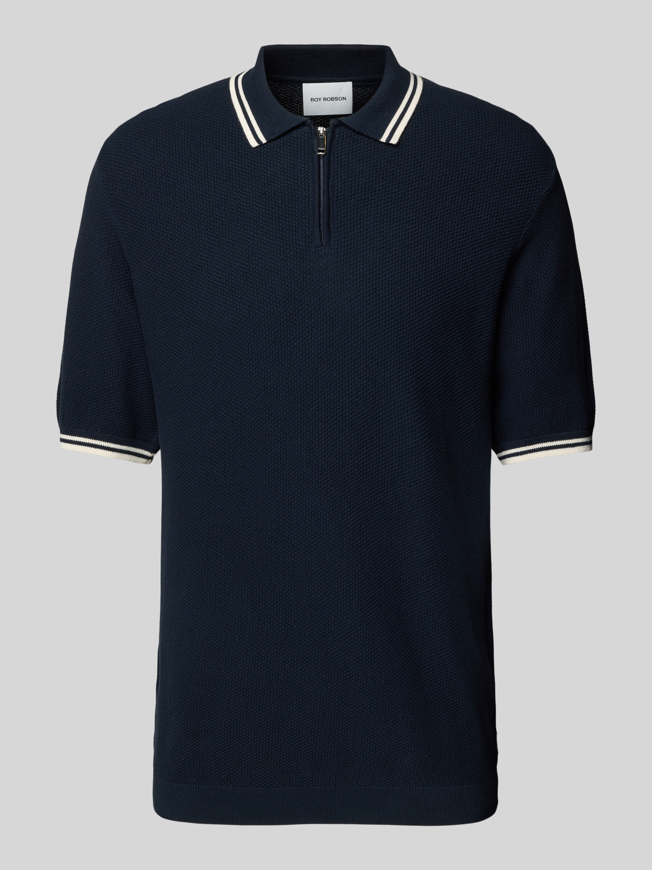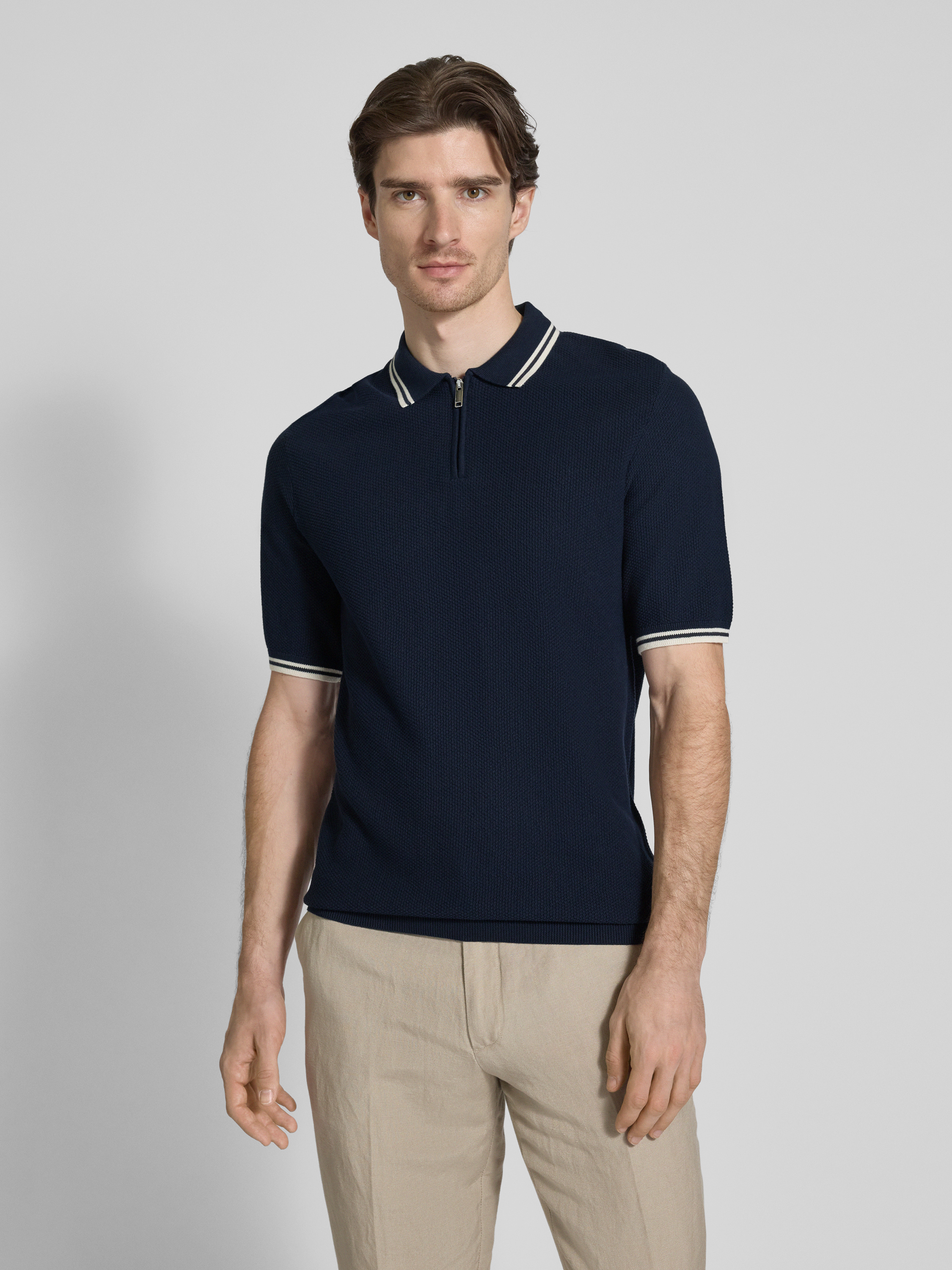 Koszulka polo z krótkim zamkiem błyskawicznym - granatowy