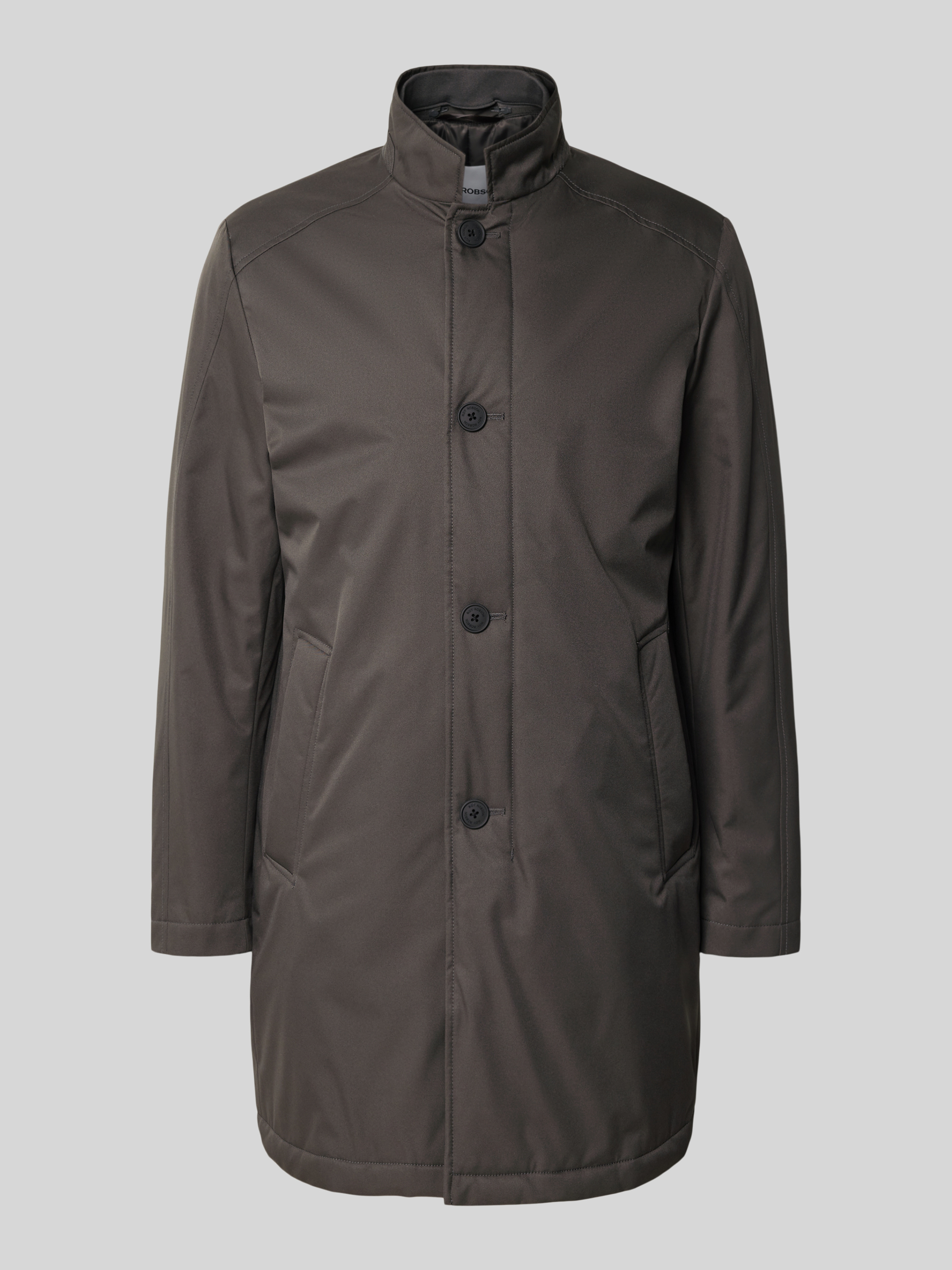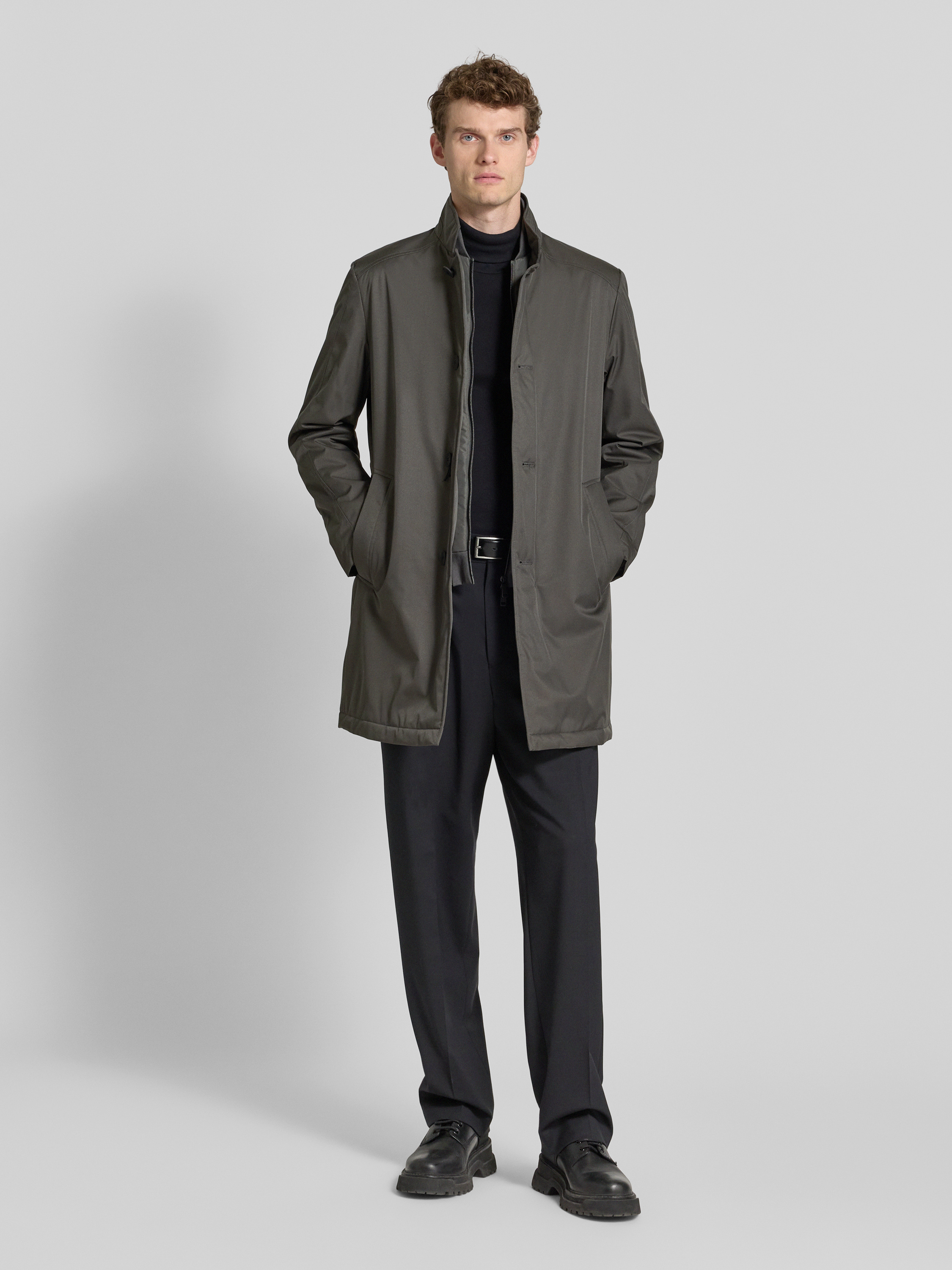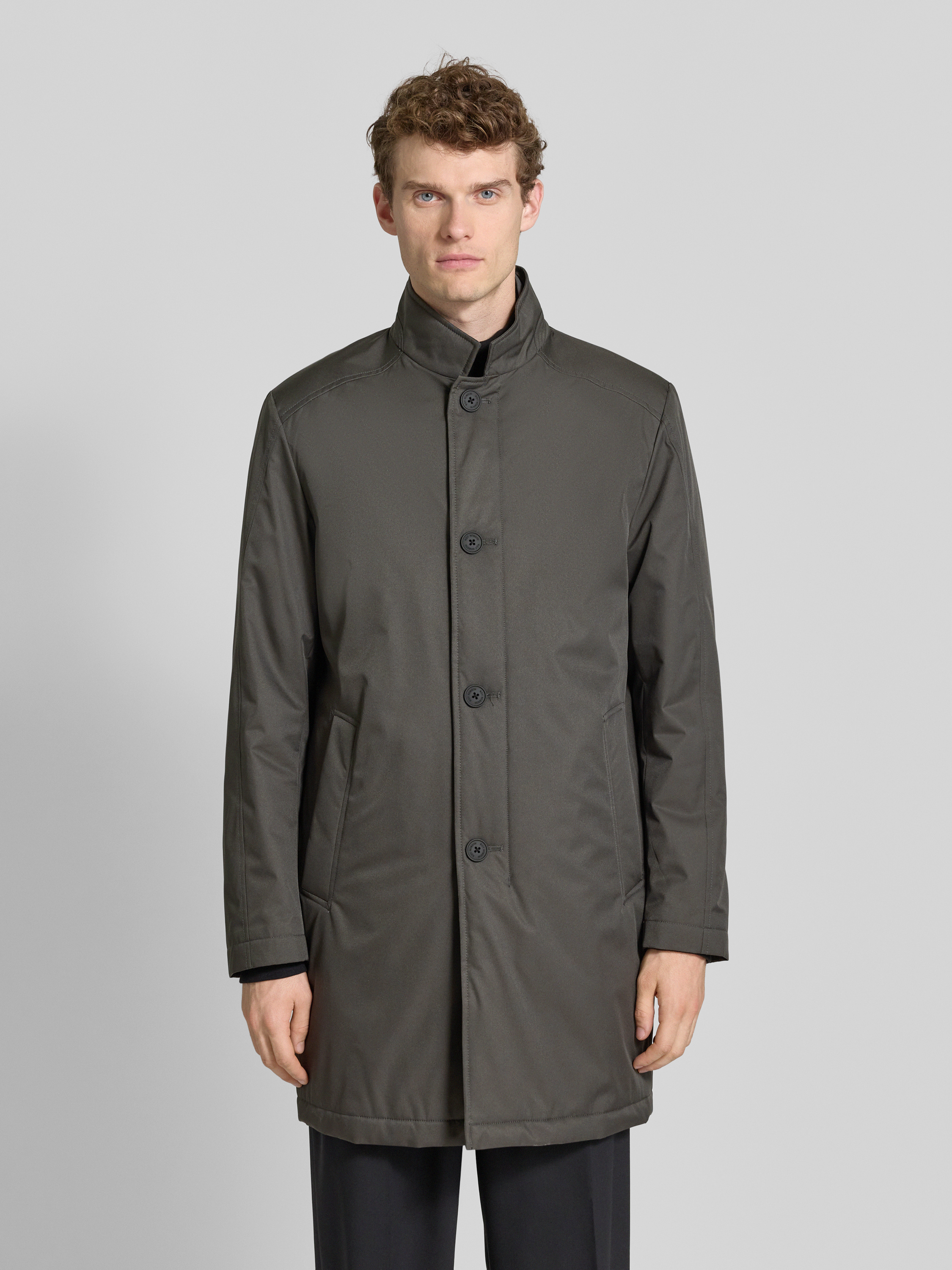 Płaszcz nylonowy ze stójką i wpuszczanymi kieszeniami - oliwkowy
