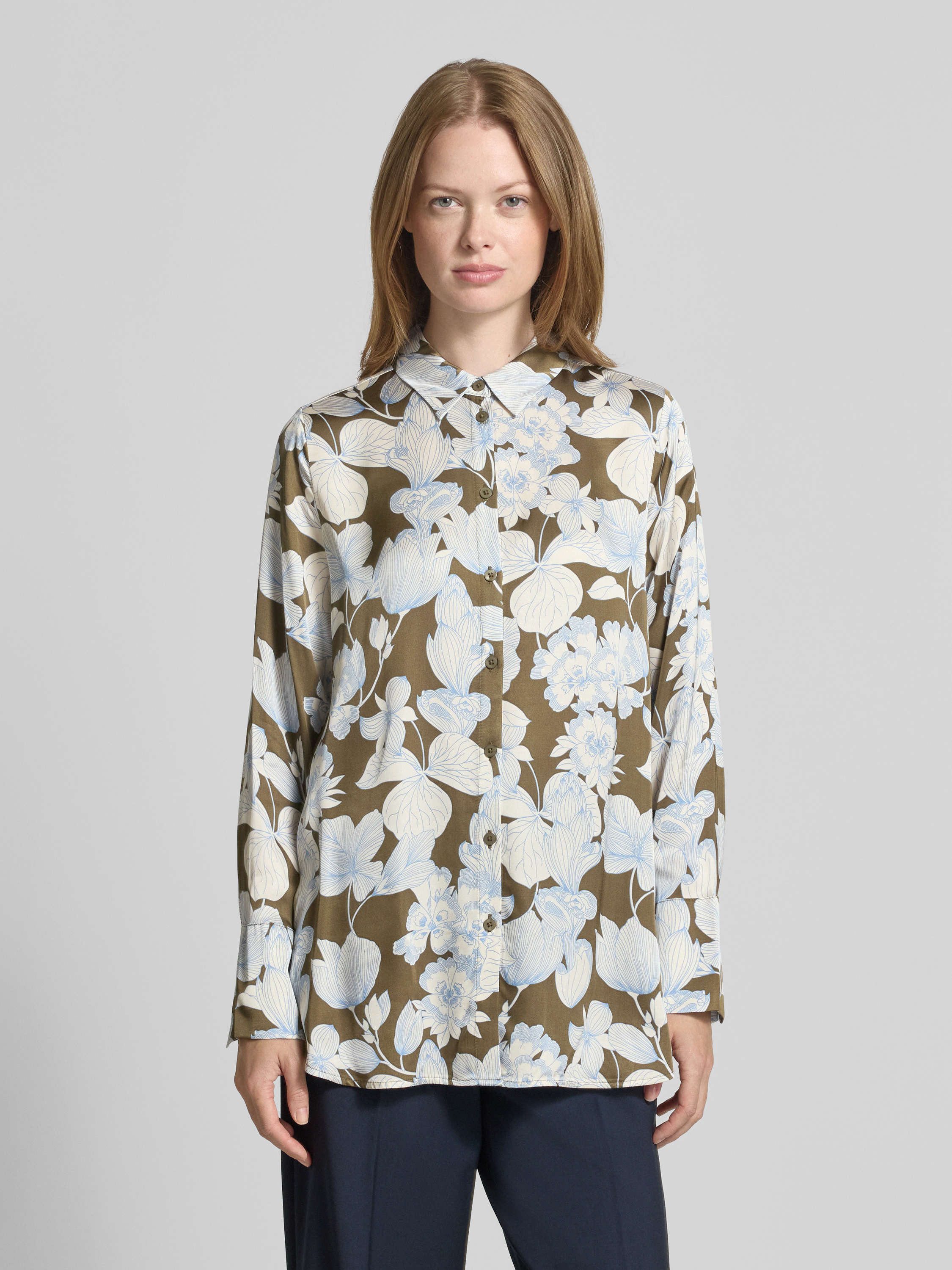 Bluzka koszulowa o kroju regular fit z czystej wiskozy - oliwkowy