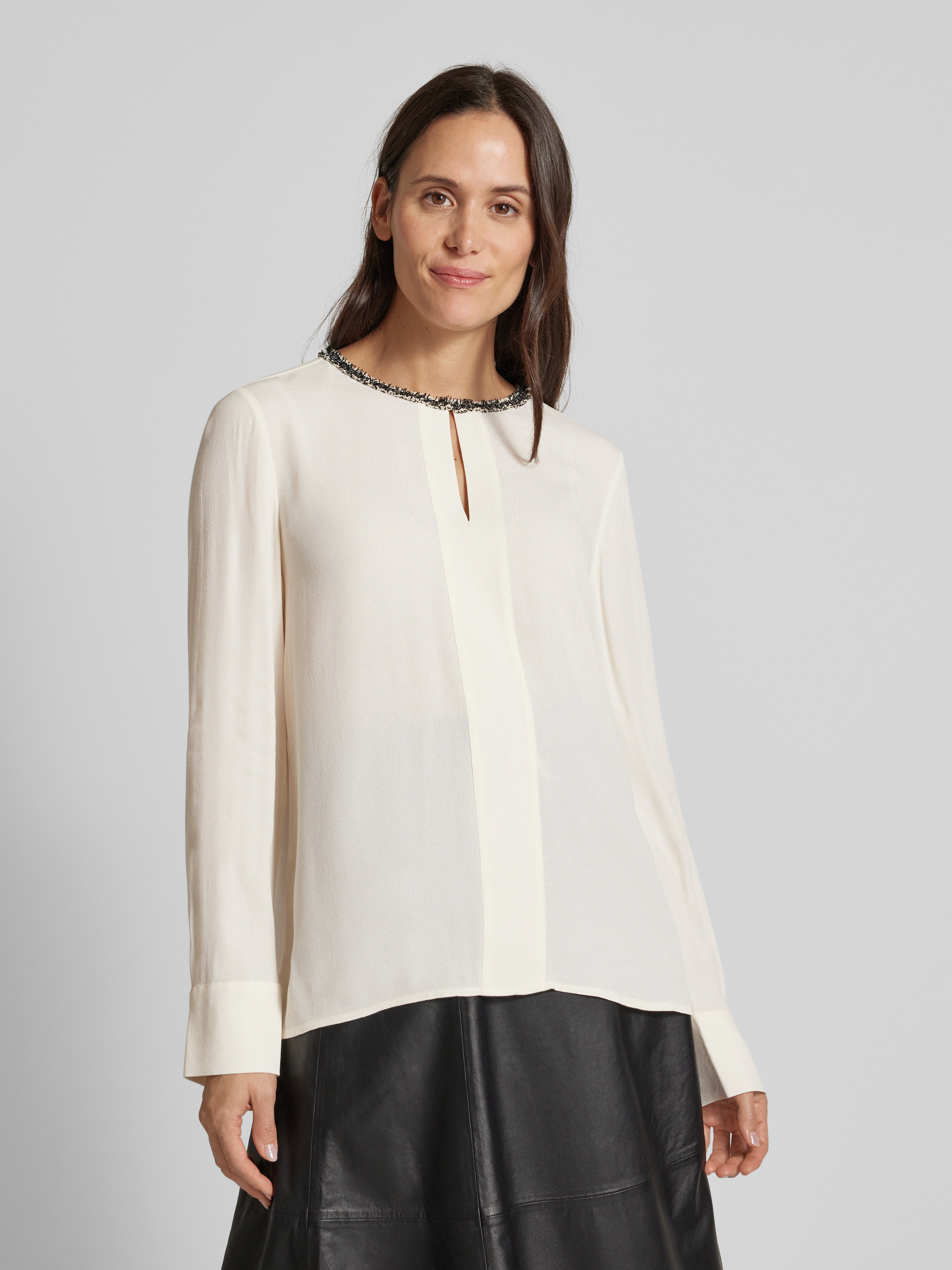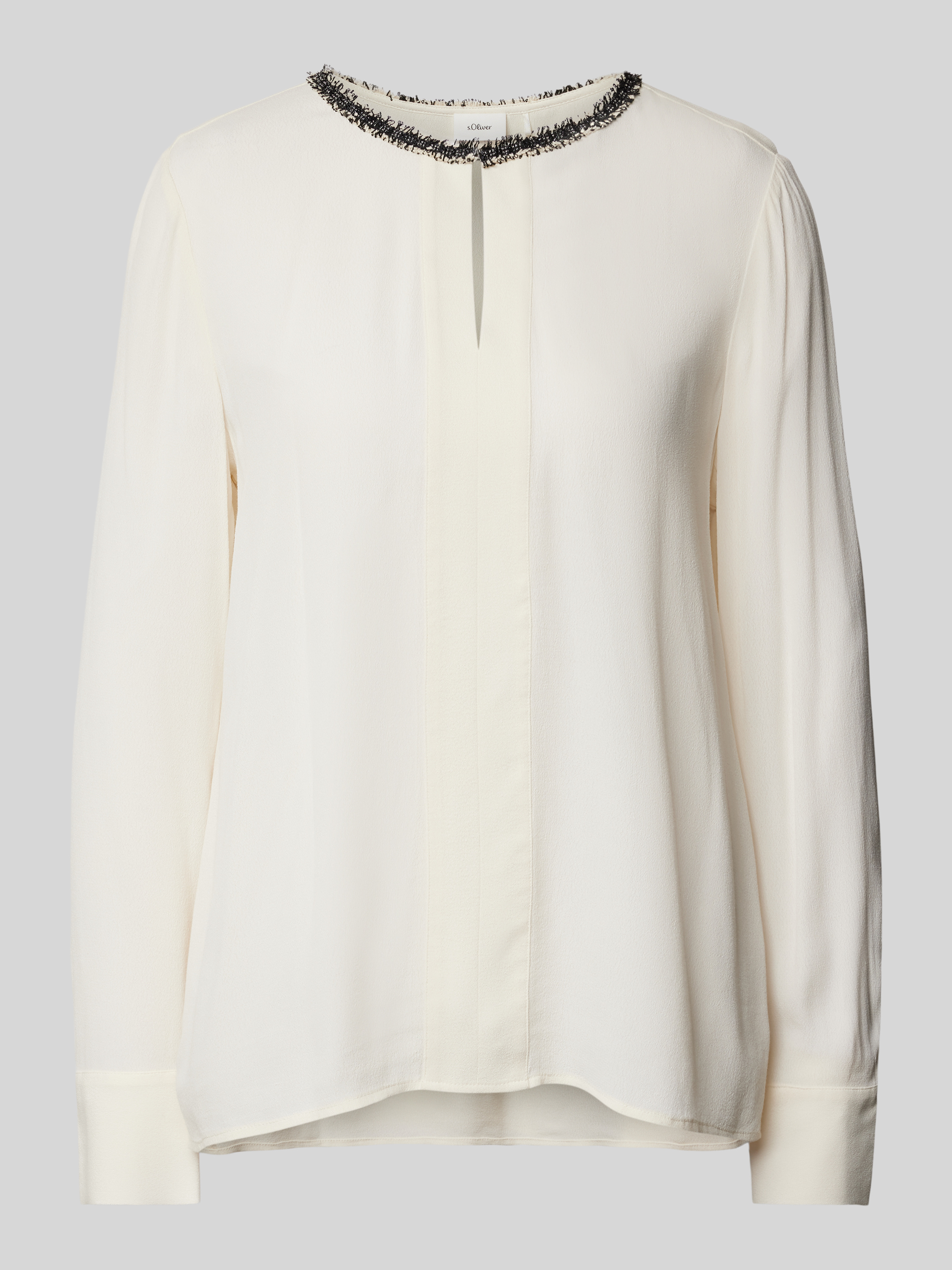 s.Oliver BLACK LABELBluzka o kroju regular fit z wiskozy z detalem z bouclé - biały