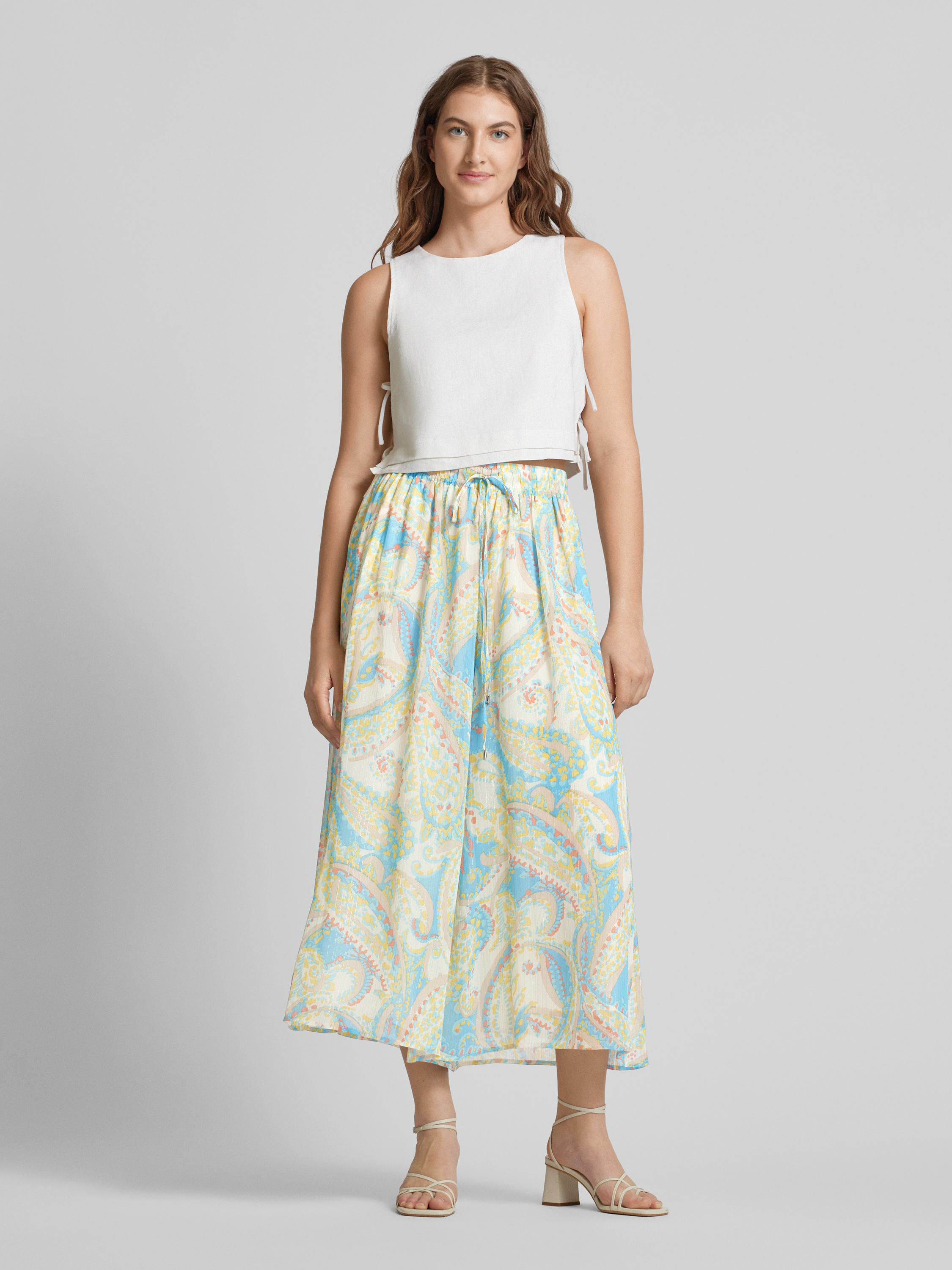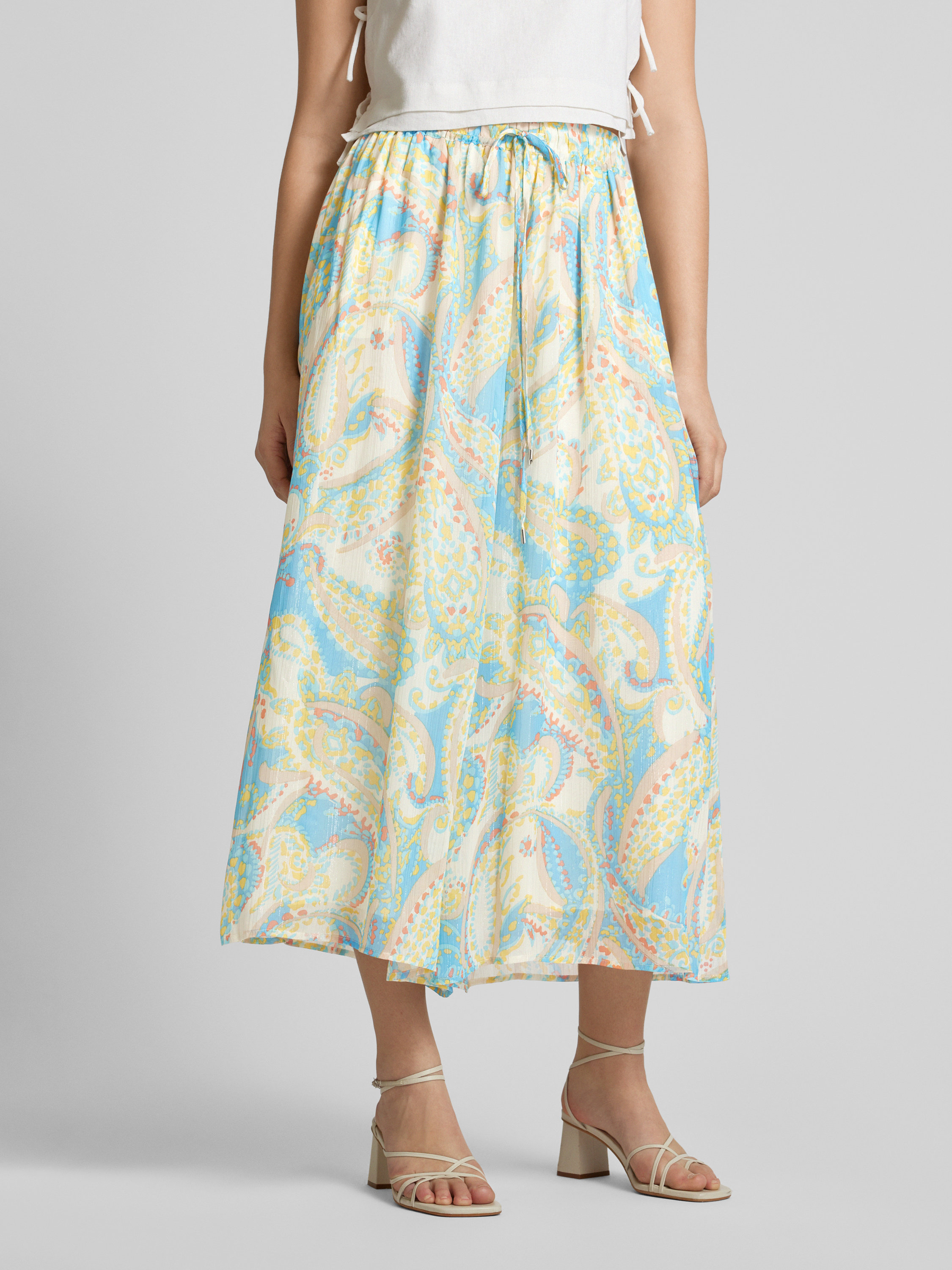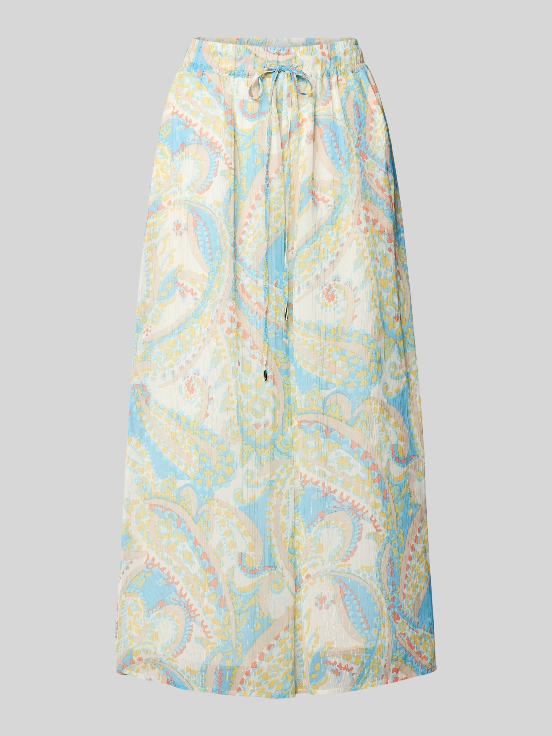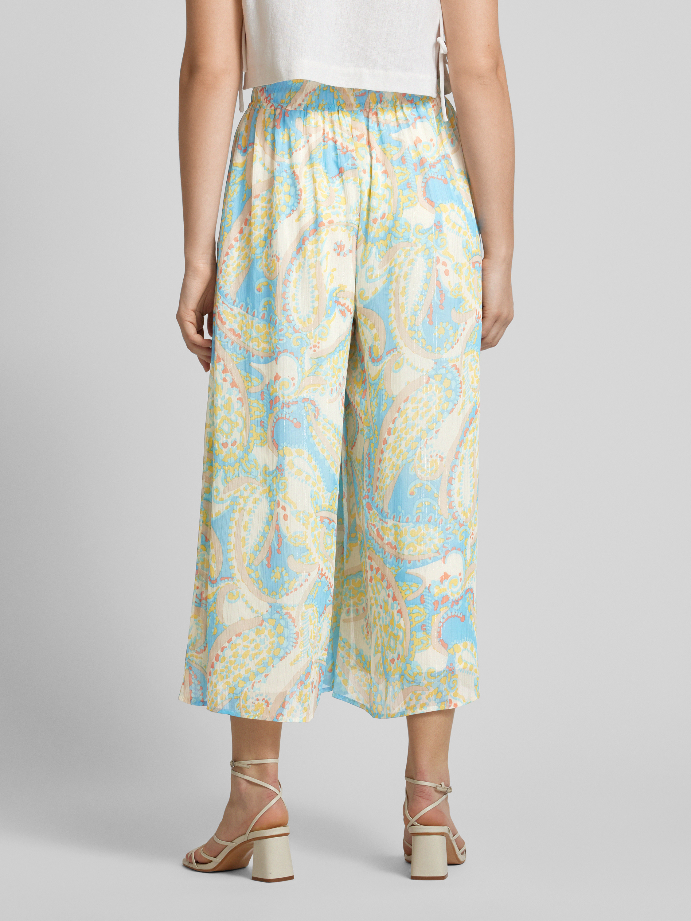 Spodnie materiałowe z szerokimi nogawkami i wzorem paisley - żółty