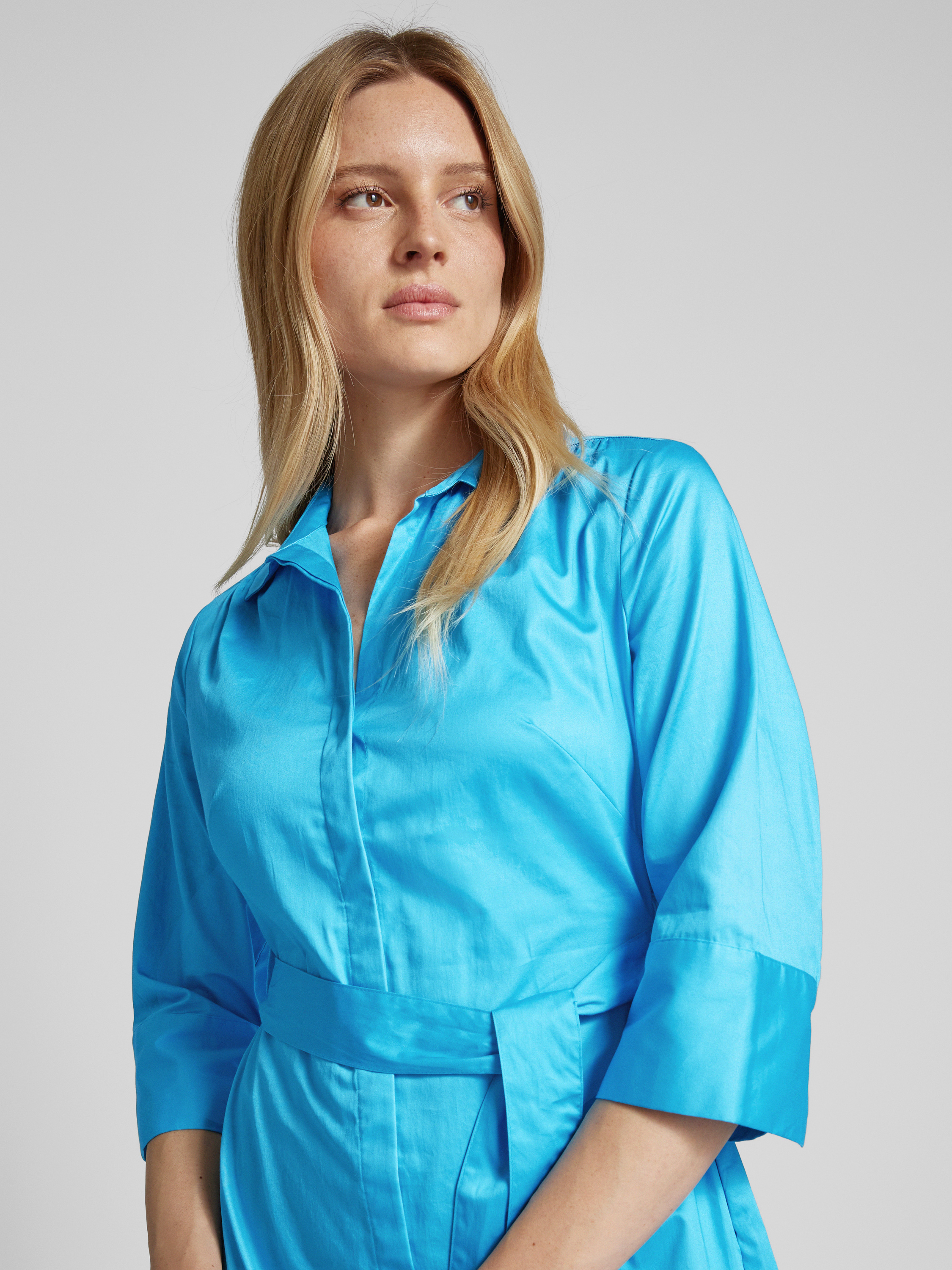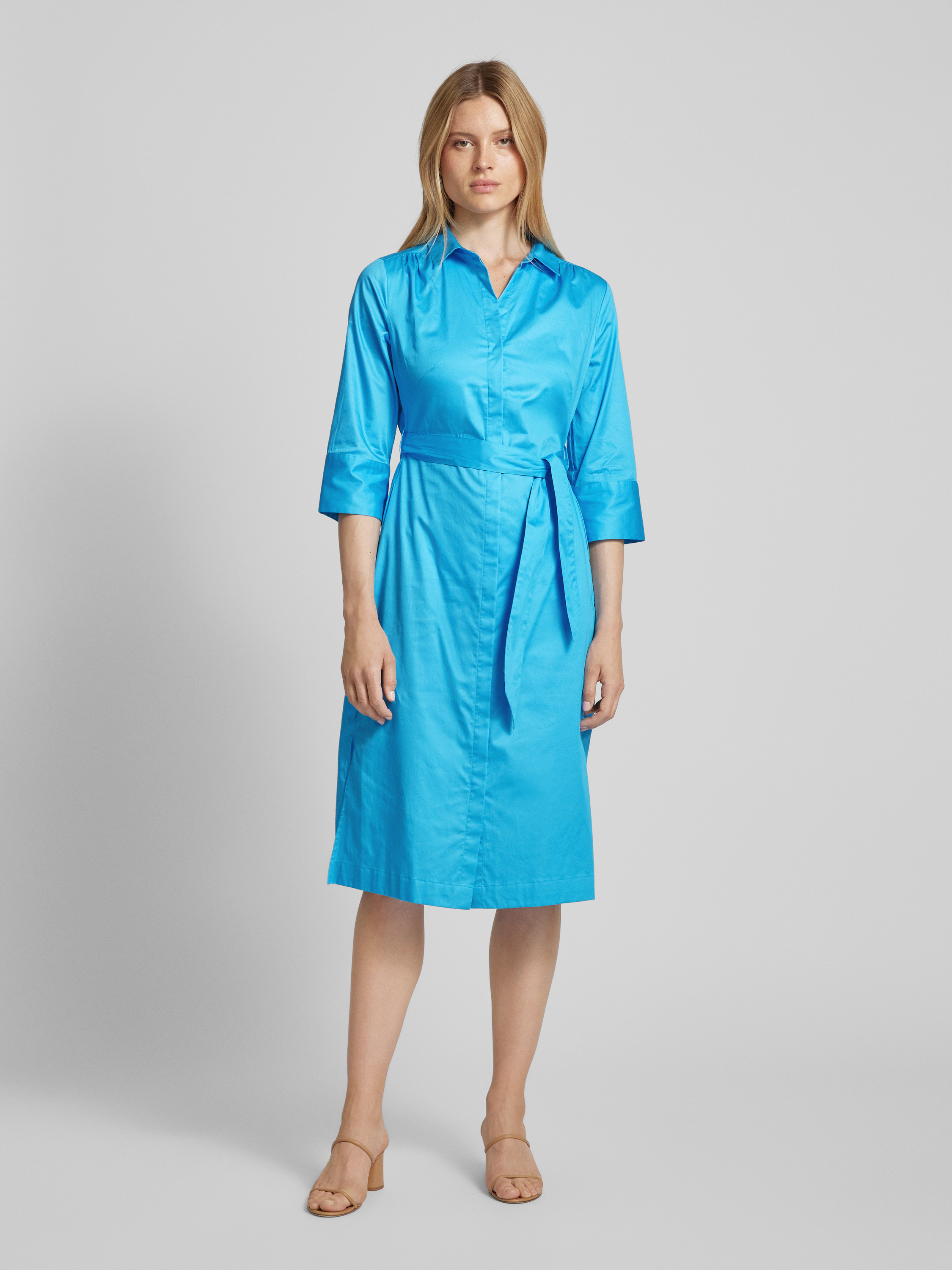 Sukienka midi z wykładanym kołnierzem - jasnoniebieski