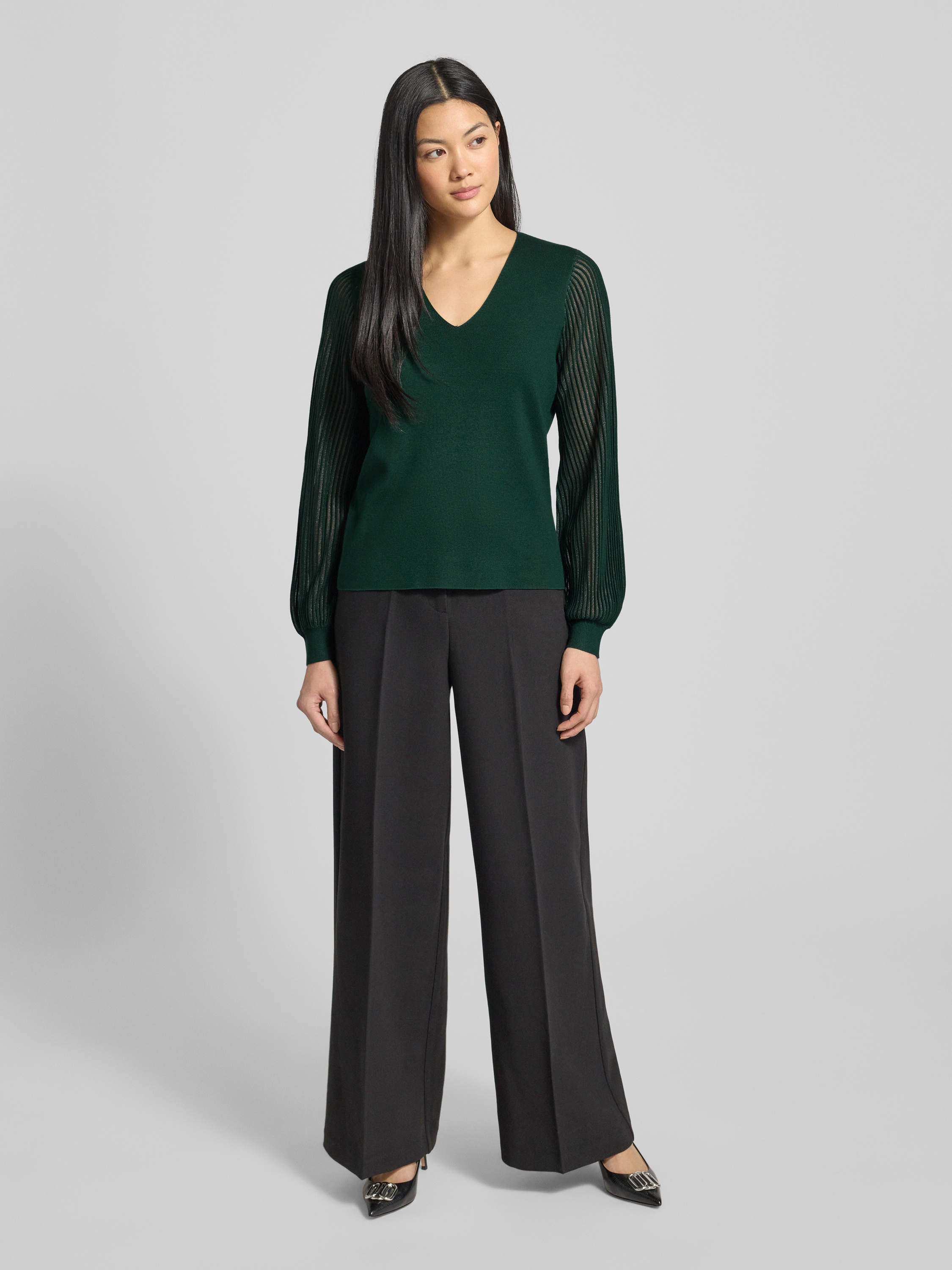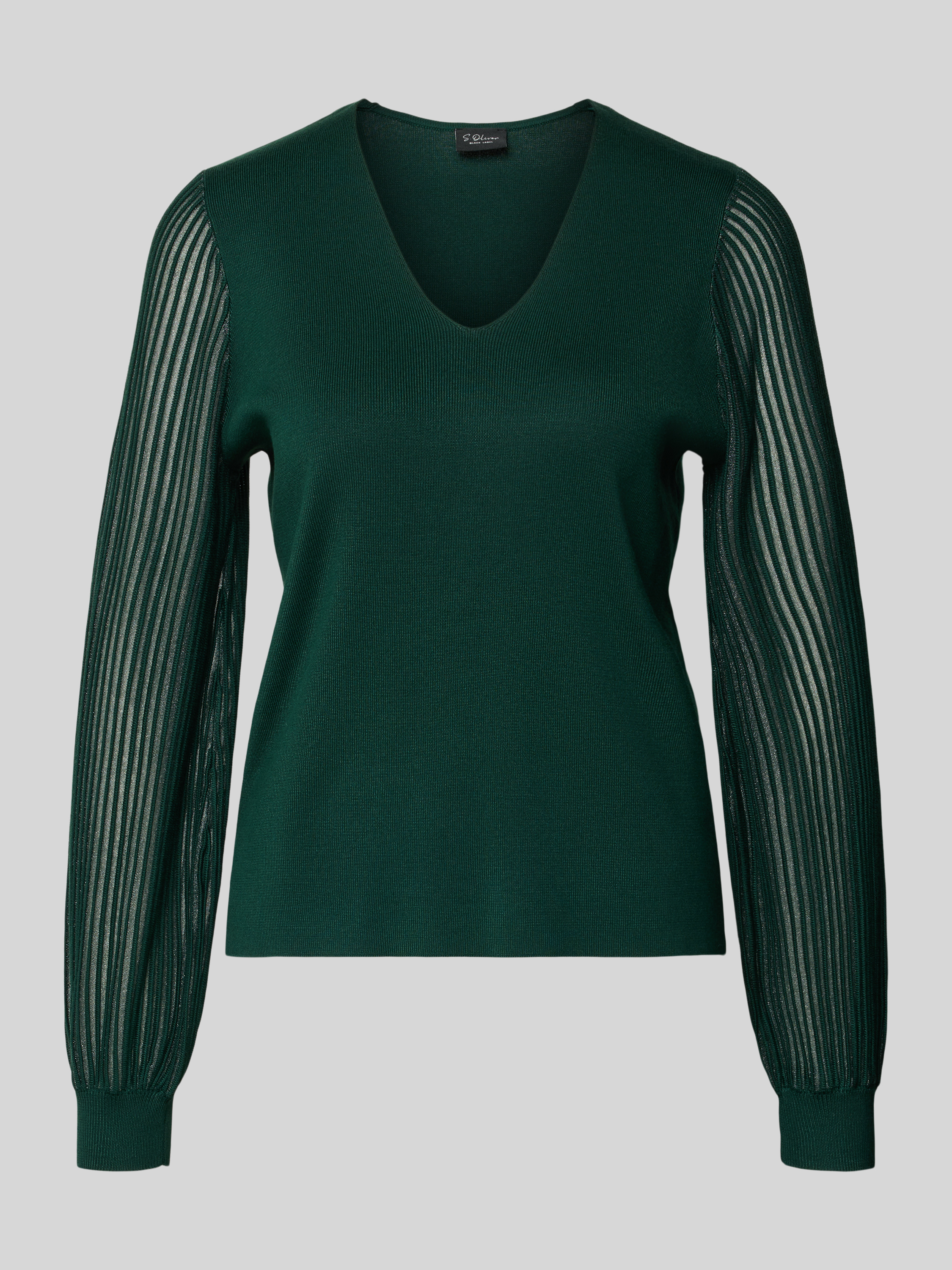 Sweter o kroju regular fit z półprzezroczystymi, bufiastymi rękawami - zielony