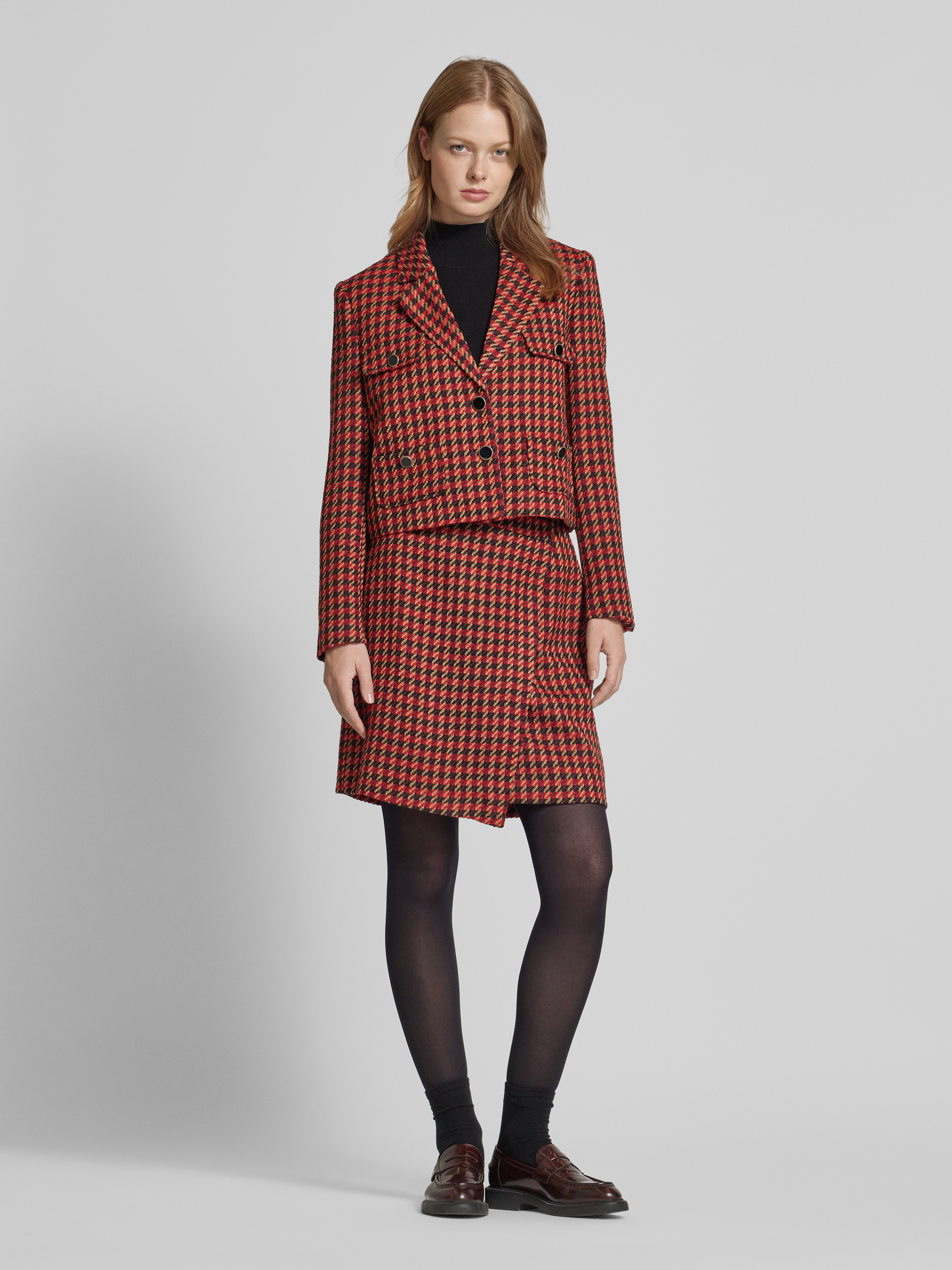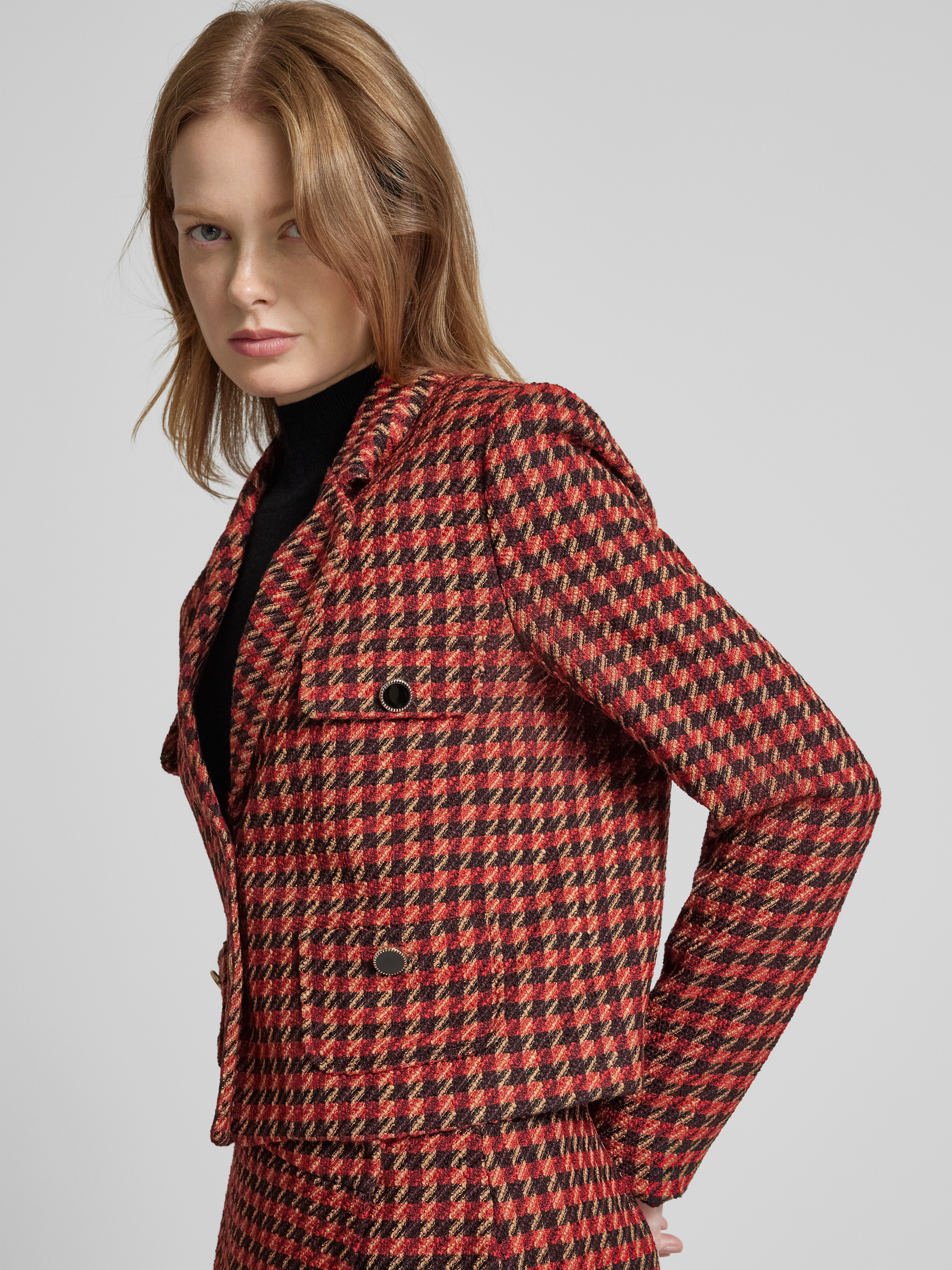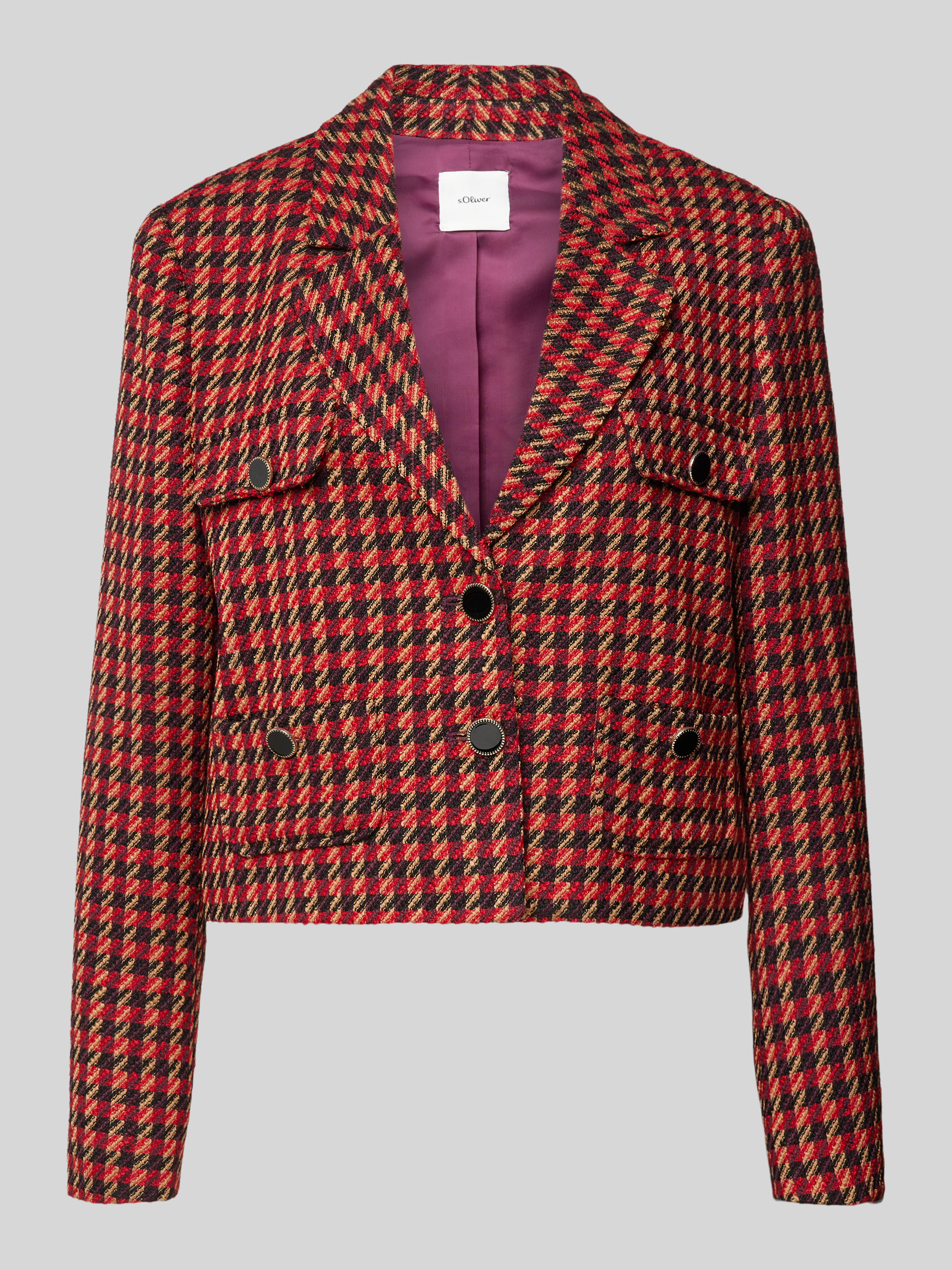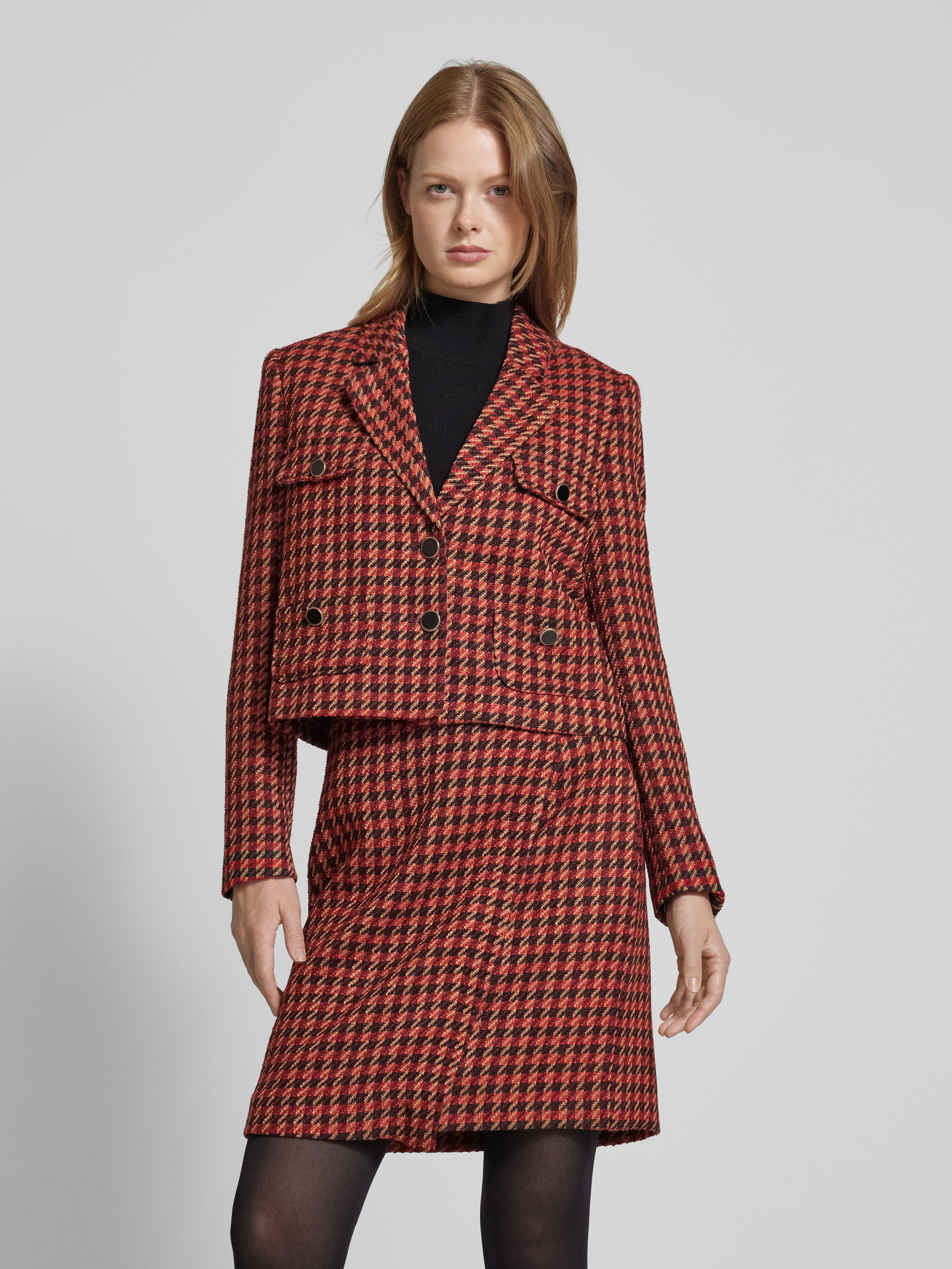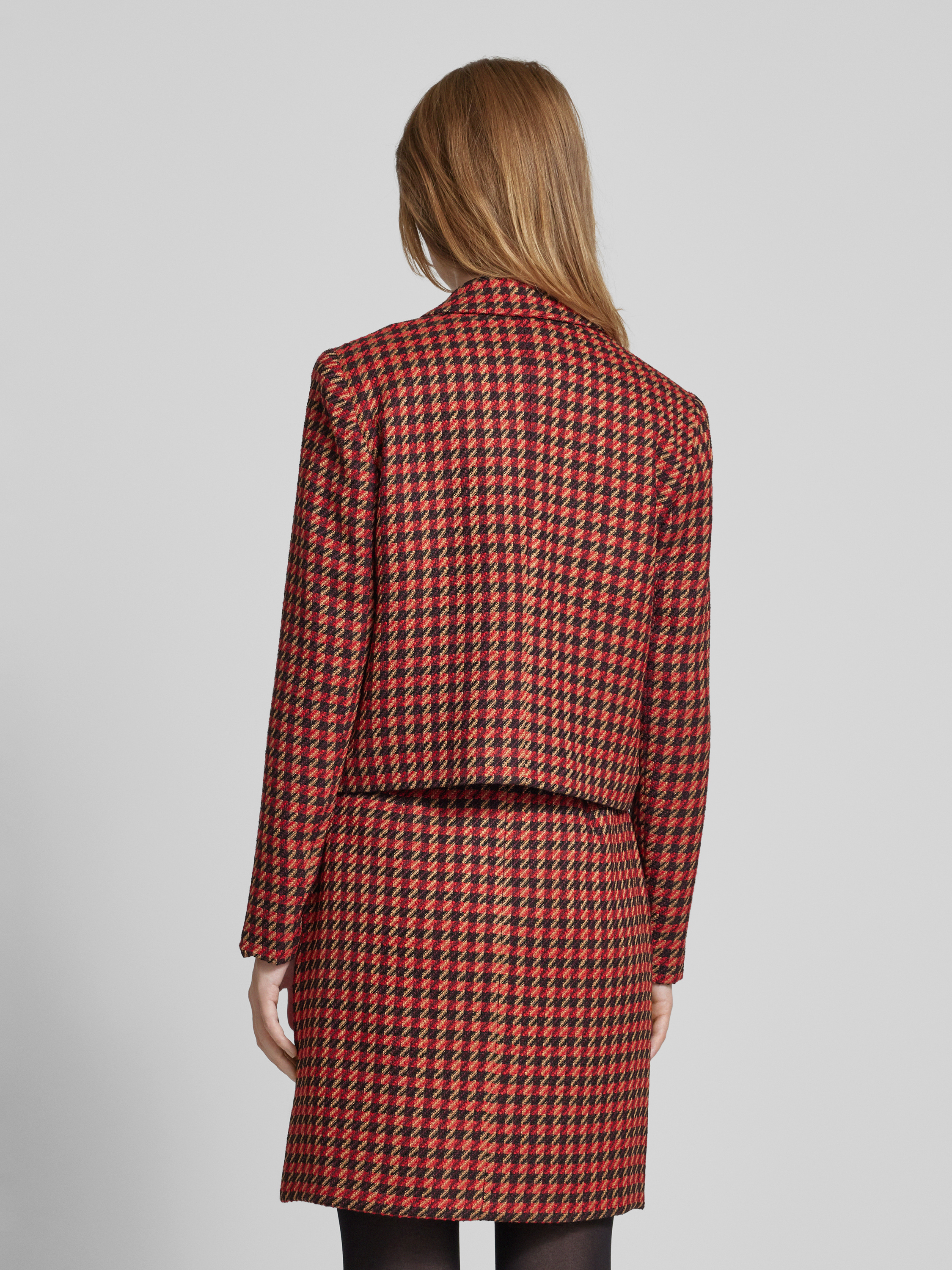 Żakiet krótki o kroju regular fit z efektem bouclé i wzorem w pepitkę - camel