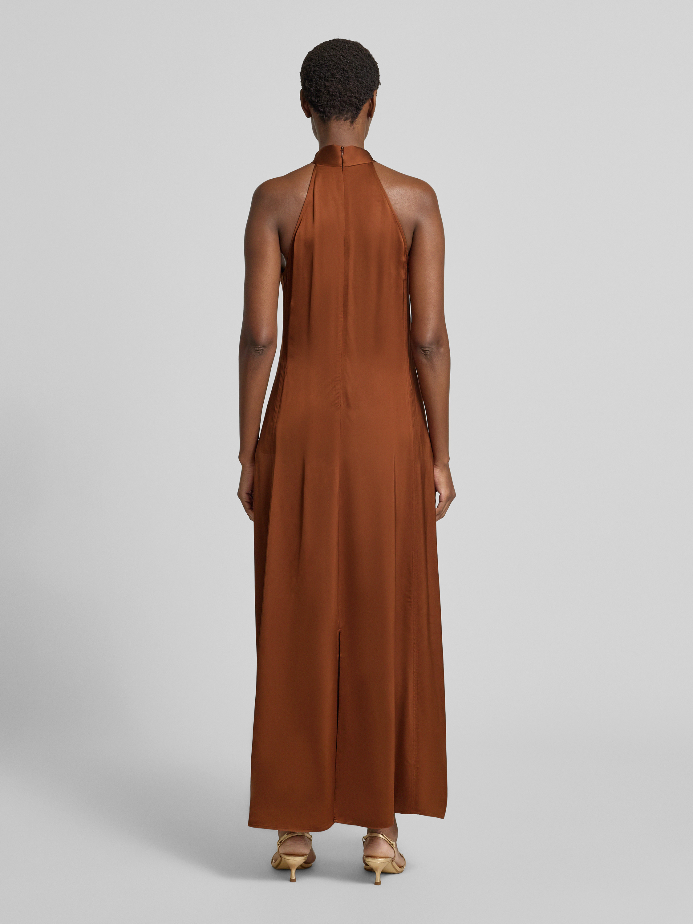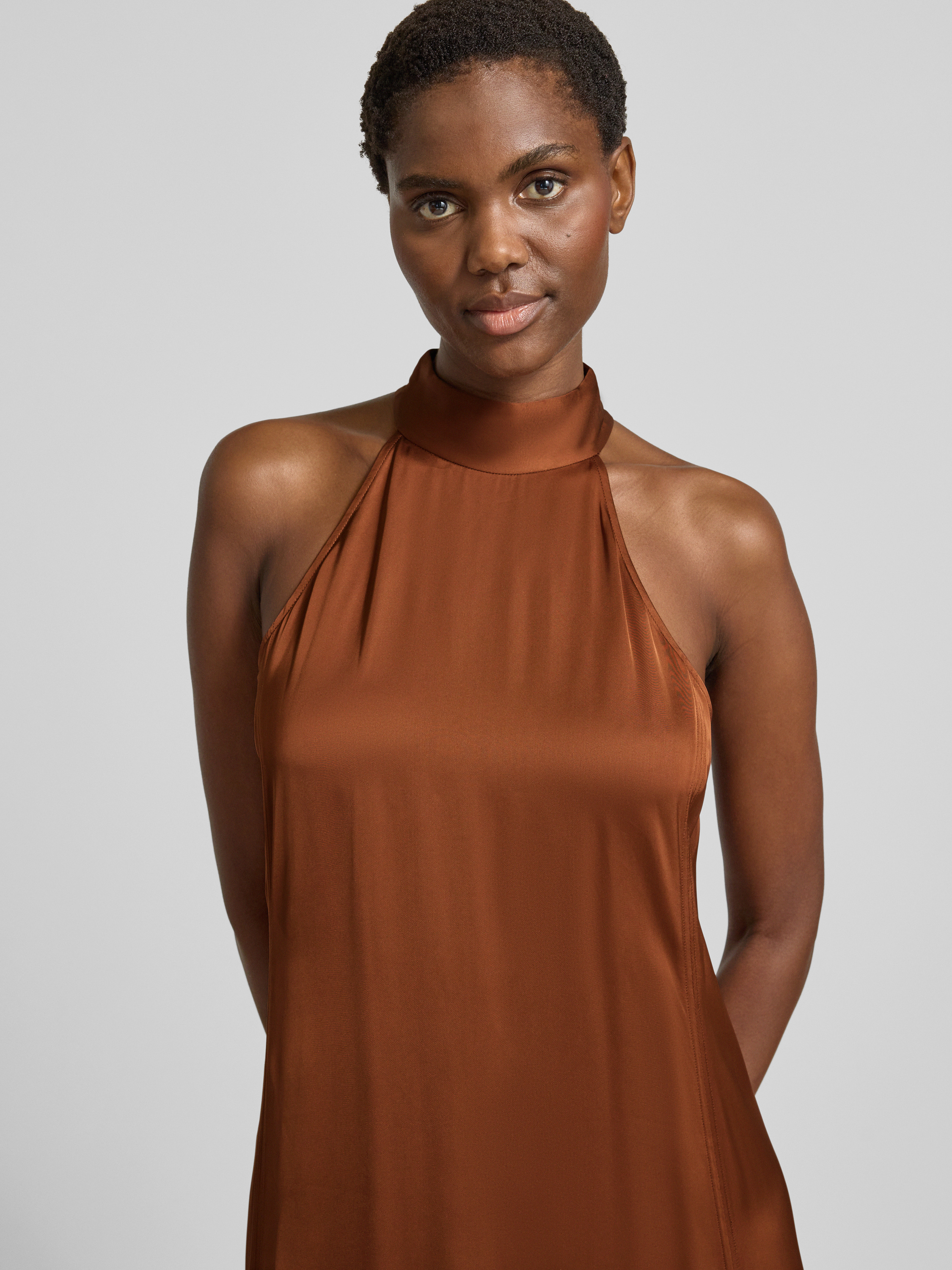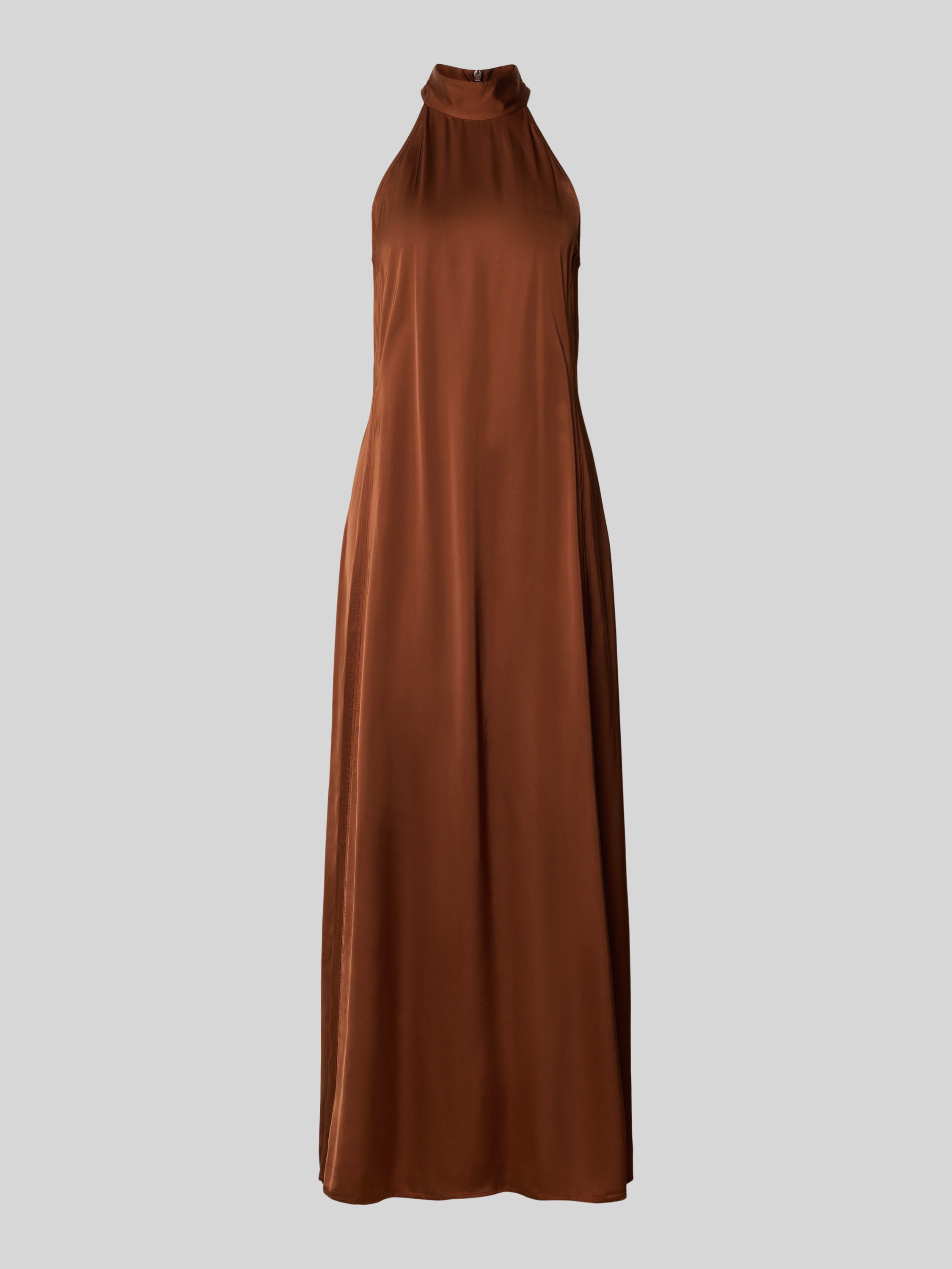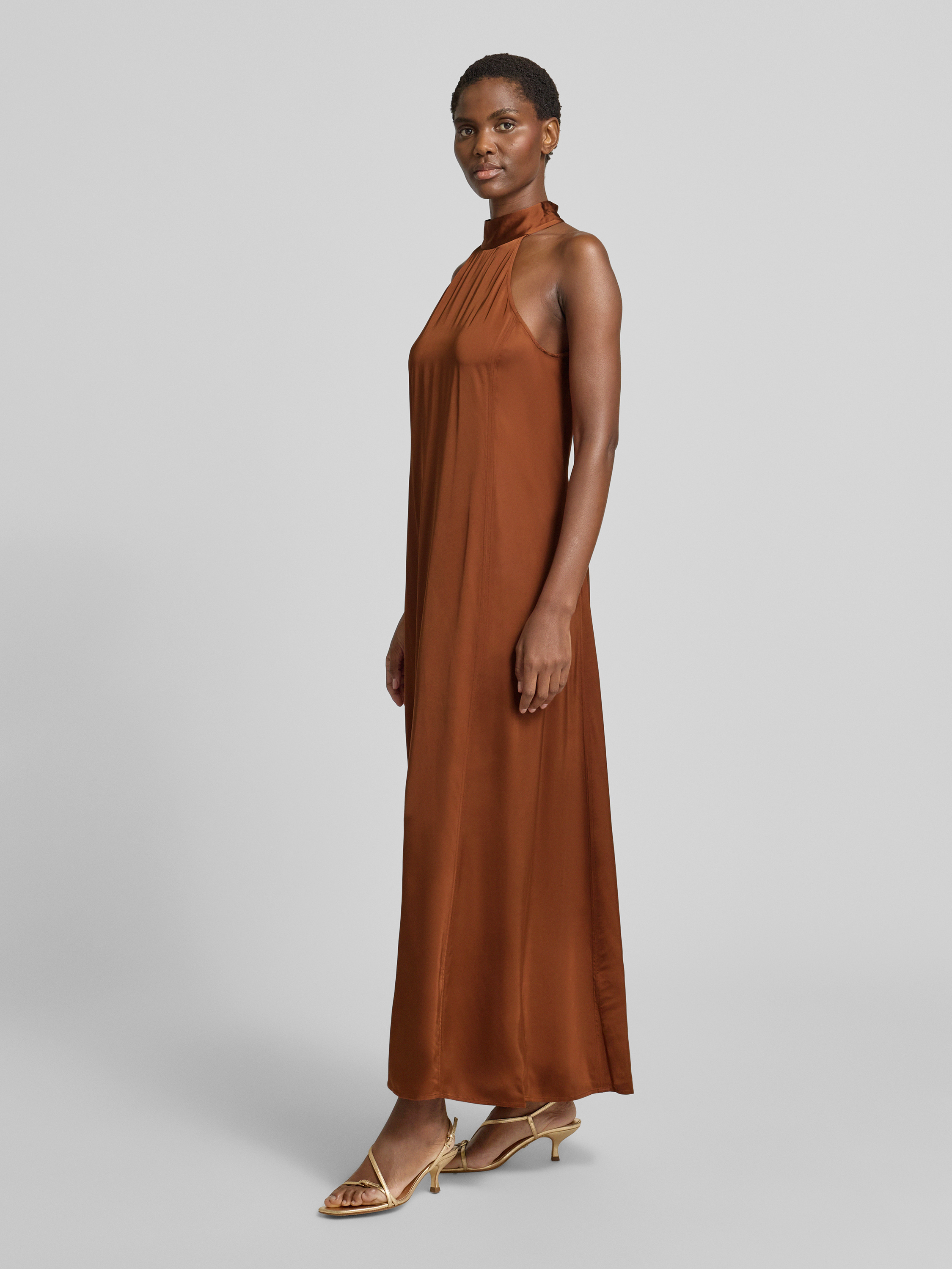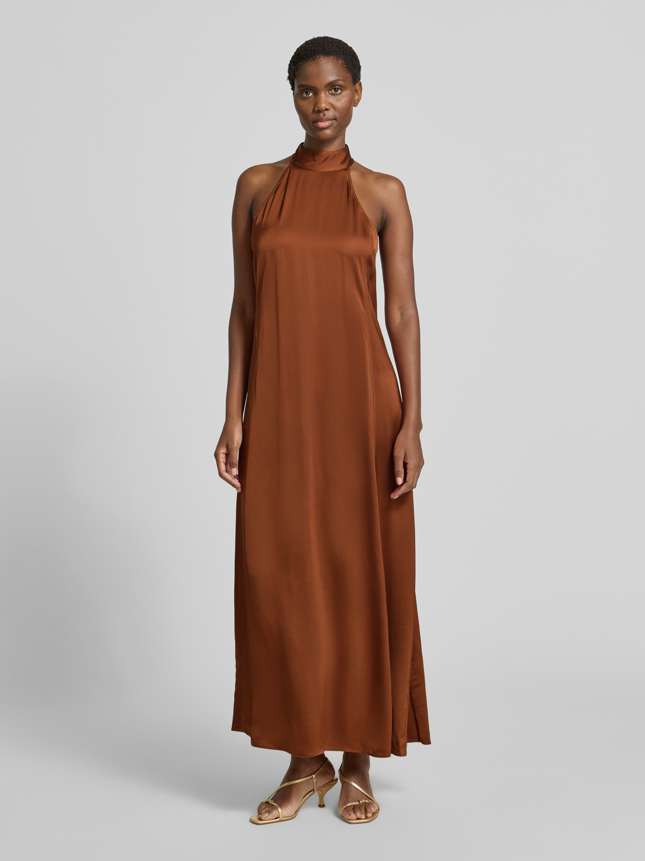 Długa sukienka z wiązaniem na szyi model ‘SANETTLE’ - koniakowy