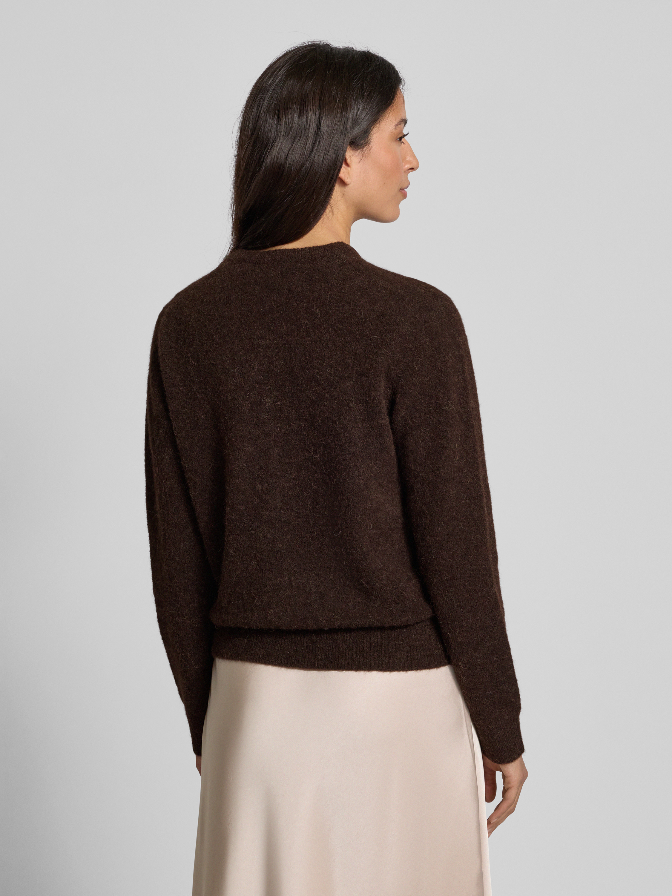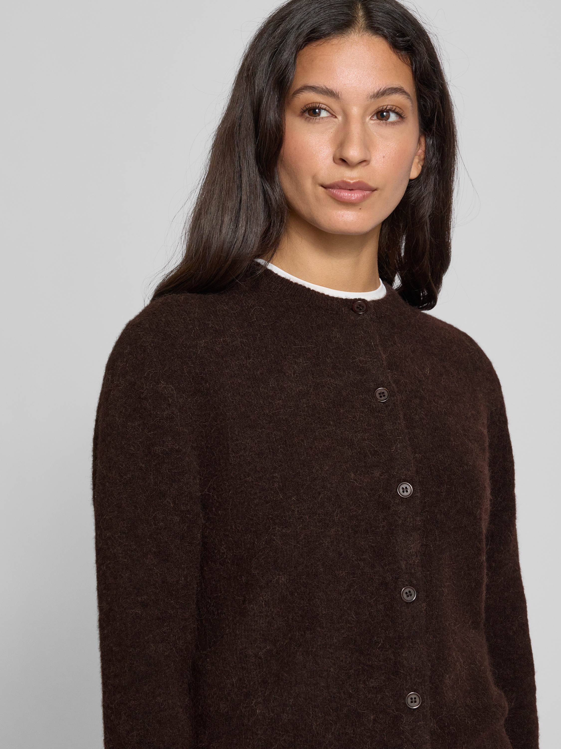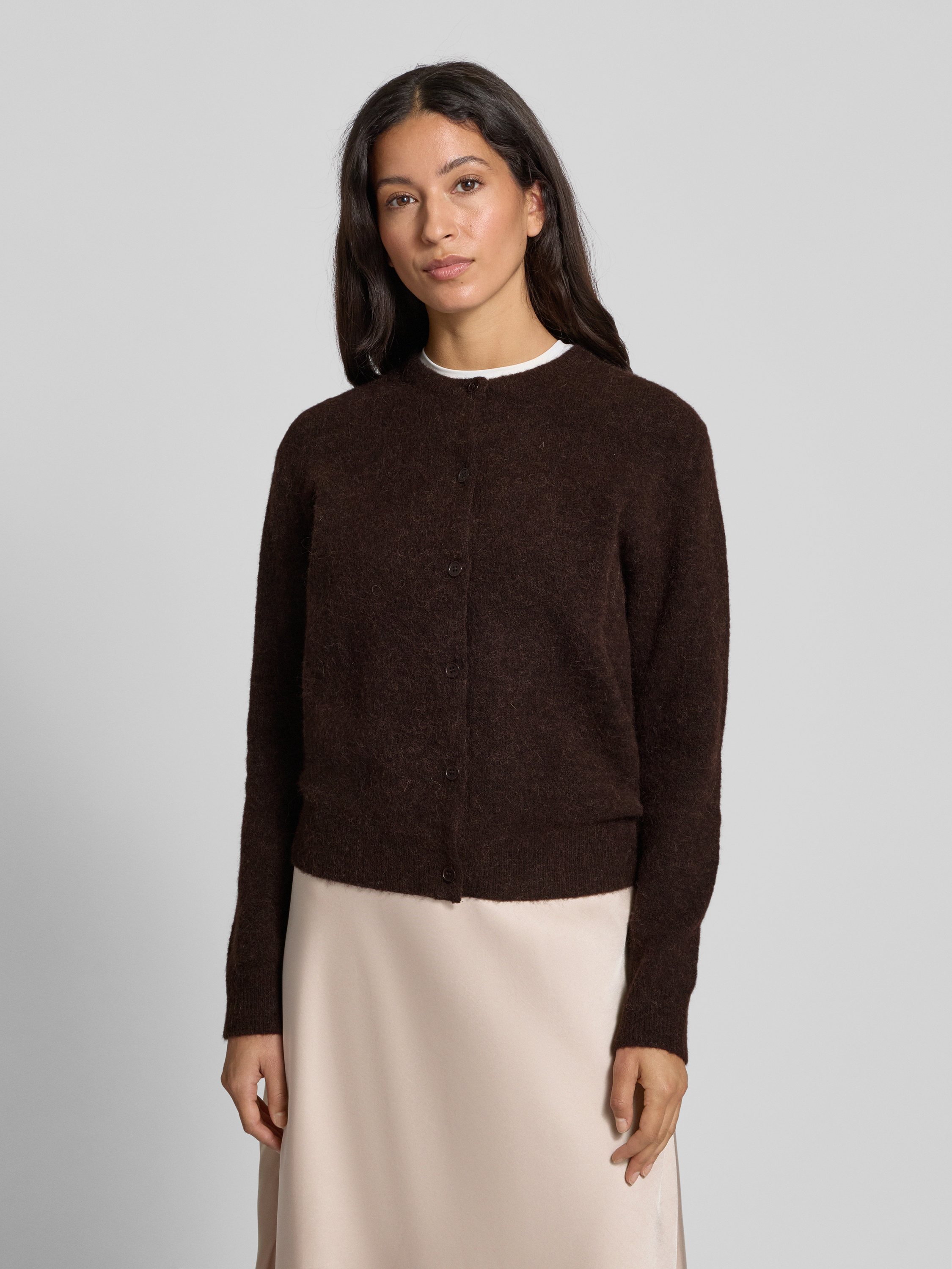 Samsøe SamsøeKardigan z mieszanki wełny z okrągłym dekoltem - czekoladowy melanż