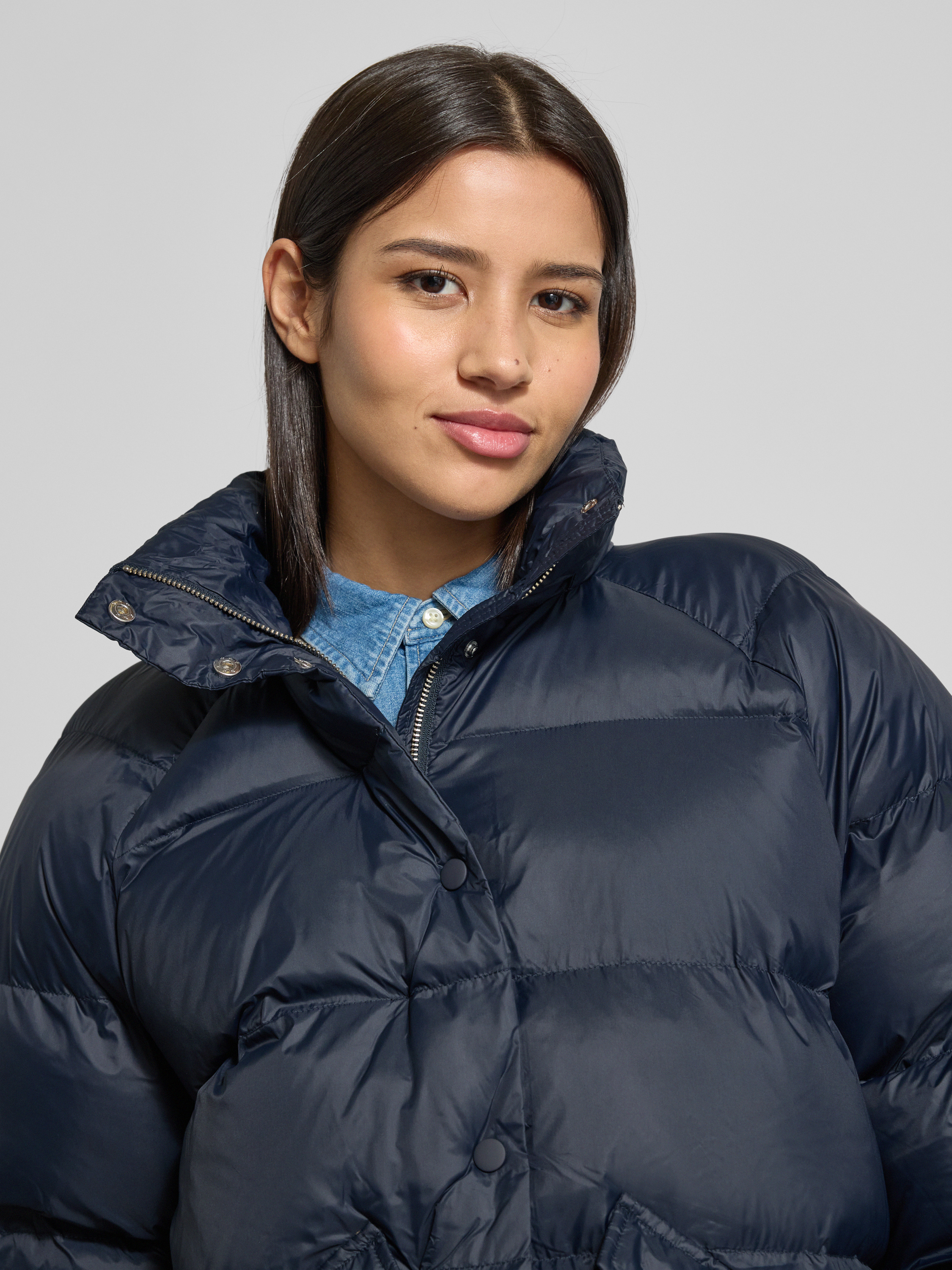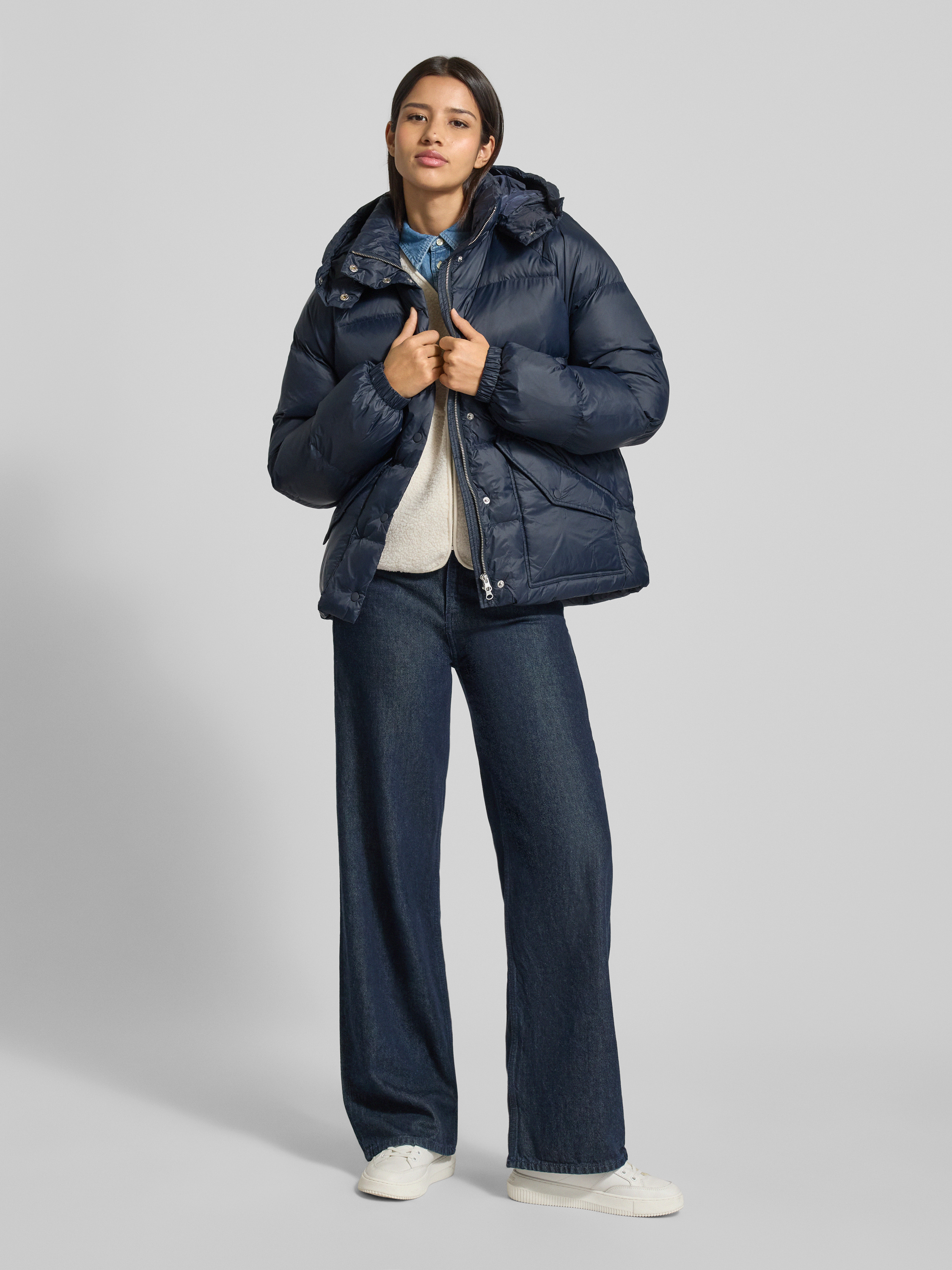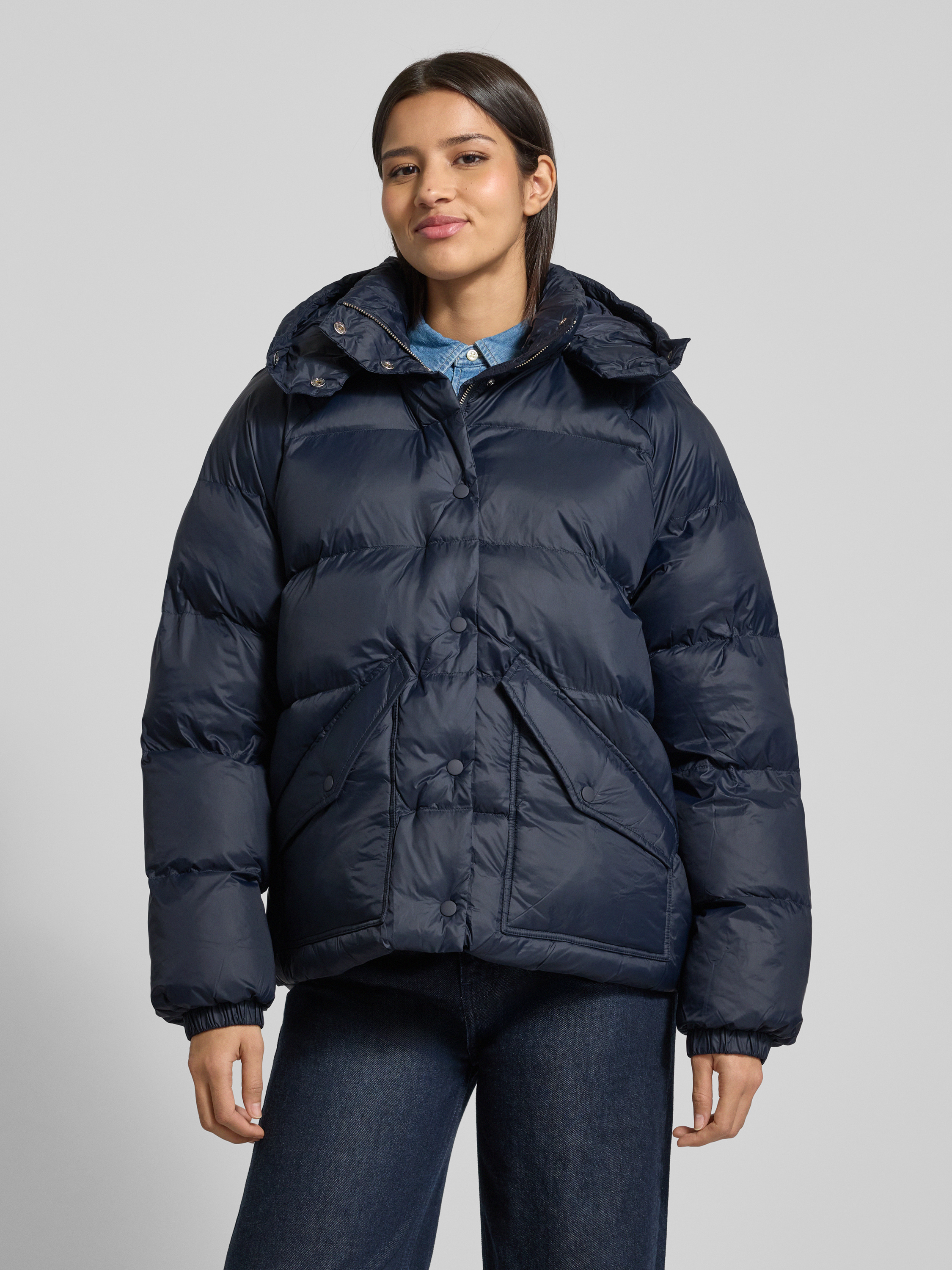 Samsøe SamsøeKurtka pikowana z kapturem i kieszeniami z patką model ‘SAHANAY’ - granatowy