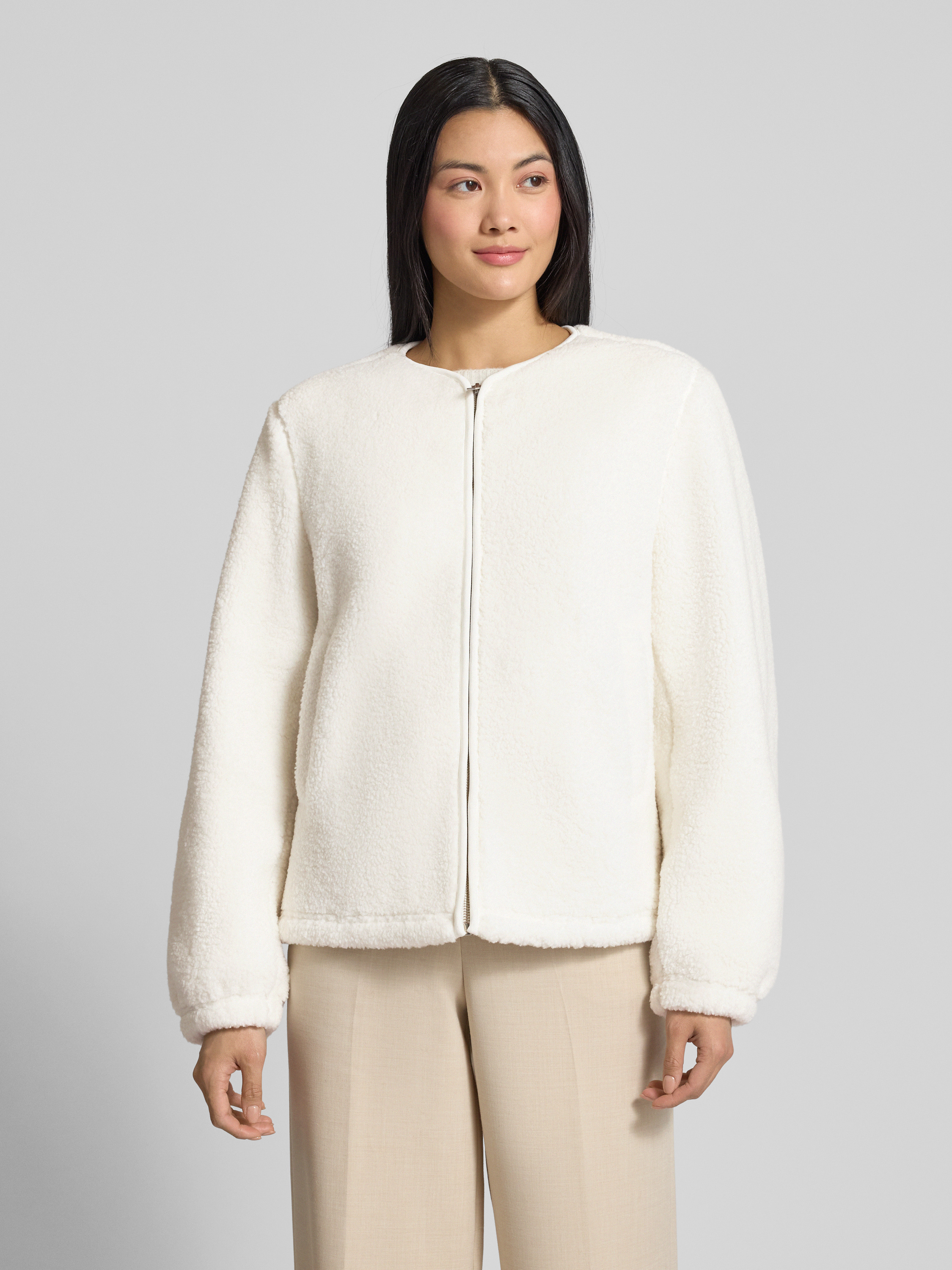 • Samsøe Samsøe Kurtka z polaru z okrągłym dekoltem model ‘AUTUMN’ Złamany biały