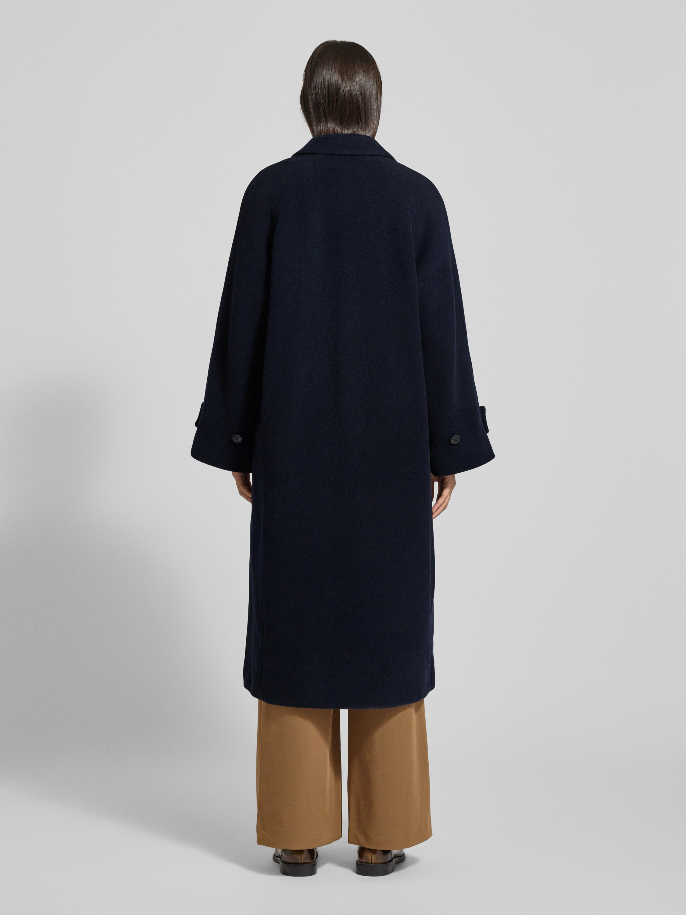 Płaszcz z mieszanki lnu model ‘ALMA’ - granatowy