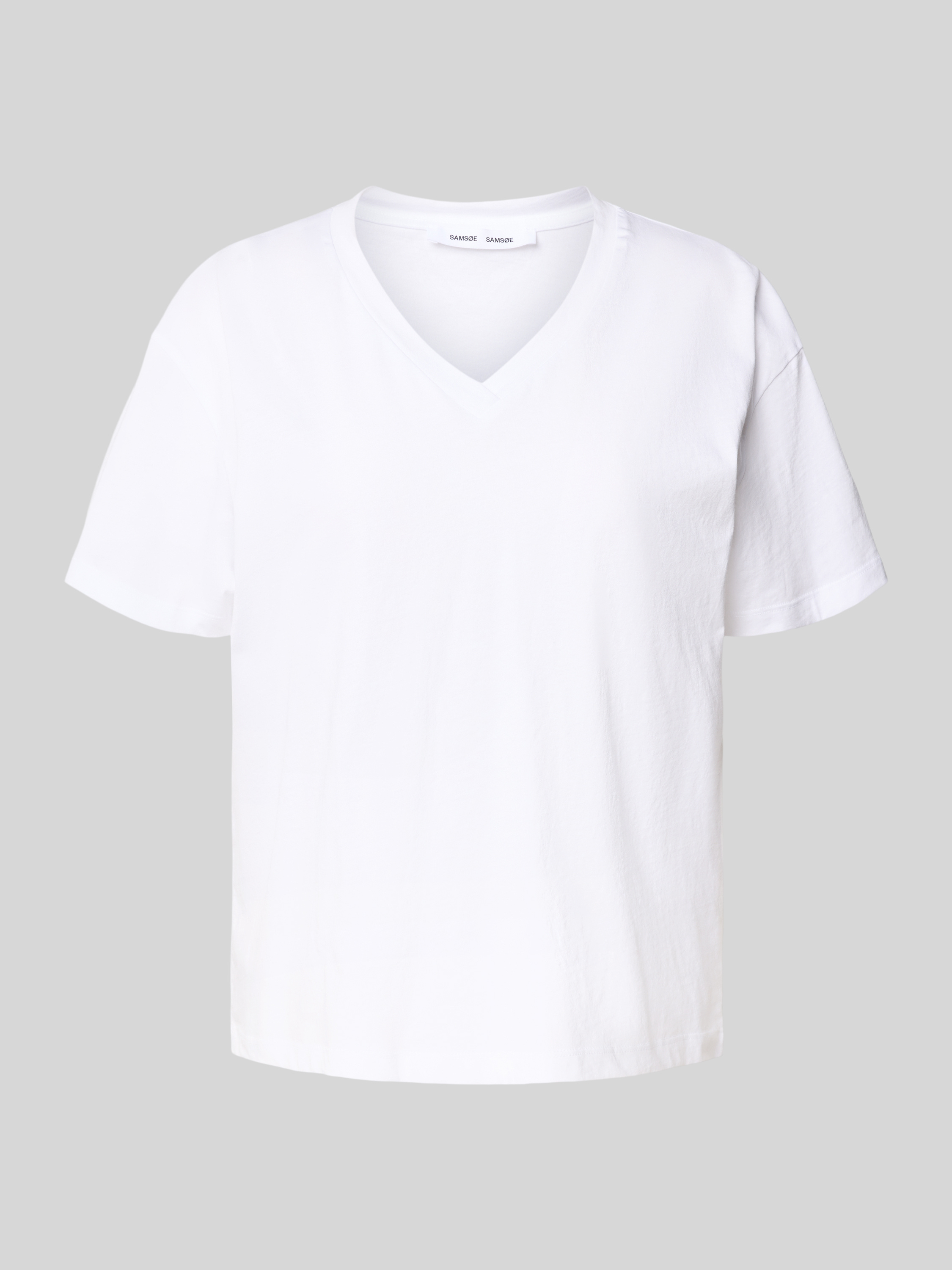 T-shirt z prążkowanym dekoltem w serek model ‘SAELI’ - biały
