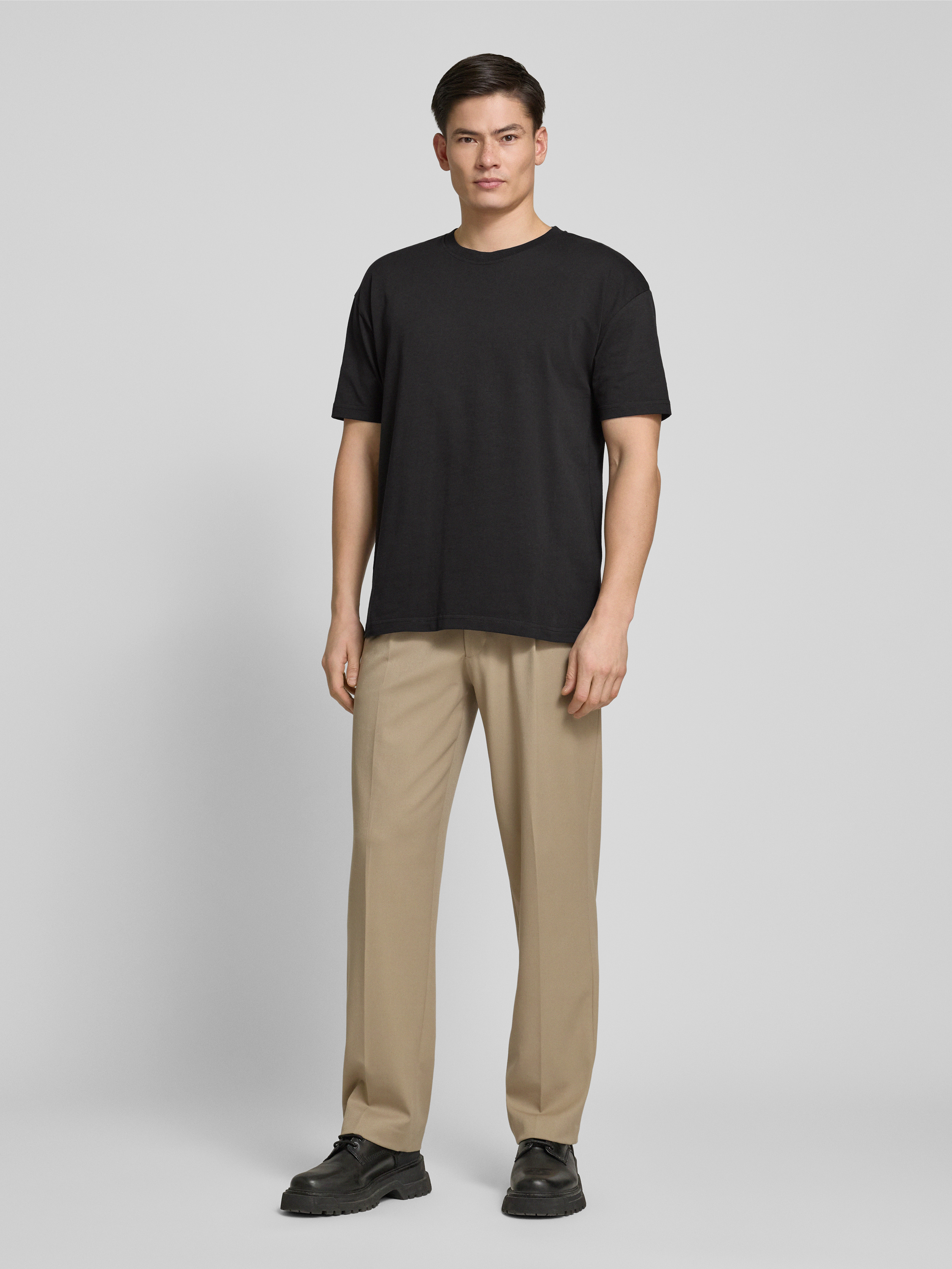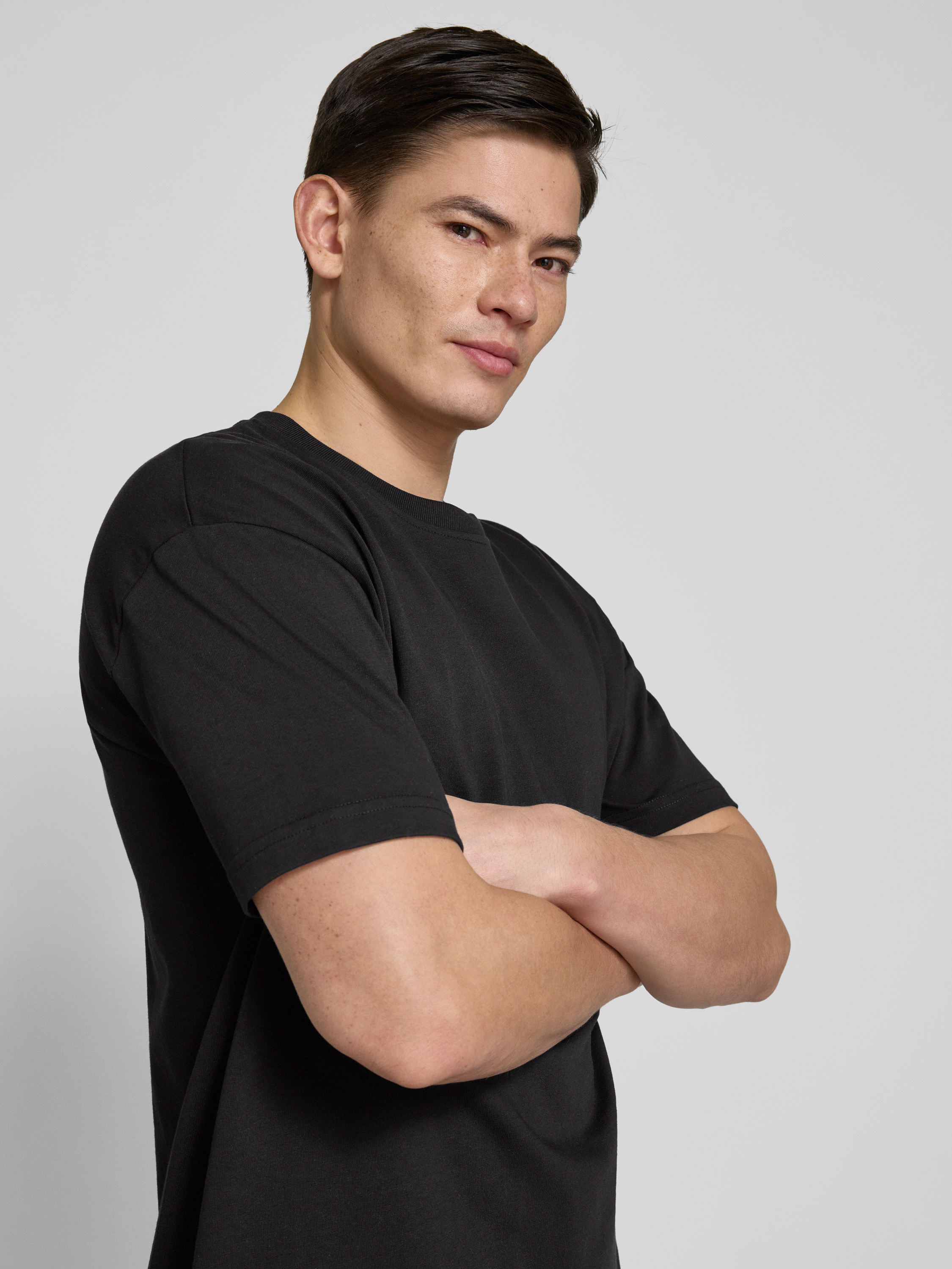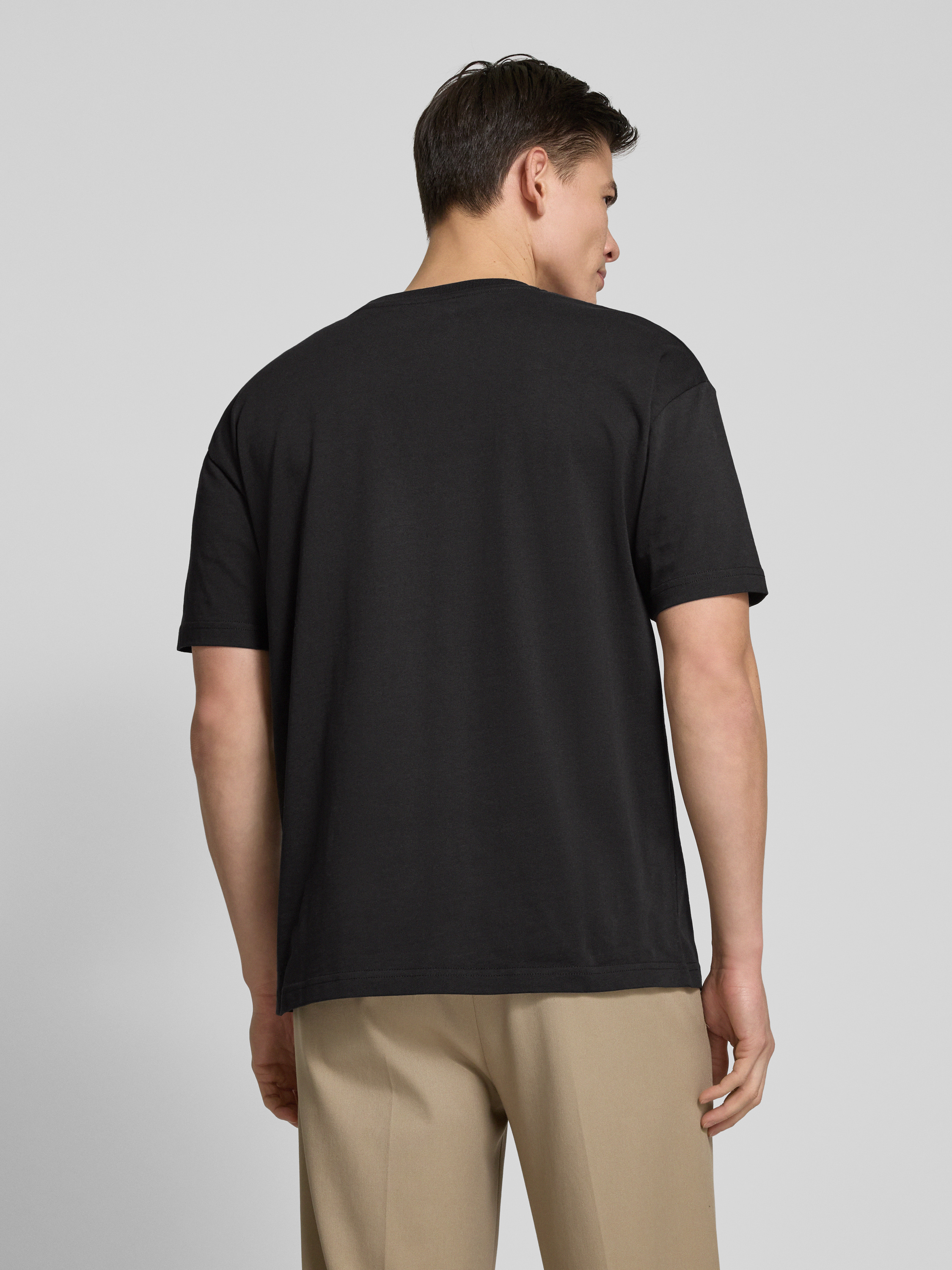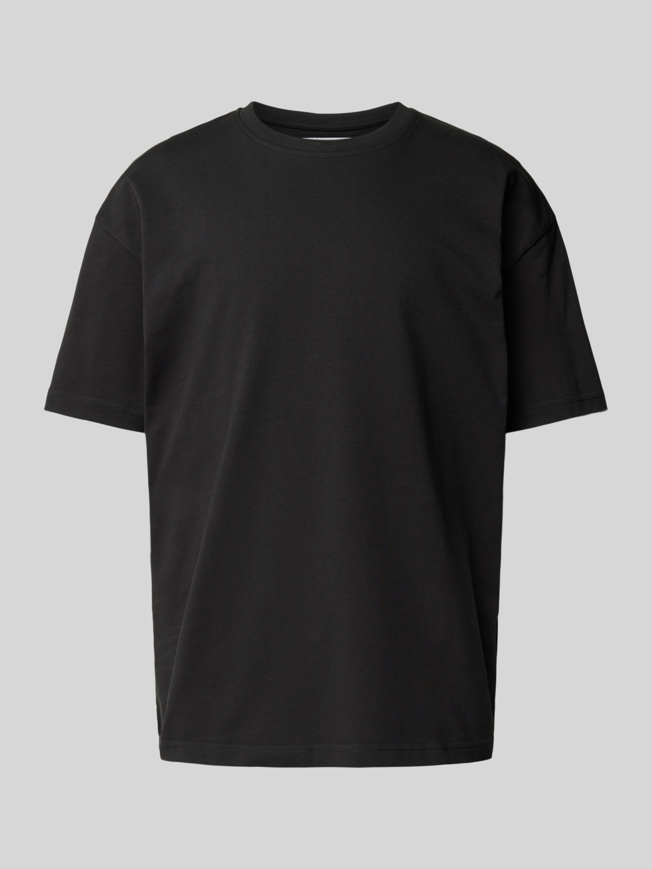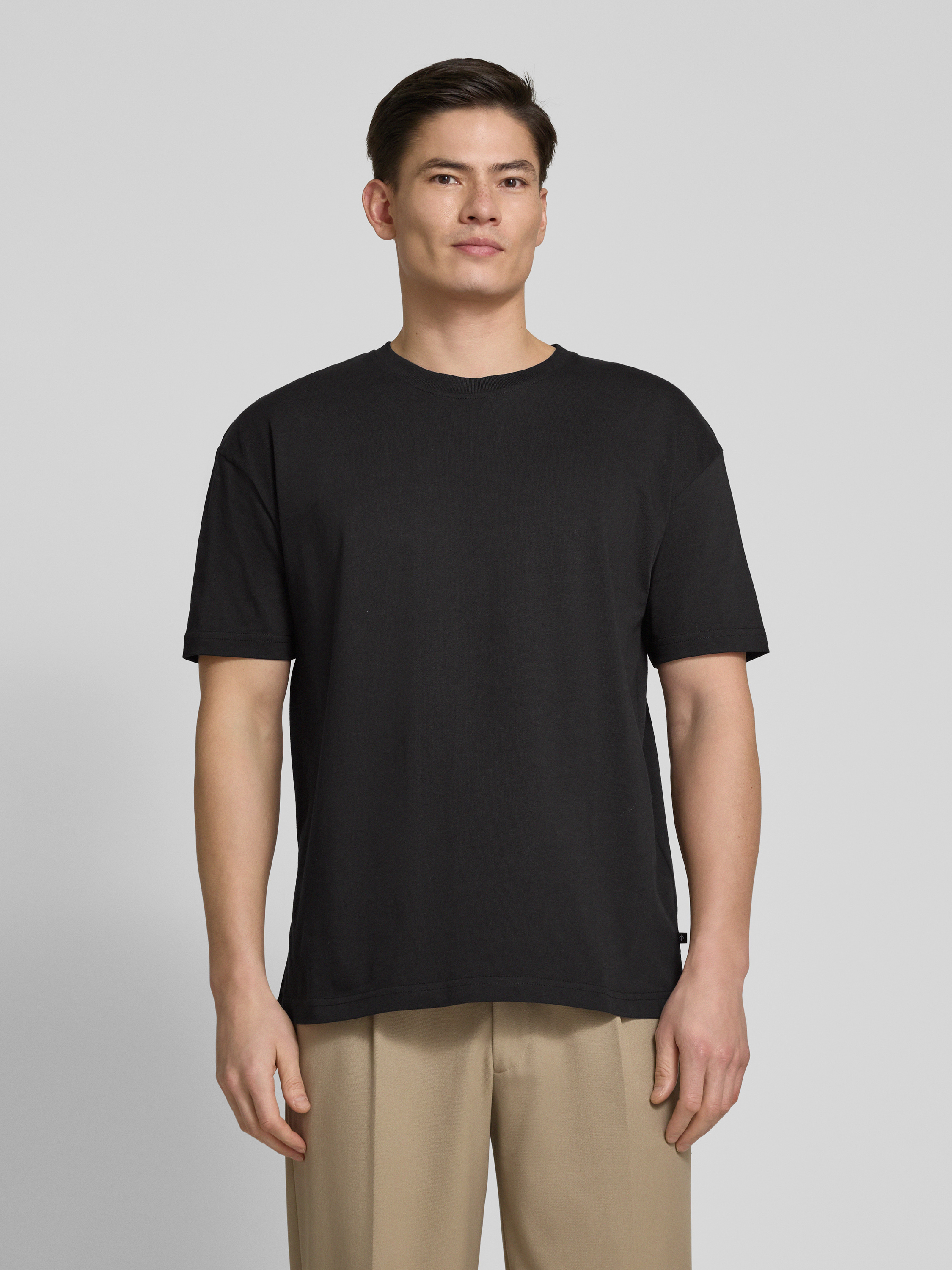 T-shirt z prążkowanym, okrągłym dekoltem model ‘HUDSON’ - czarny