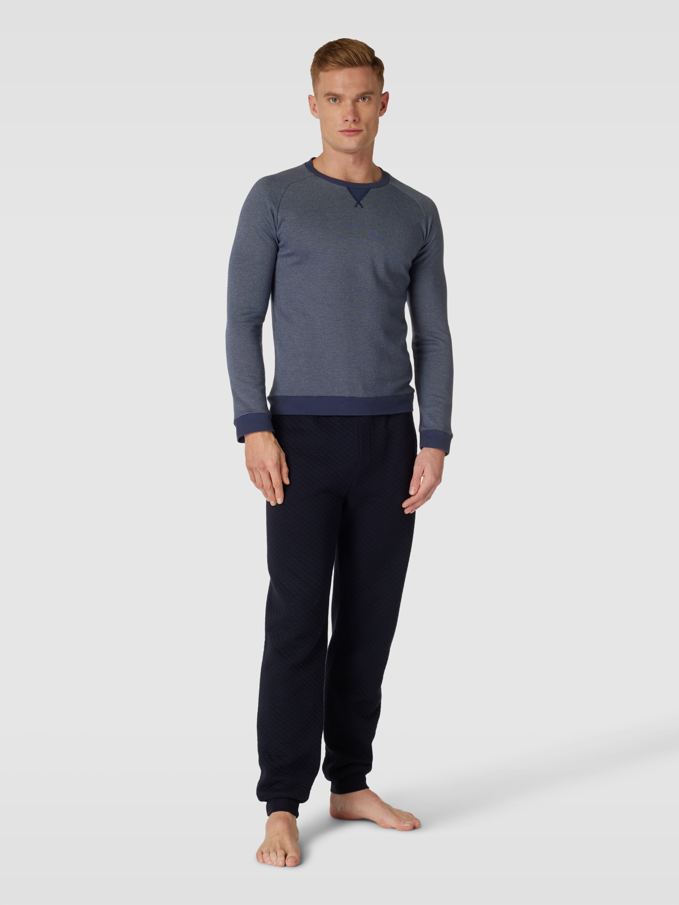 Bluzka z długim rękawem i fakturowanym wzorem model ‘Mix+Relax’ - granatowy
