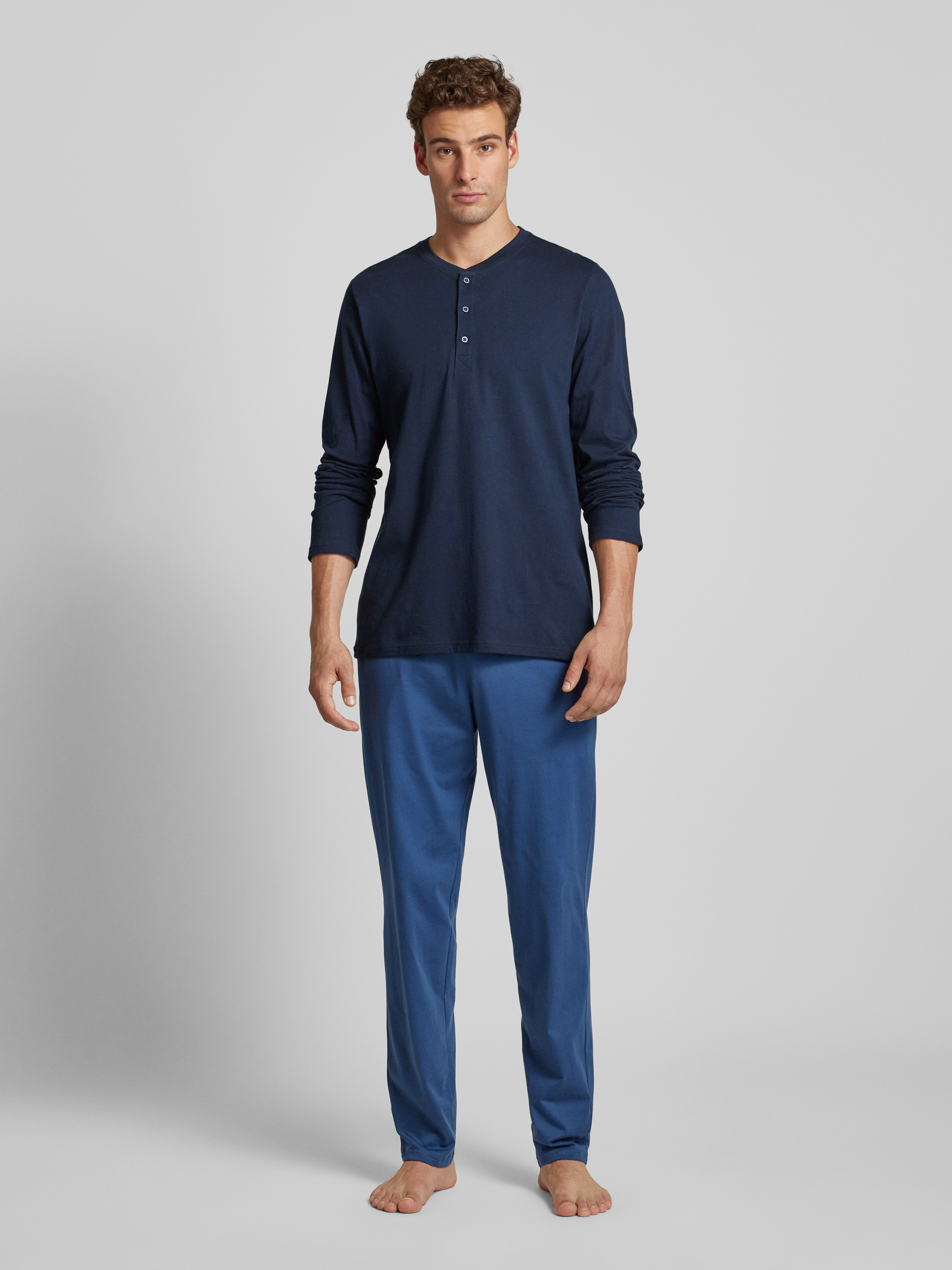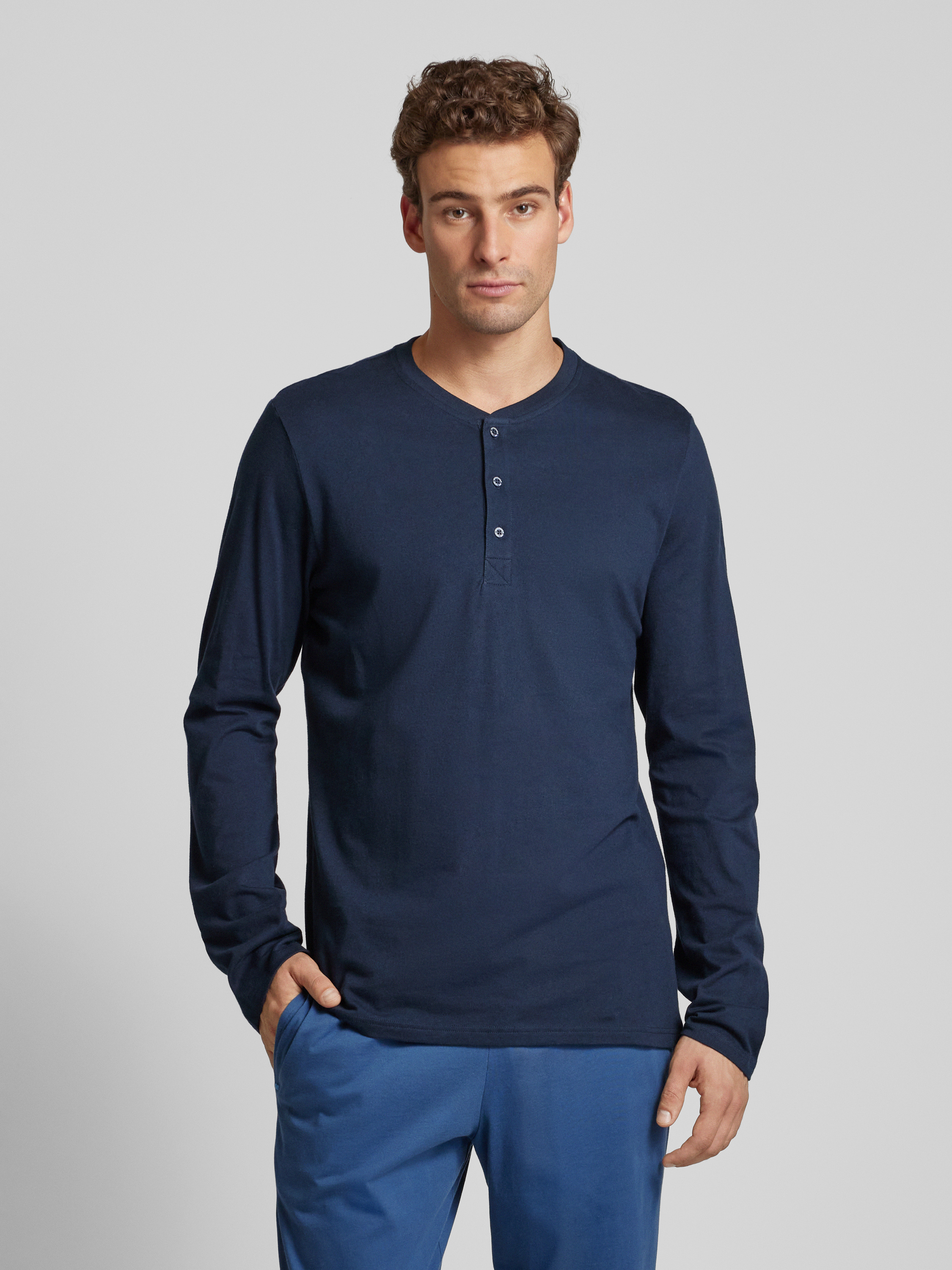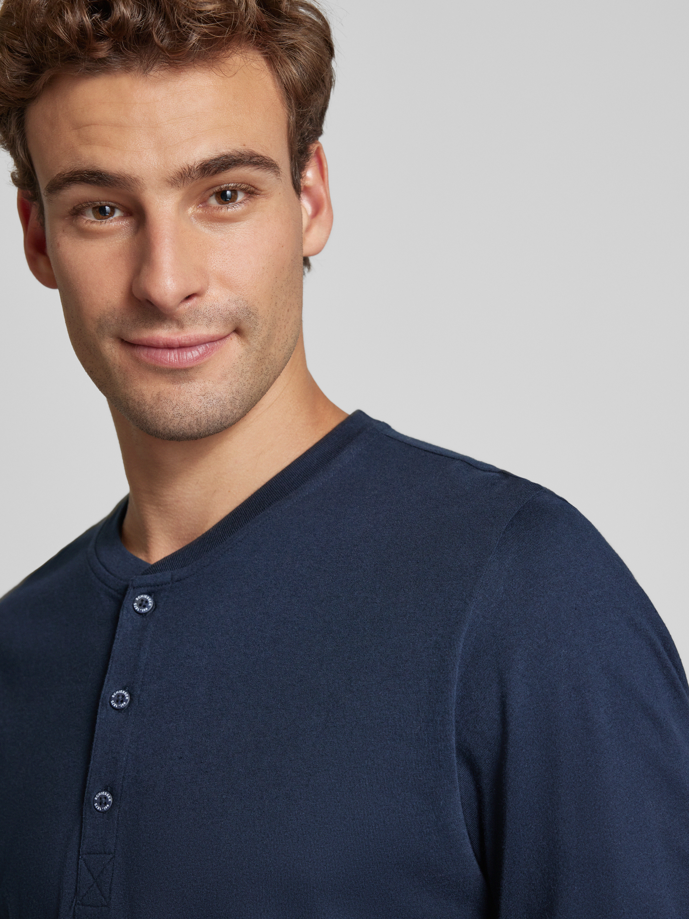 Bluzka z długim rękawem i krótką listwą guzikową - ciemnoniebieski