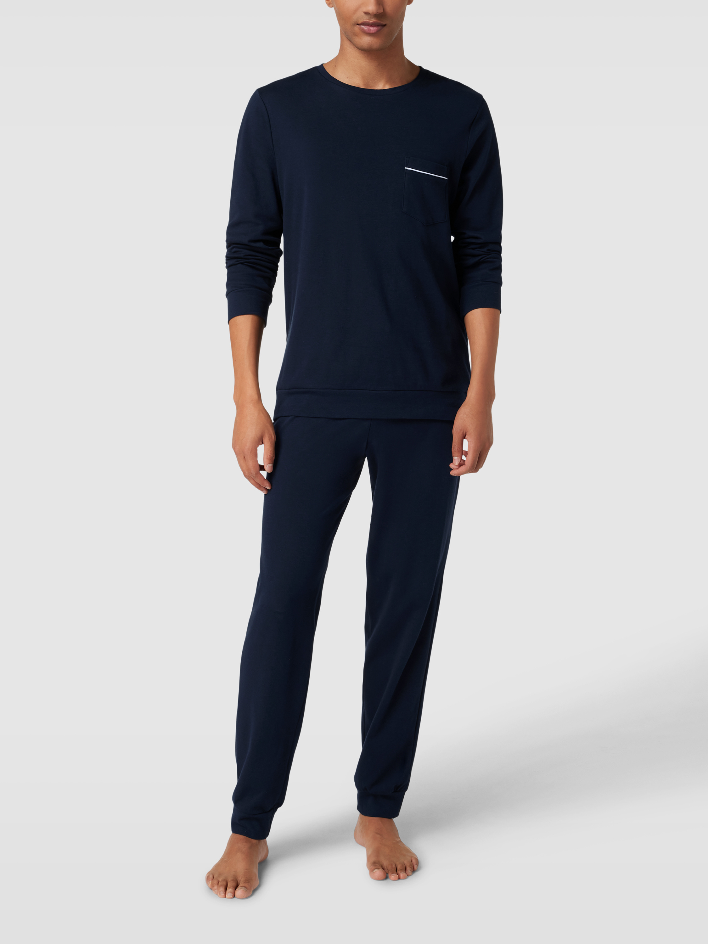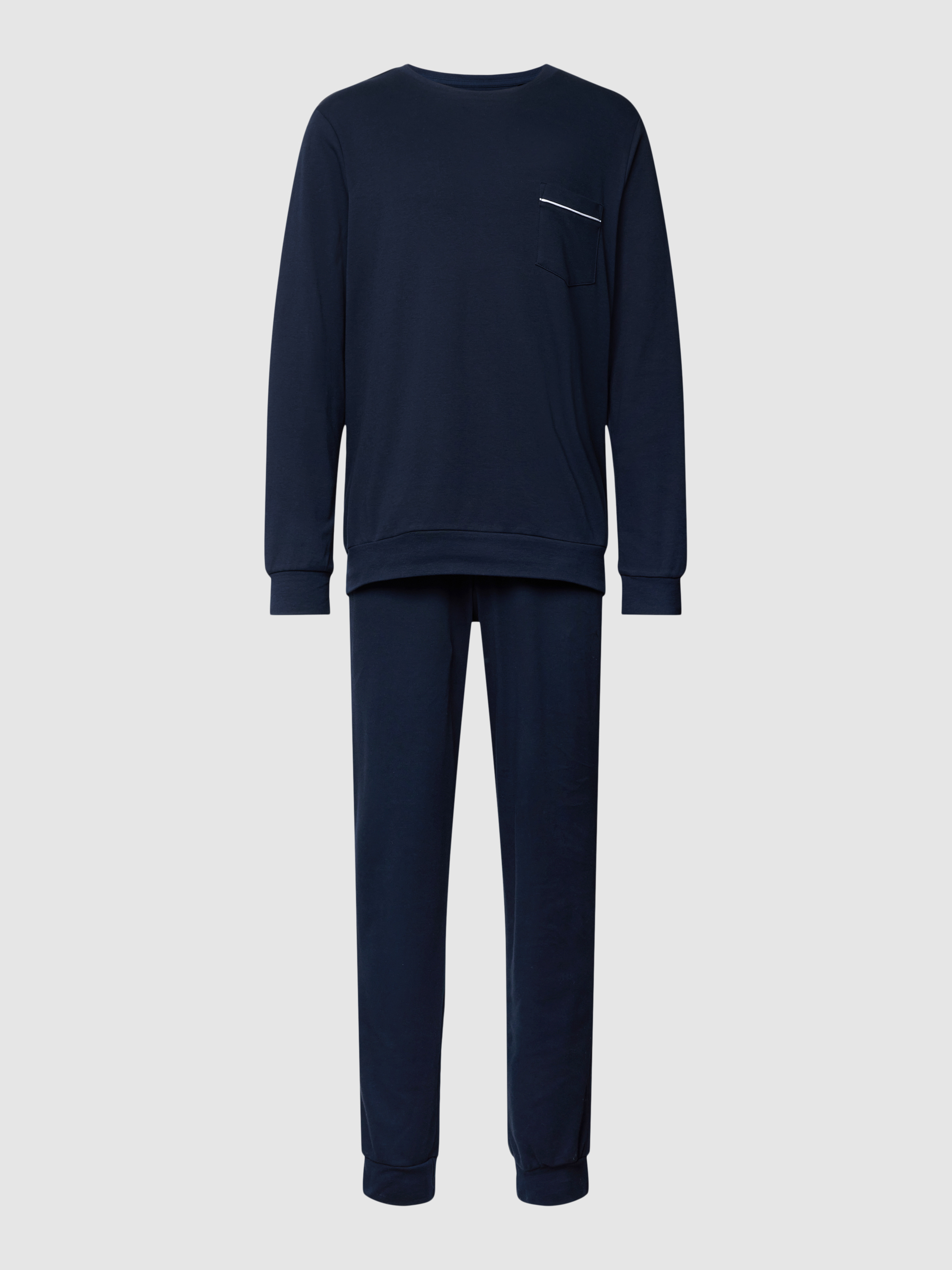 Piżama z kieszenią na piersi model ‘INTERLOCK’ - ciemnoniebieski