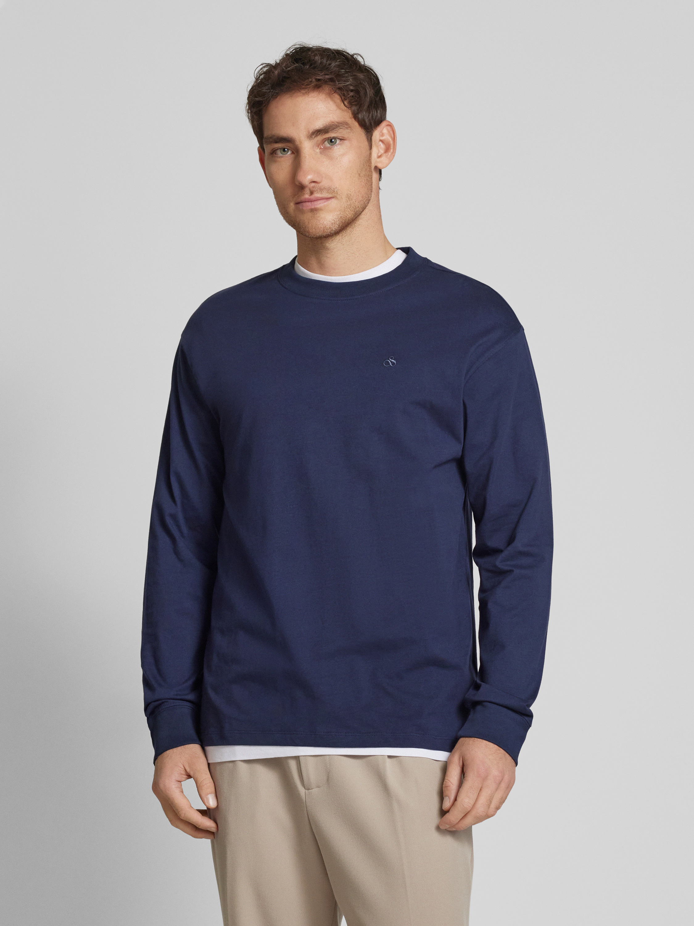 Bluzka z długim rękawem i wyhaftowanym logo - ciemnoniebieski