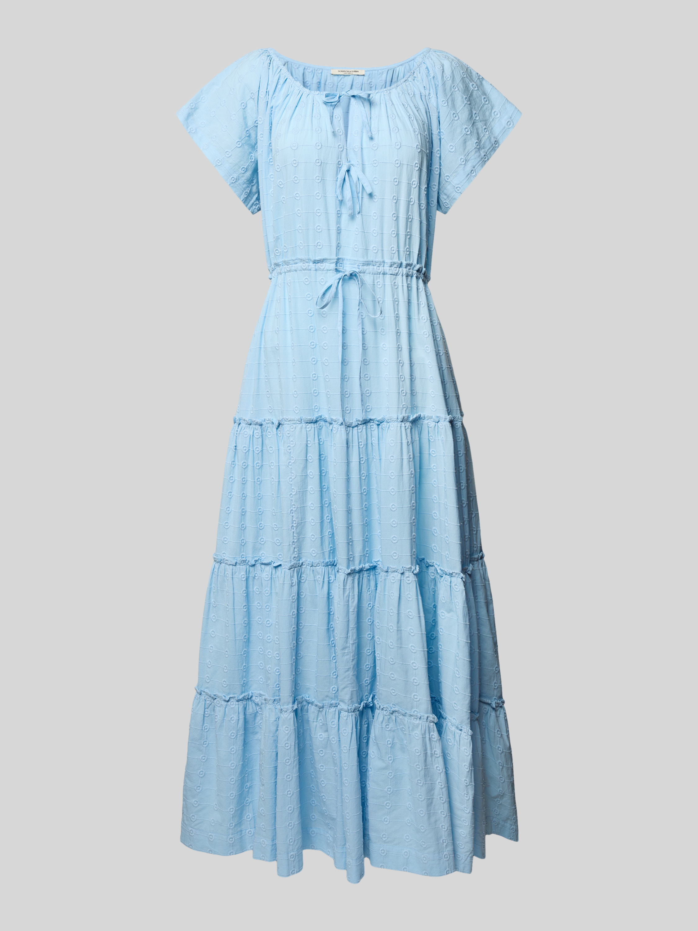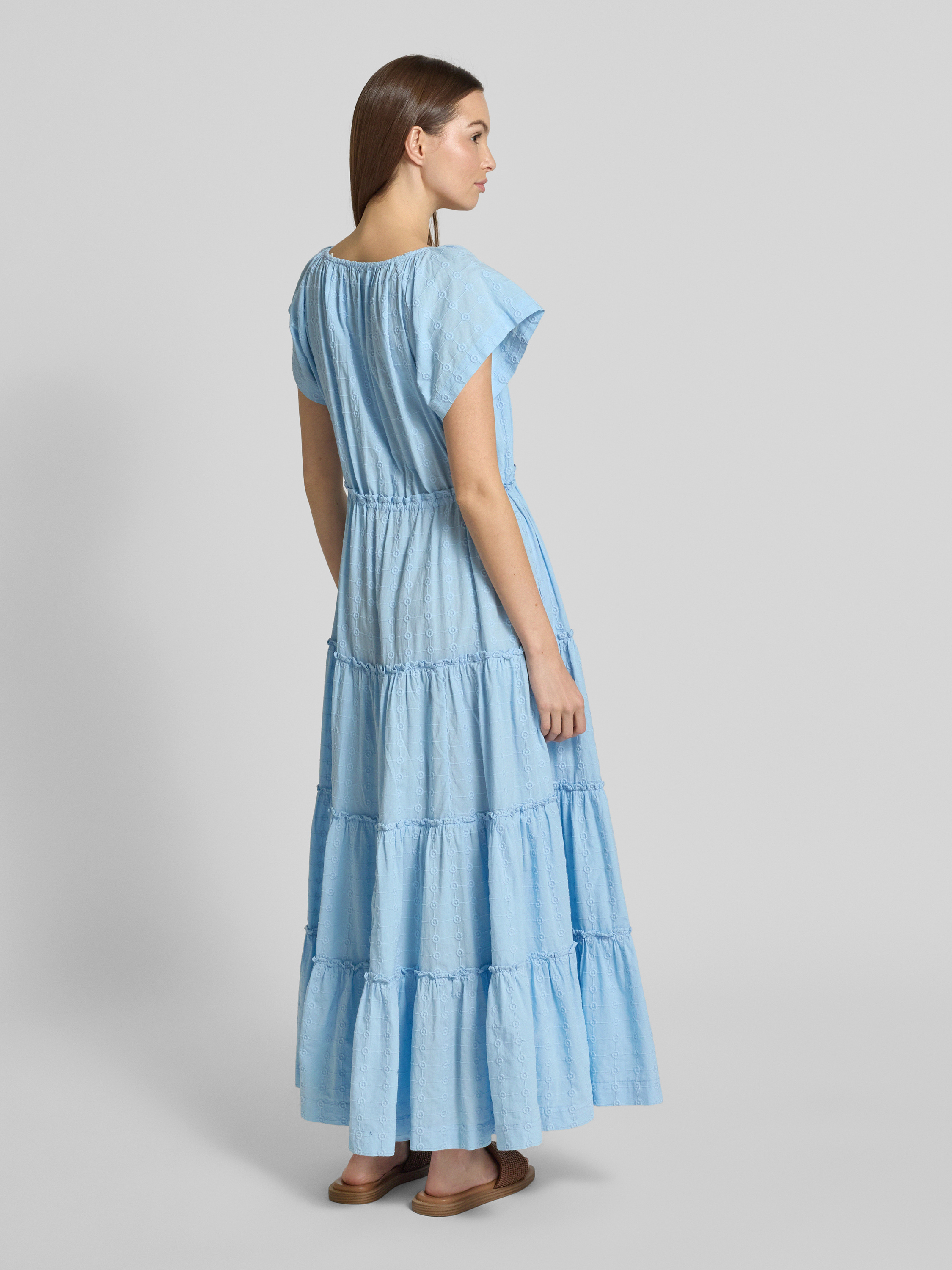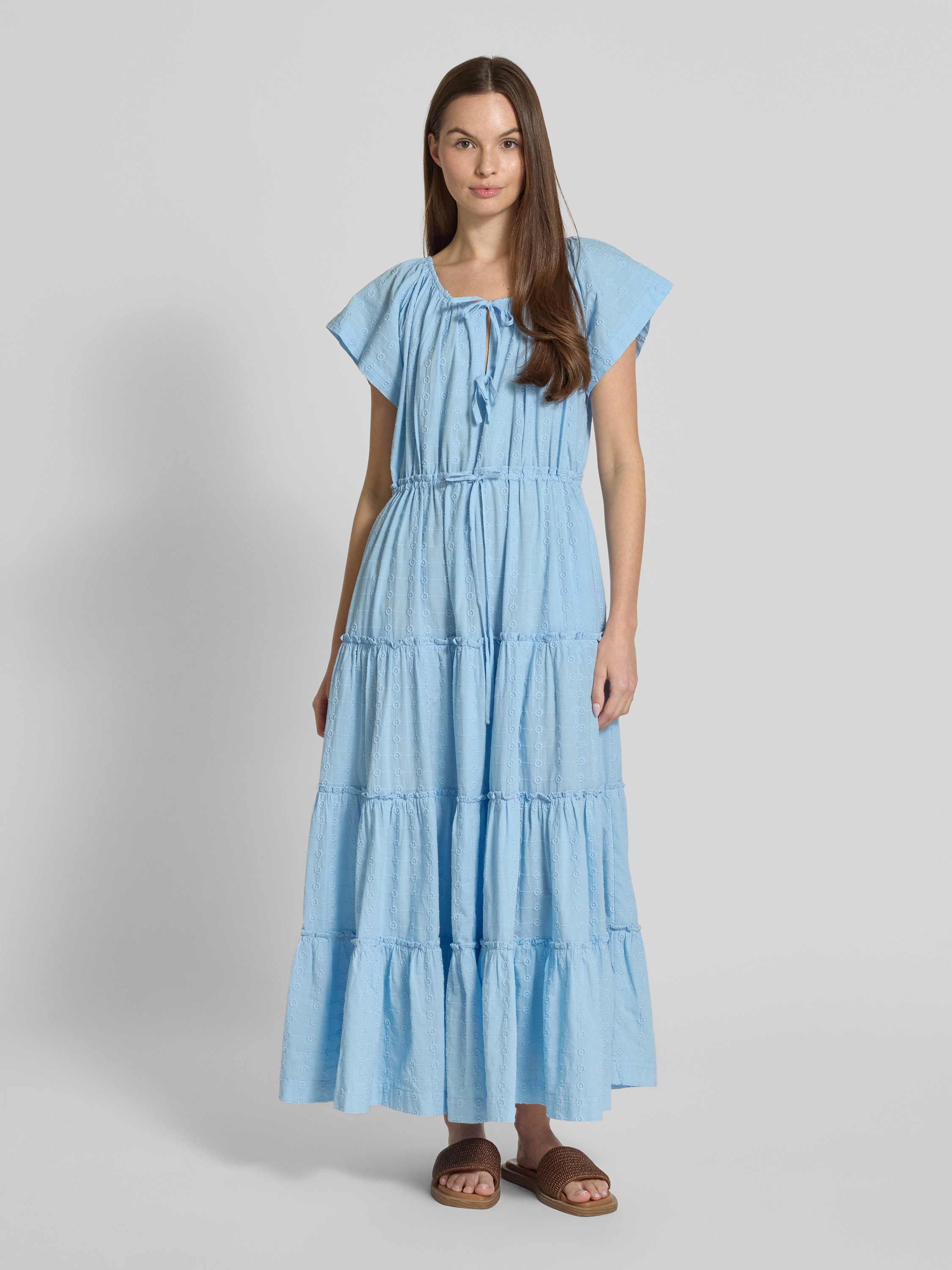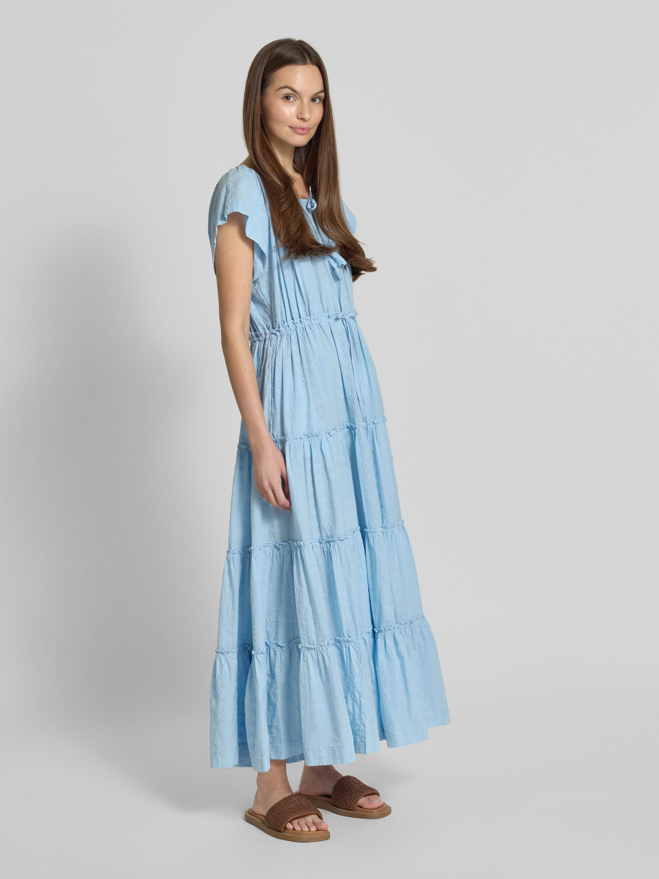 Długa sukienka z efektem stopniowania i wiązaniem - jasnoniebieski
