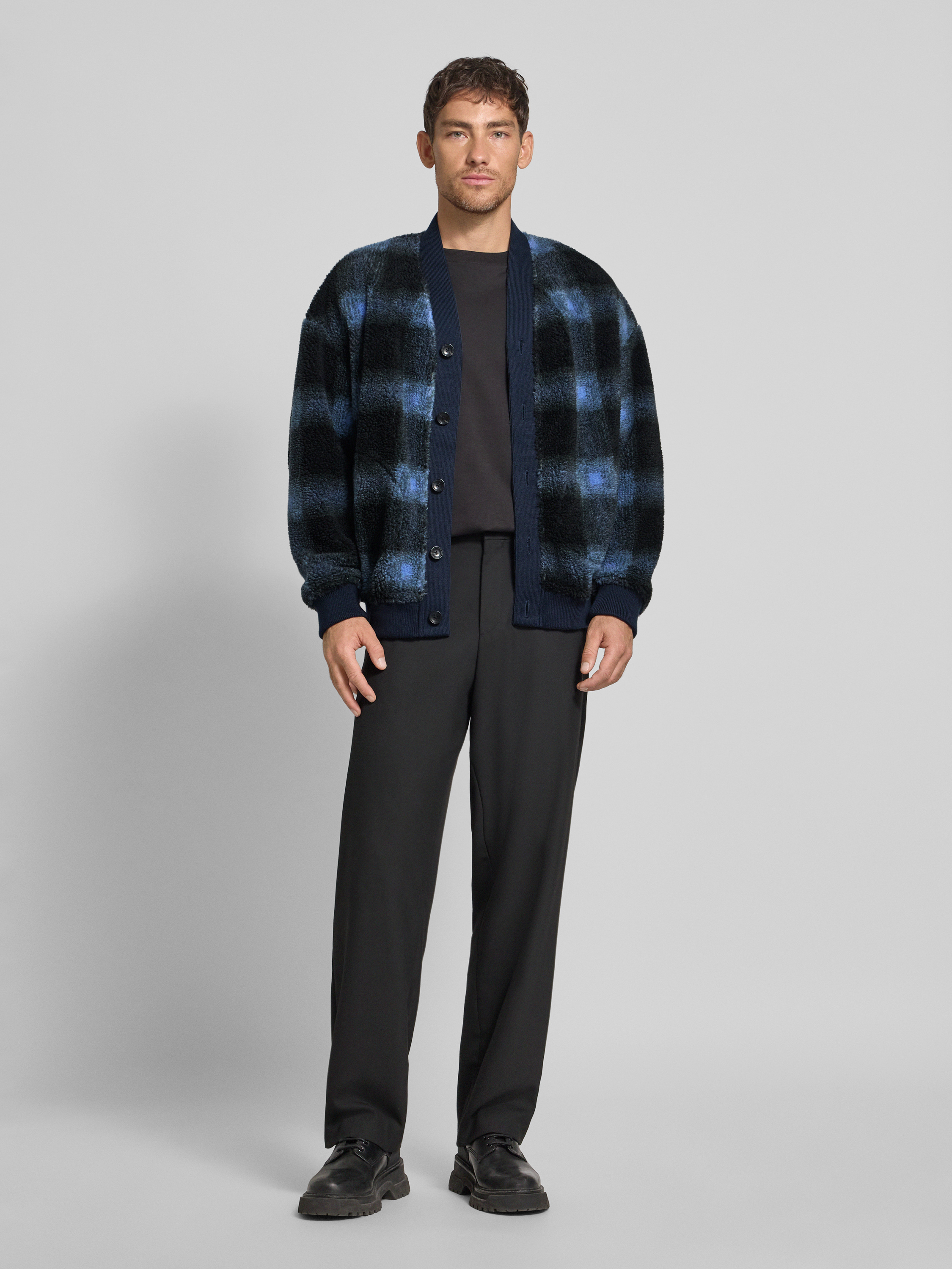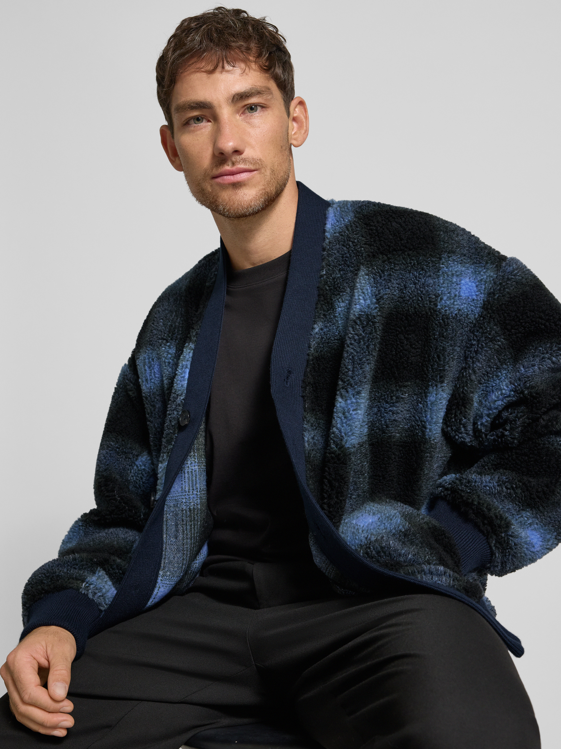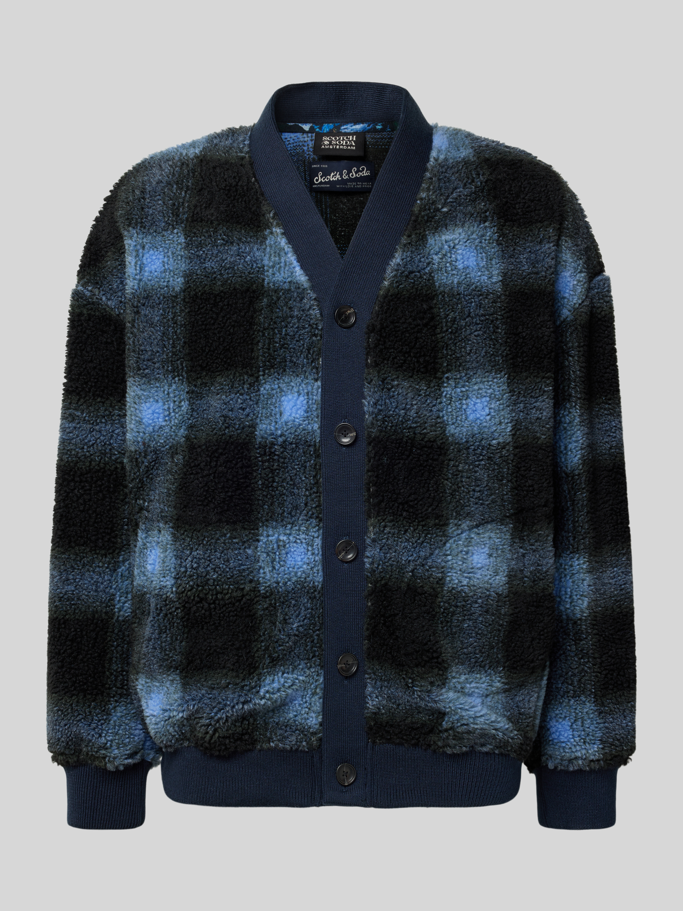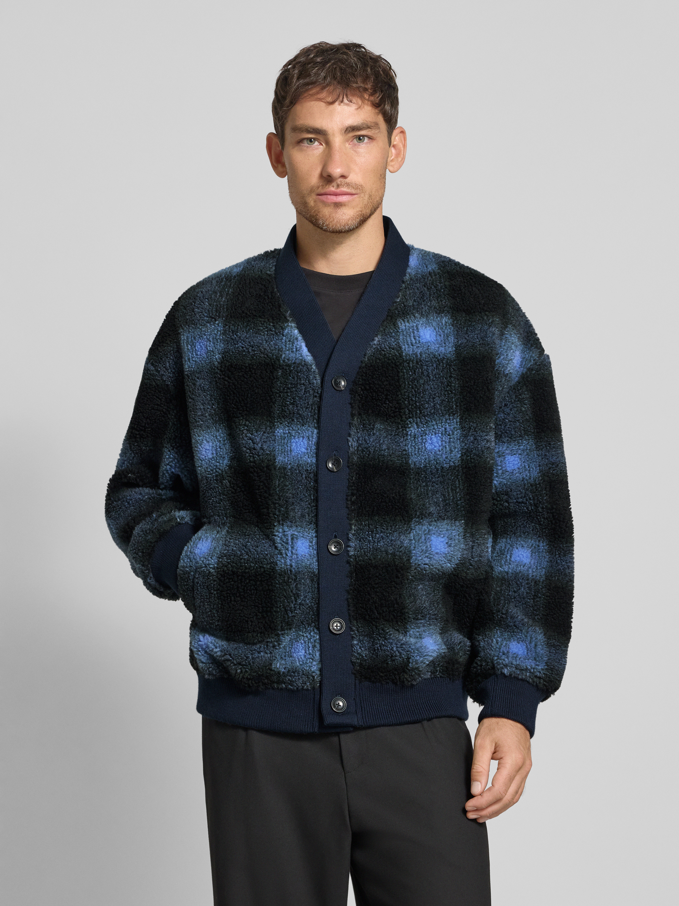 Kardigan o kroju regular fit z dekoltem w serek model ‘Polar’ - ciemnoniebieski
