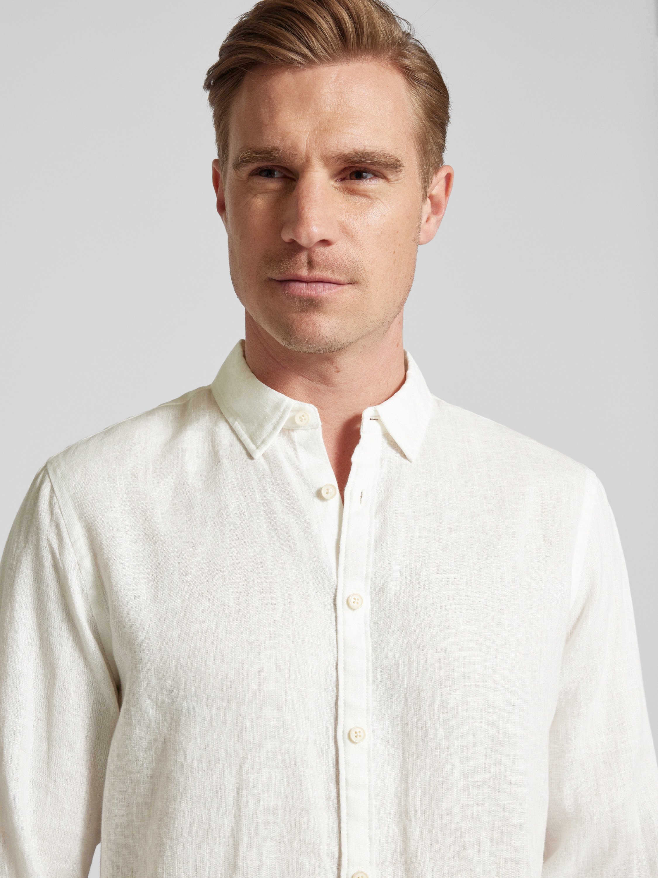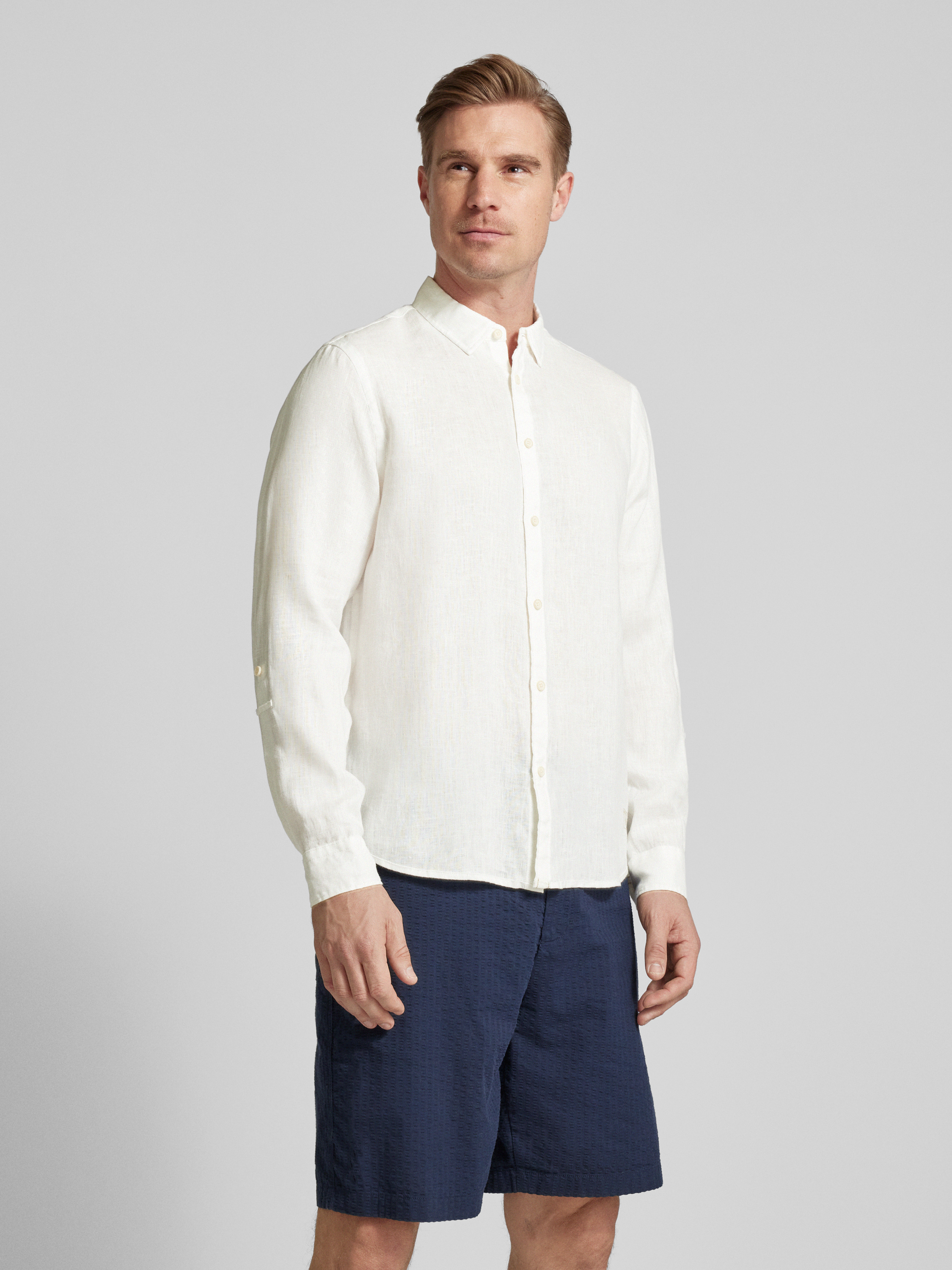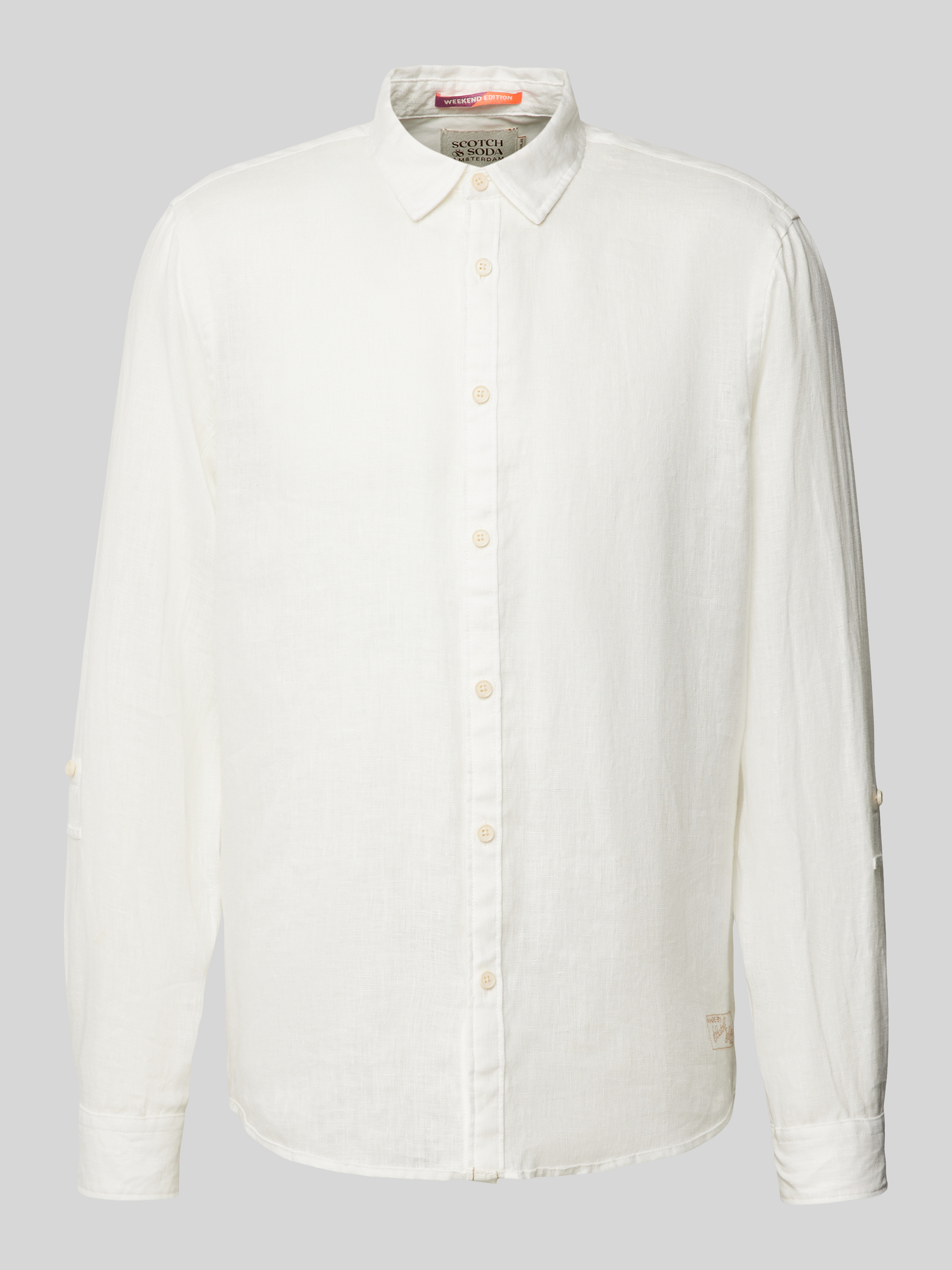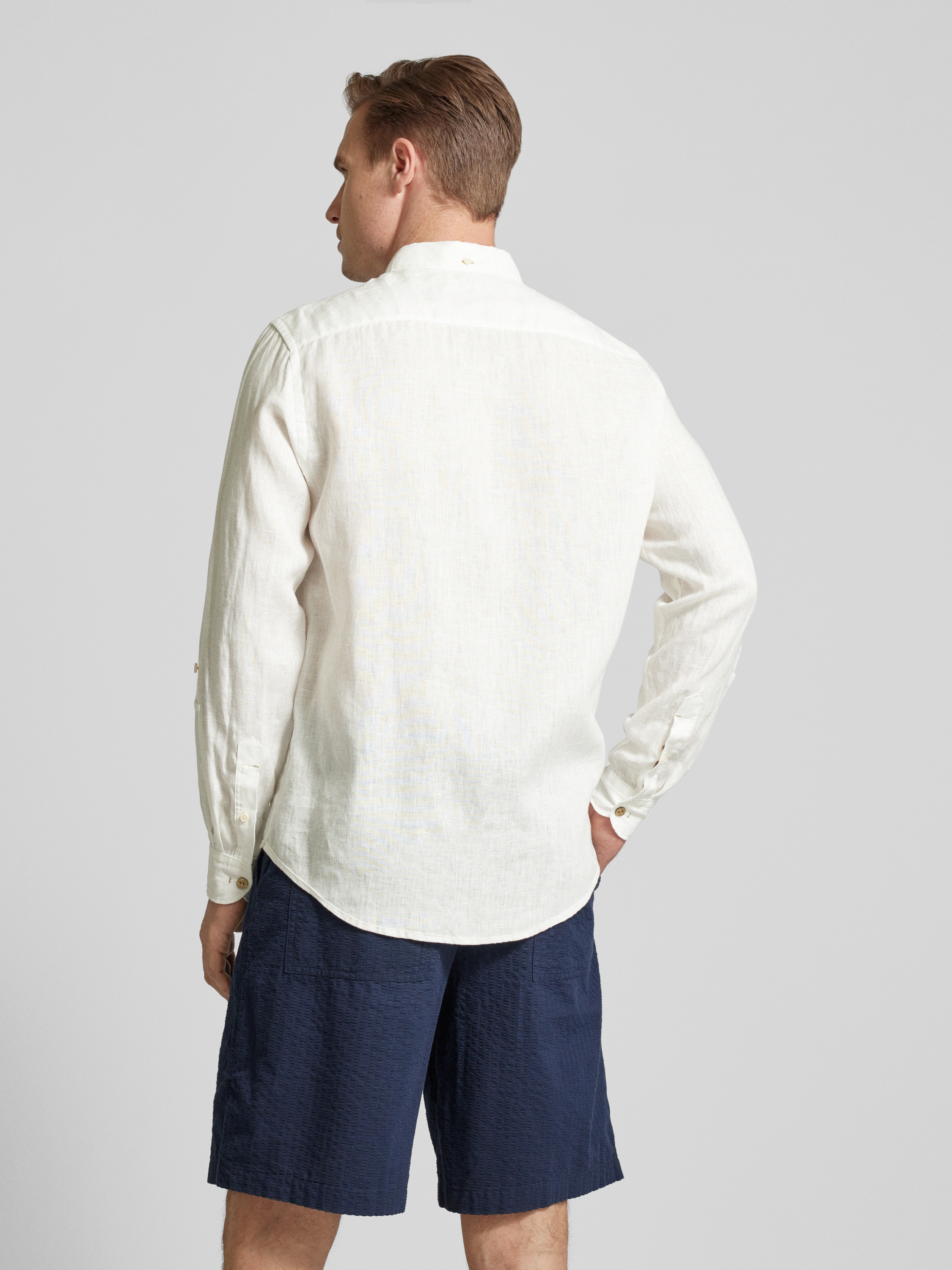 Koszula lniana o kroju regular fit z wyhaftowanym logo - biały