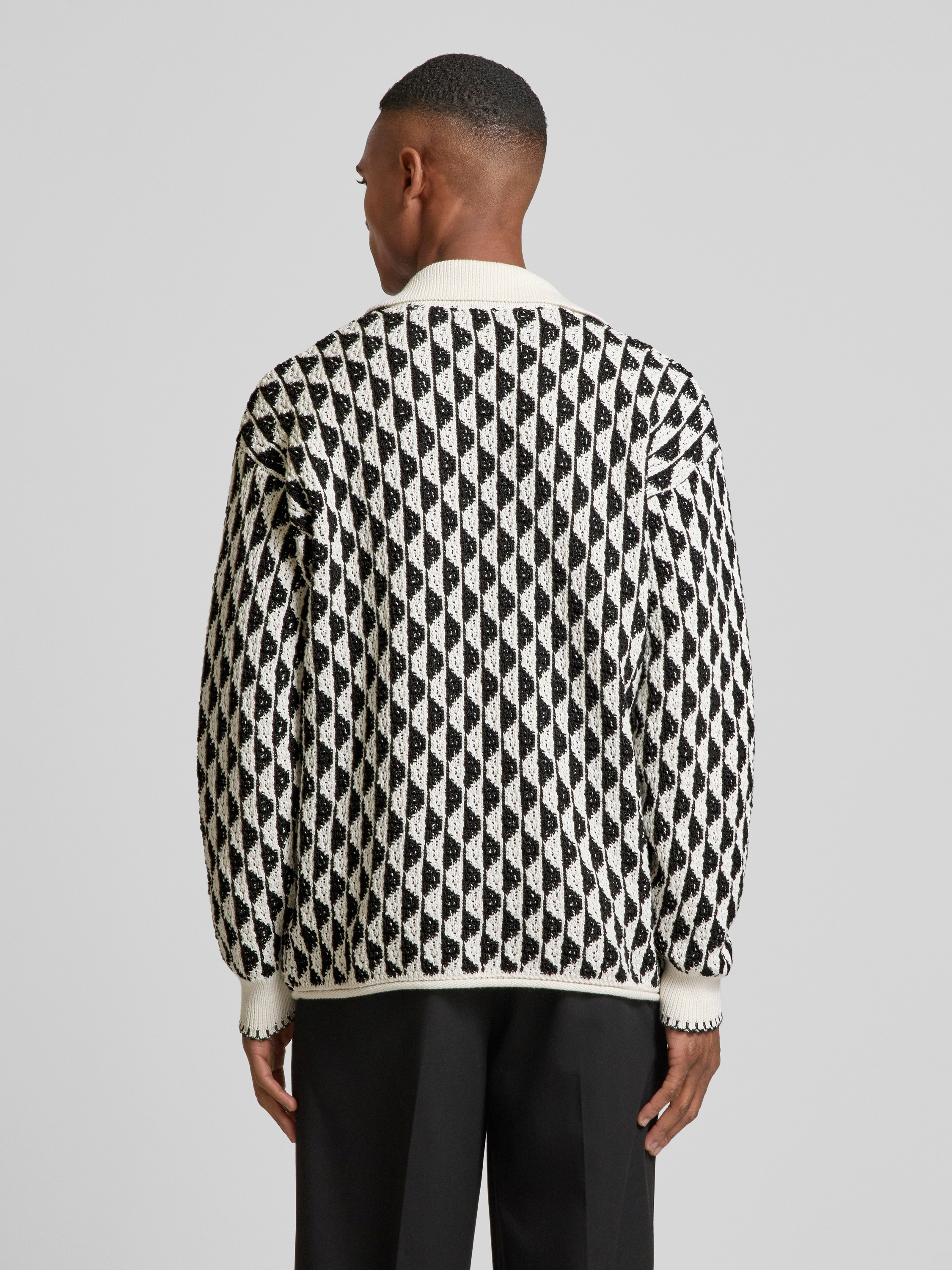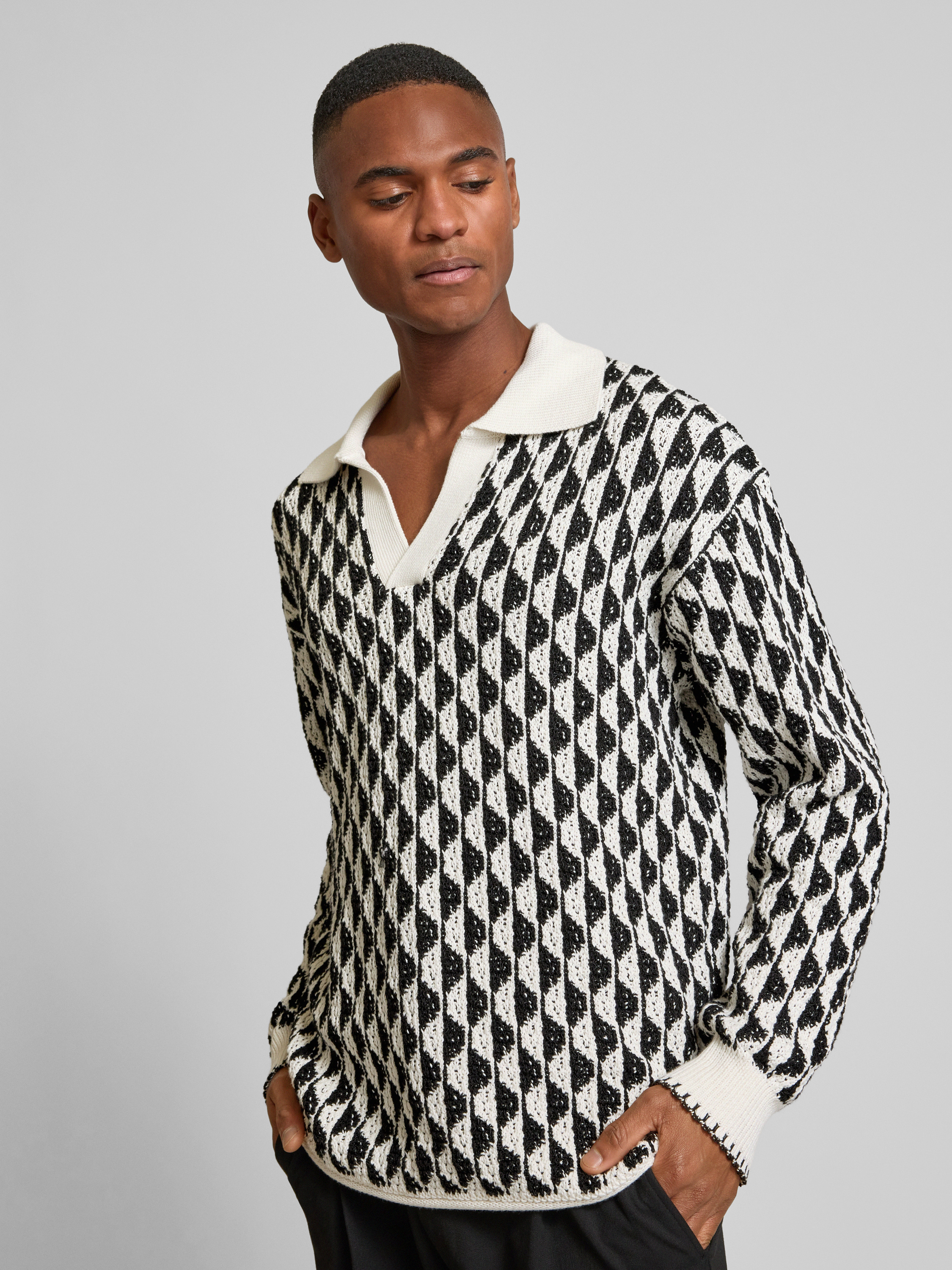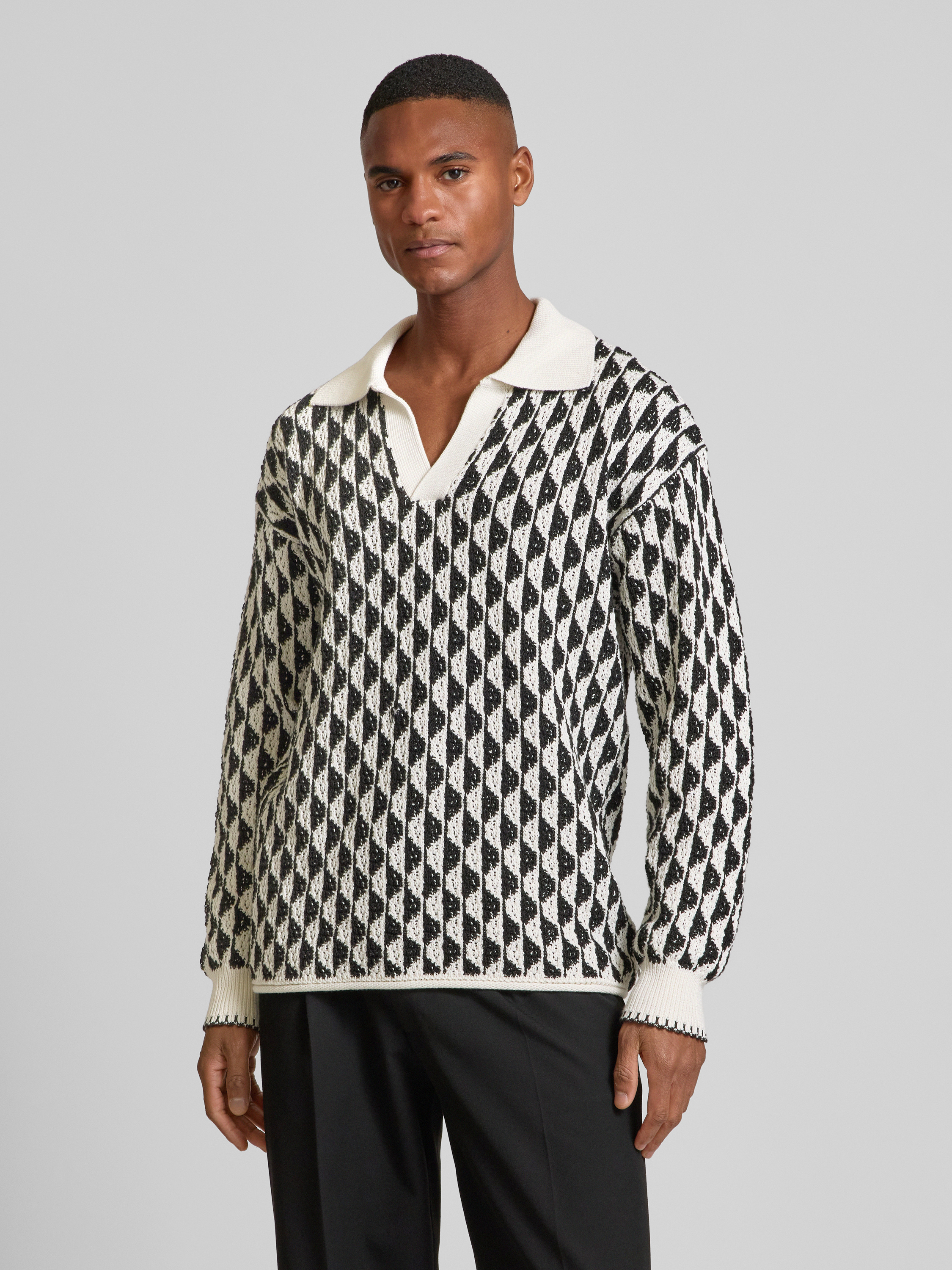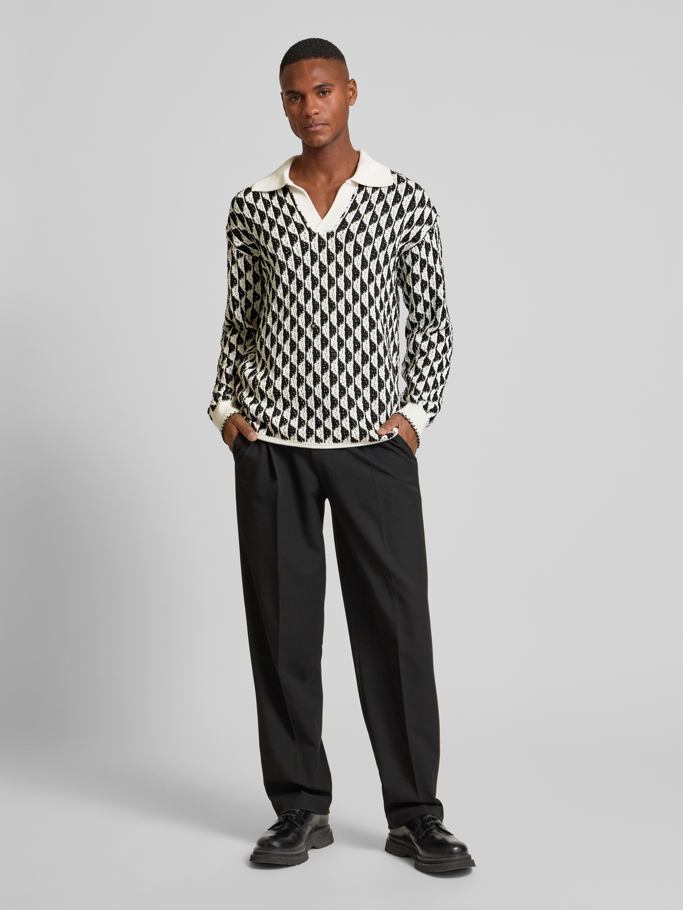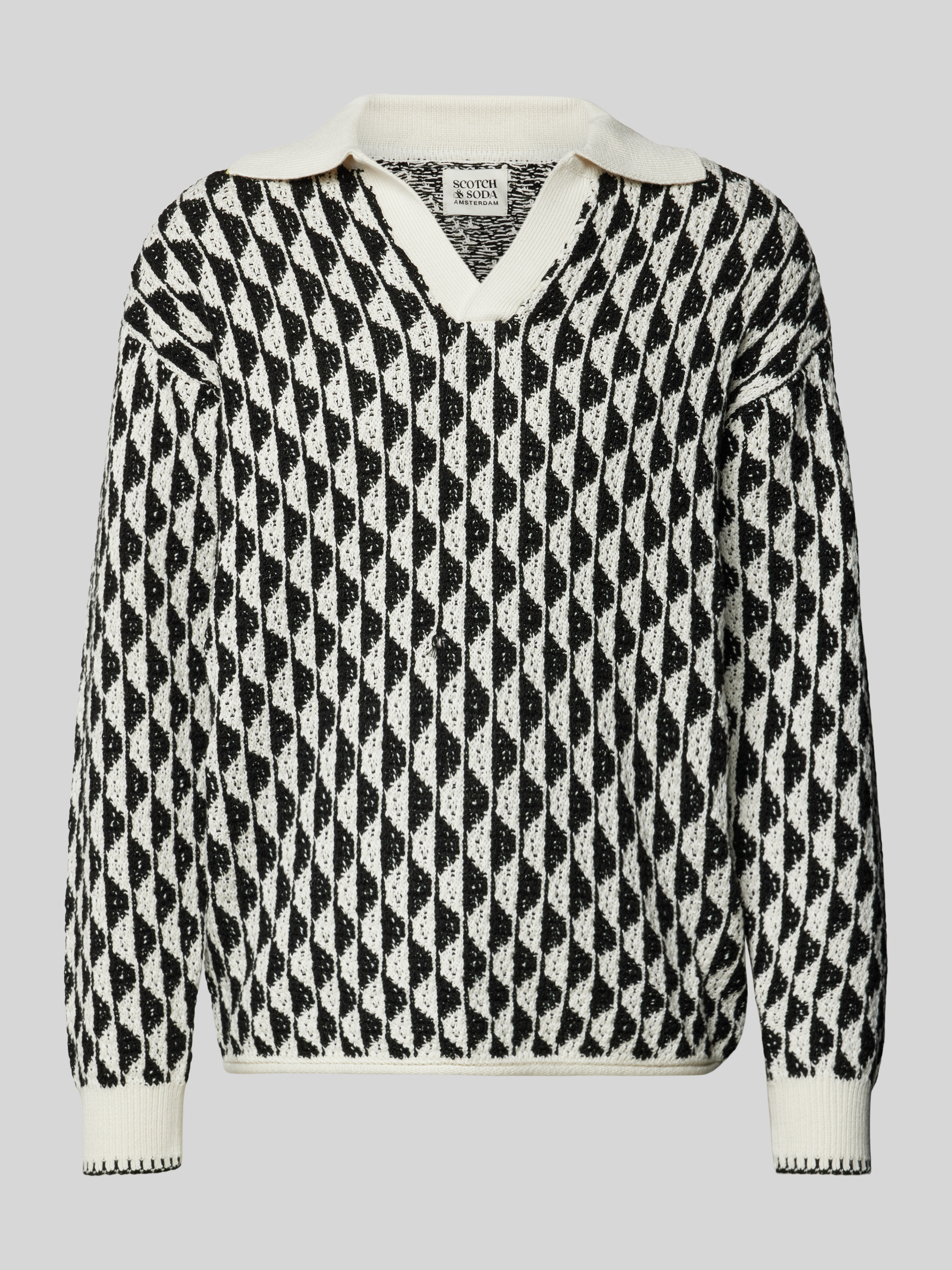 Sweter z dzianiny o kroju oversized z dekoltem w serek model ‘jacquard’ - złamany biały