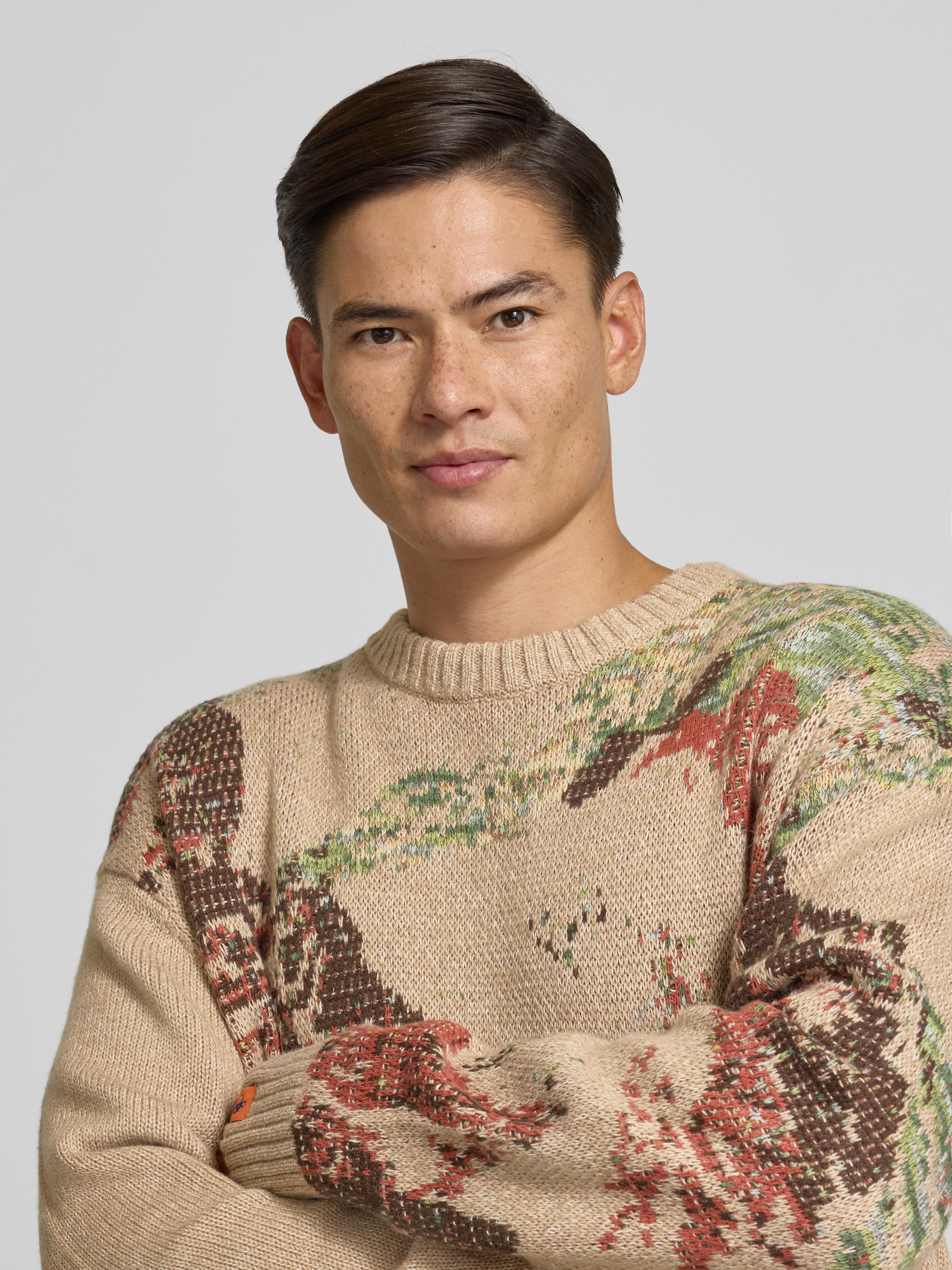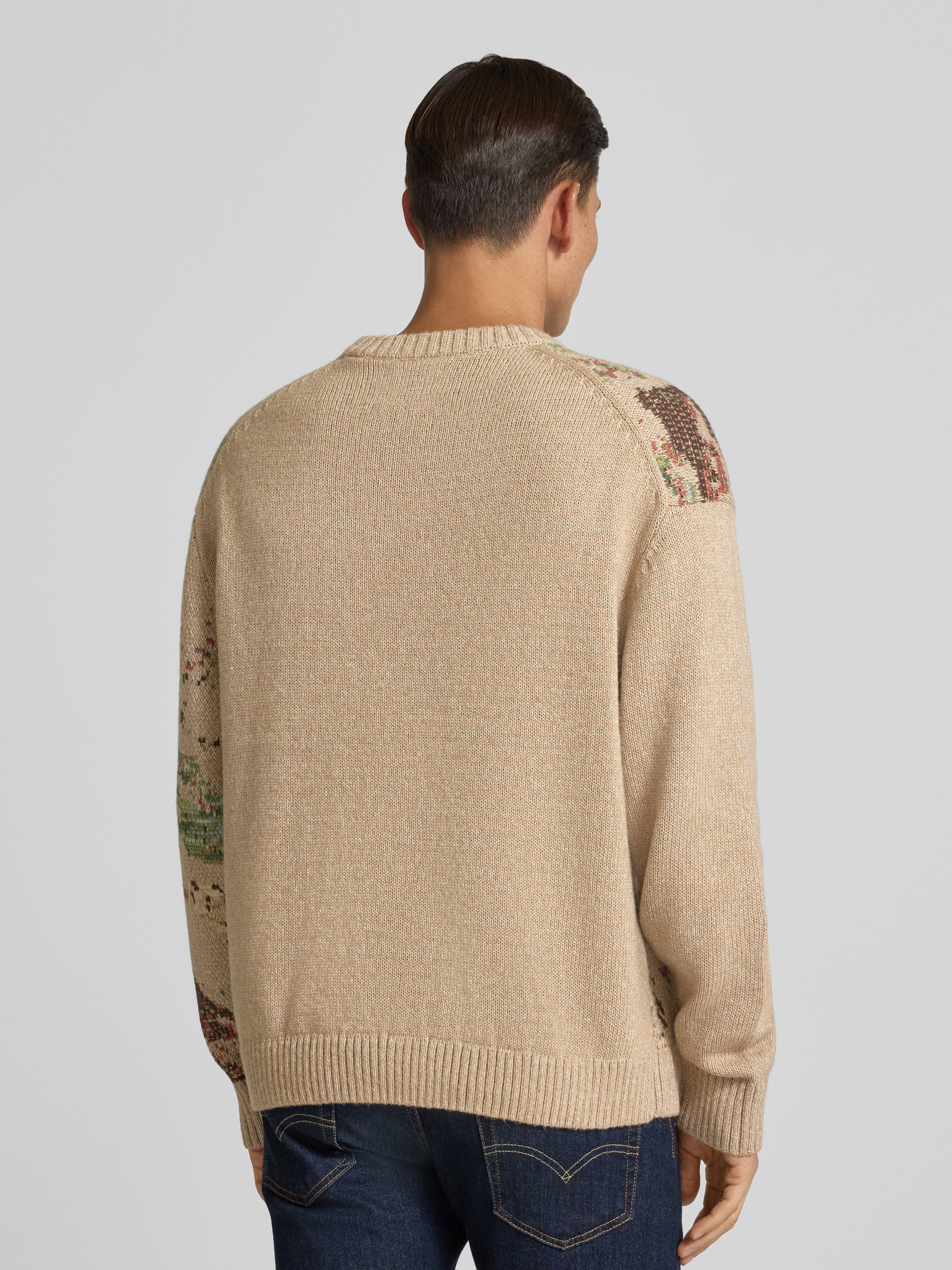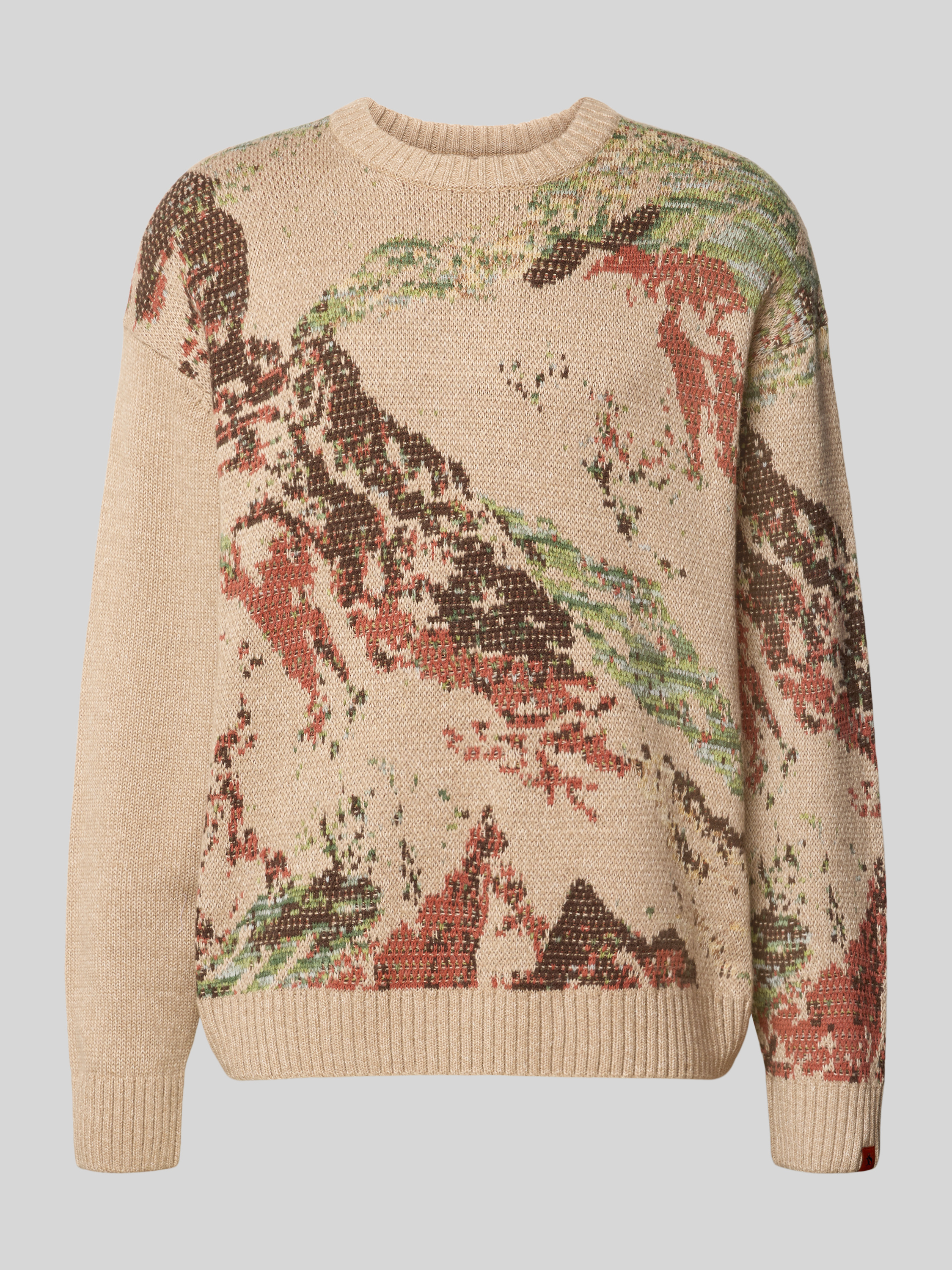 Sweter z dzianiny z prążkowanymi wykończeniami - średniobrązowy