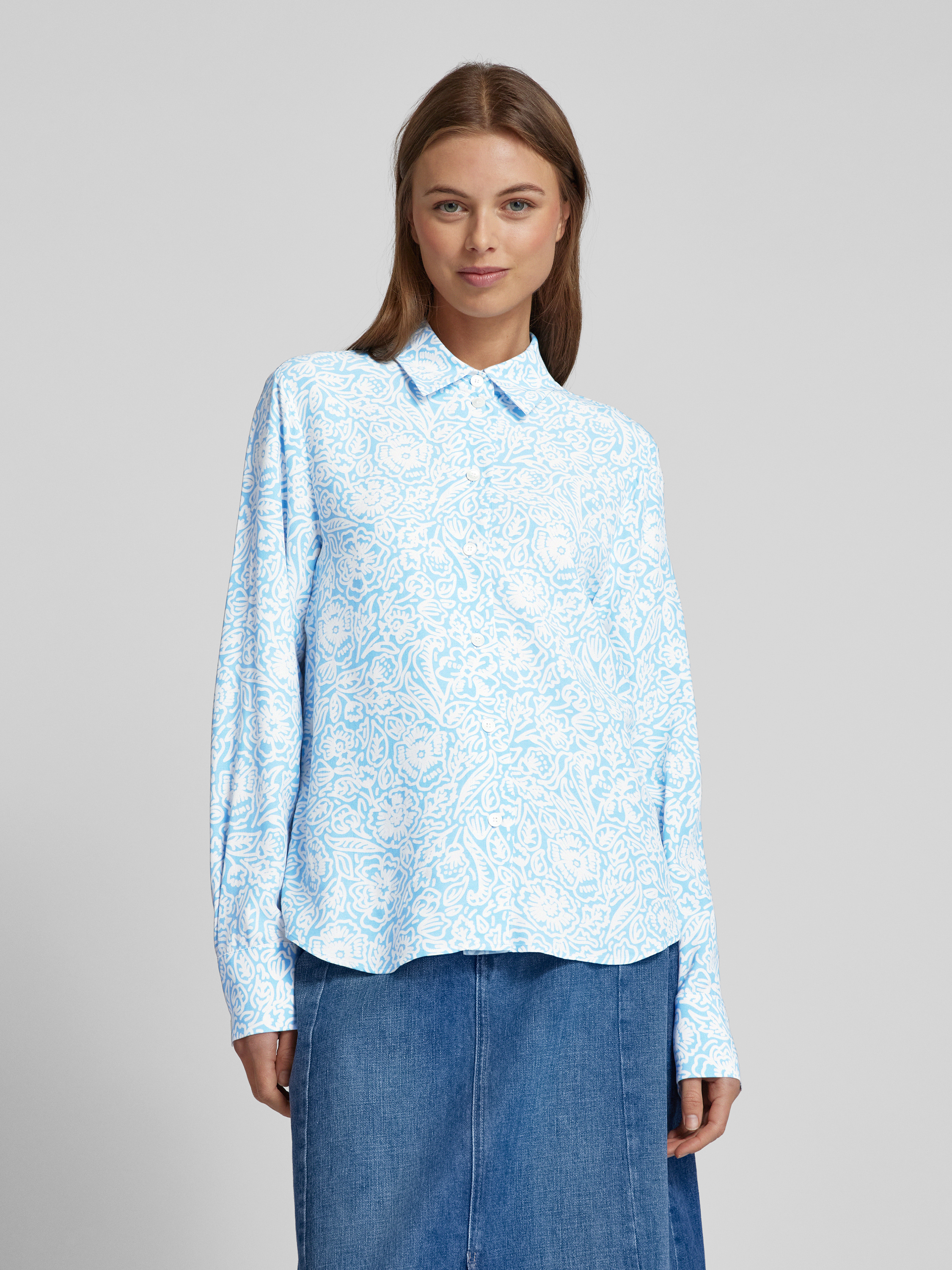 Bluzka koszulowa o kroju regular fit z listwą guzikową na całej długości - jasnoniebieski