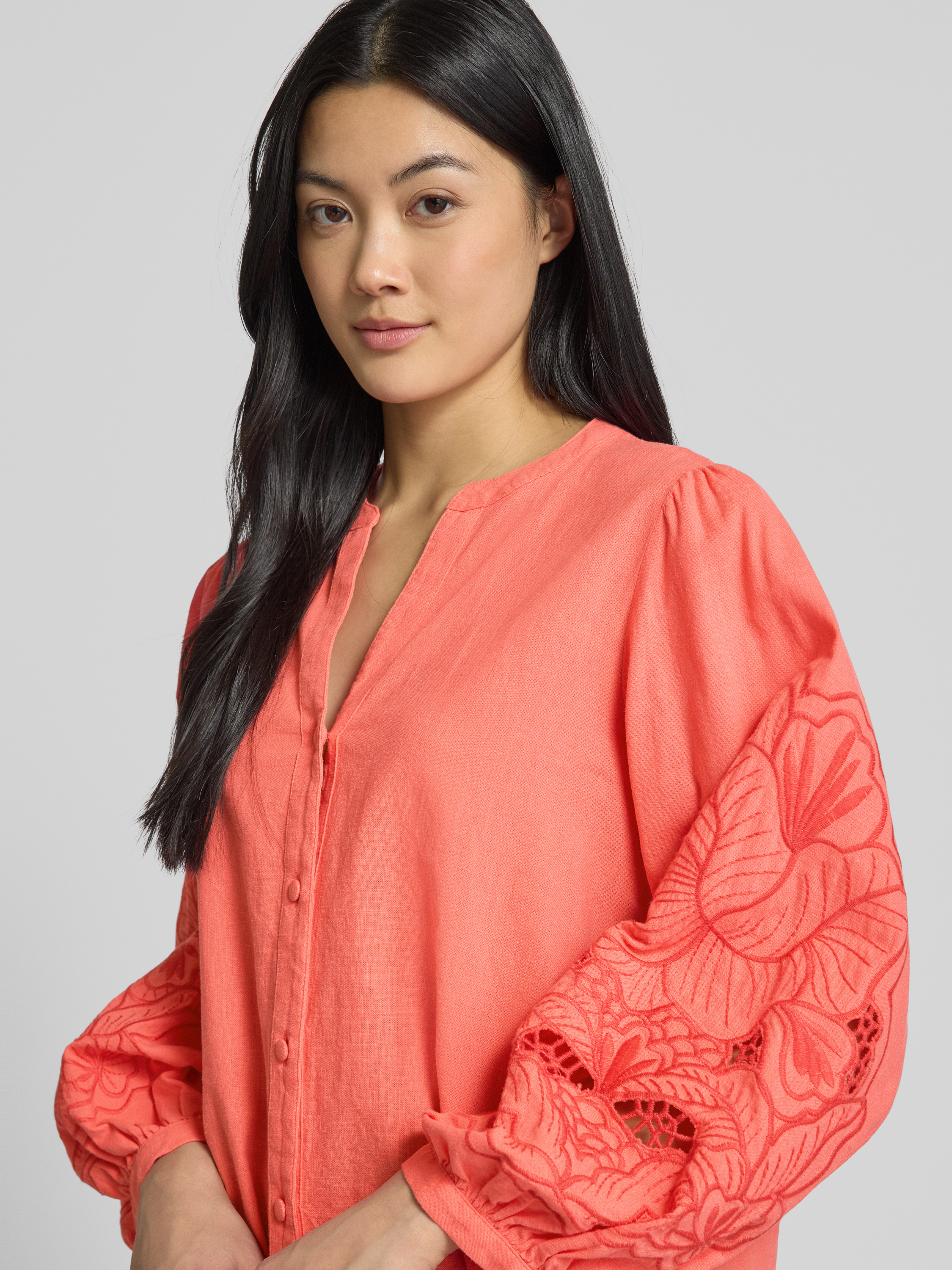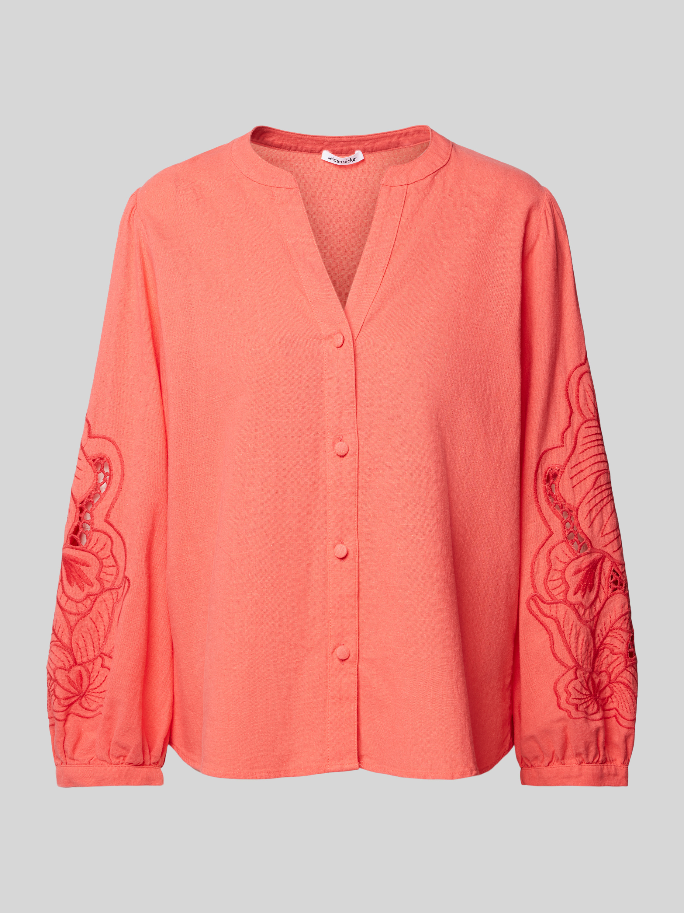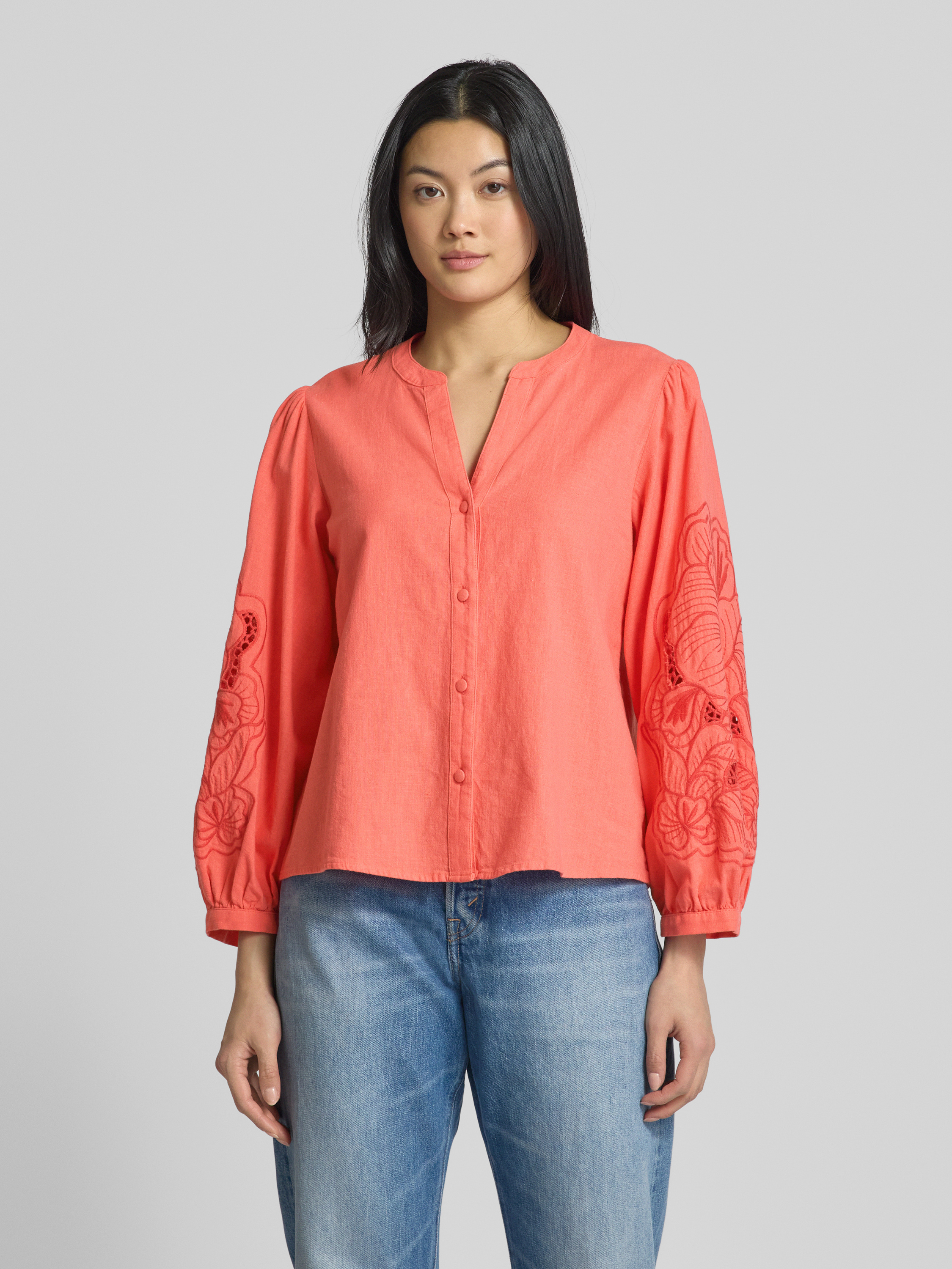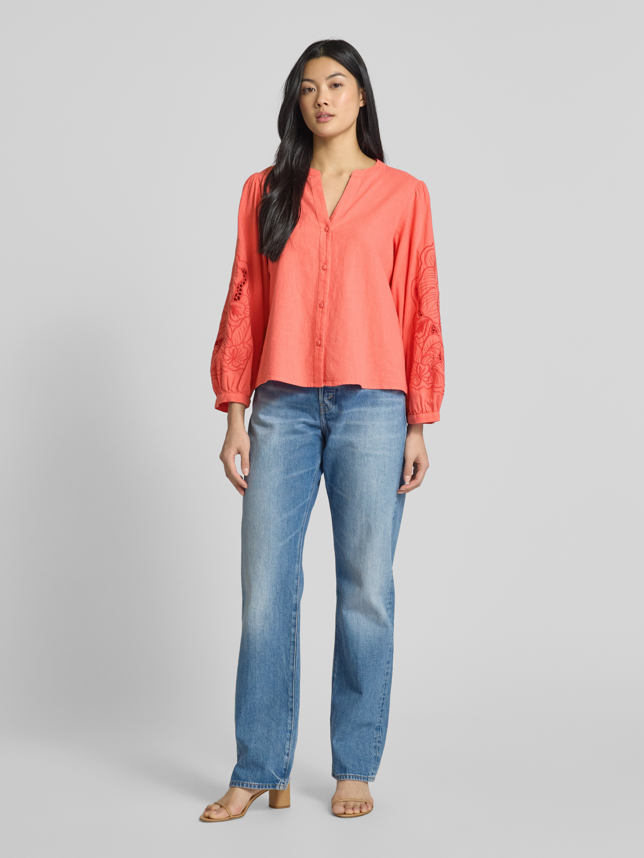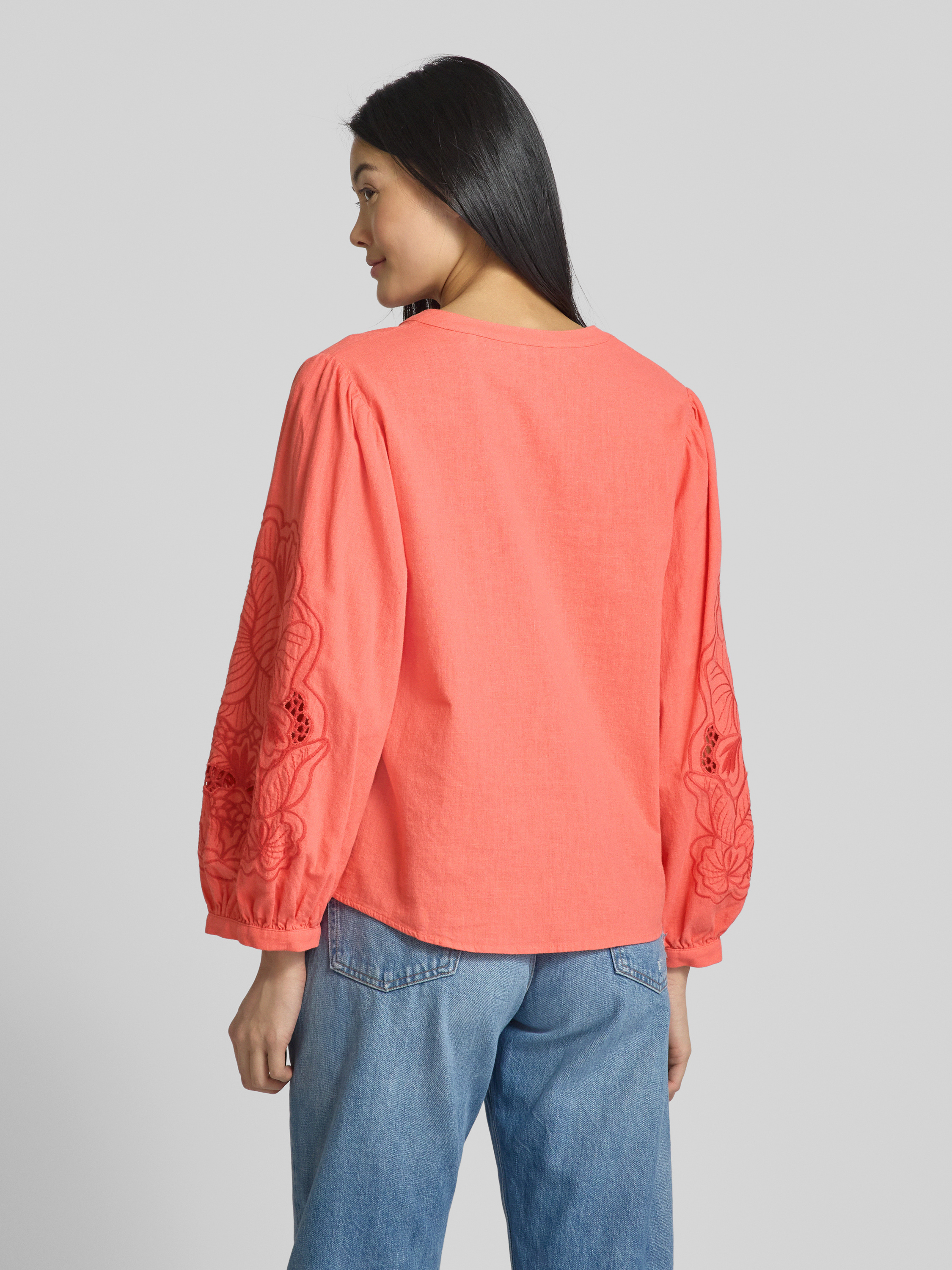 Bluzka o kroju regular fit z haftem angielskim - koralowy