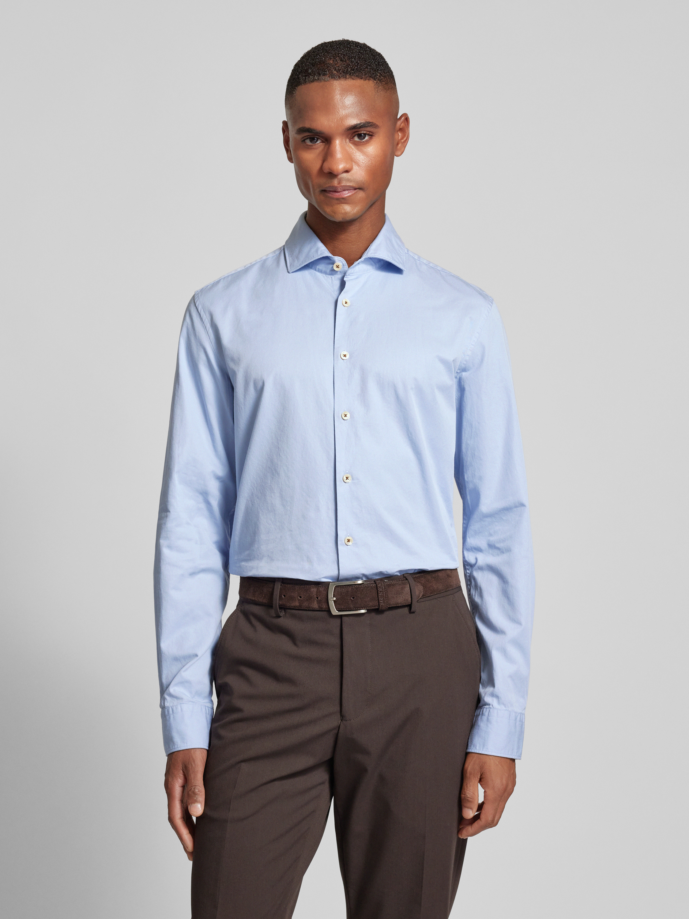 Koszula biznesowa o kroju regular fit z kołnierzykiem typu kent - błękitny