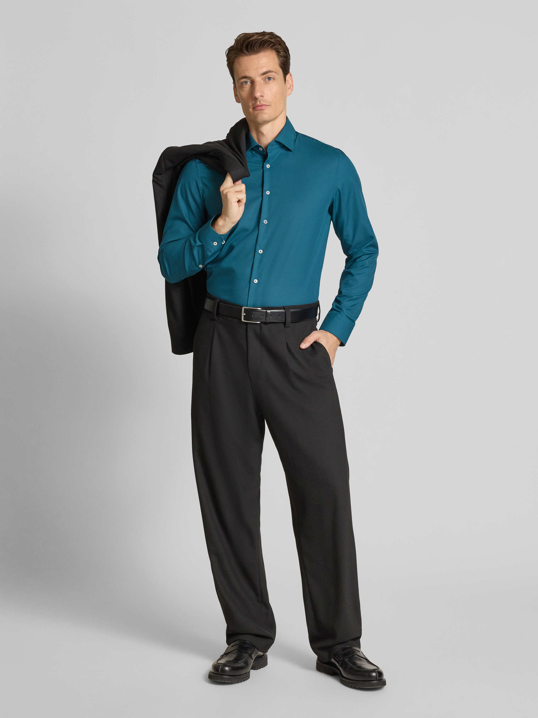 Koszula biznesowa o kroju regular fit z kołnierzykiem typu kent model ‘New’ - petrol