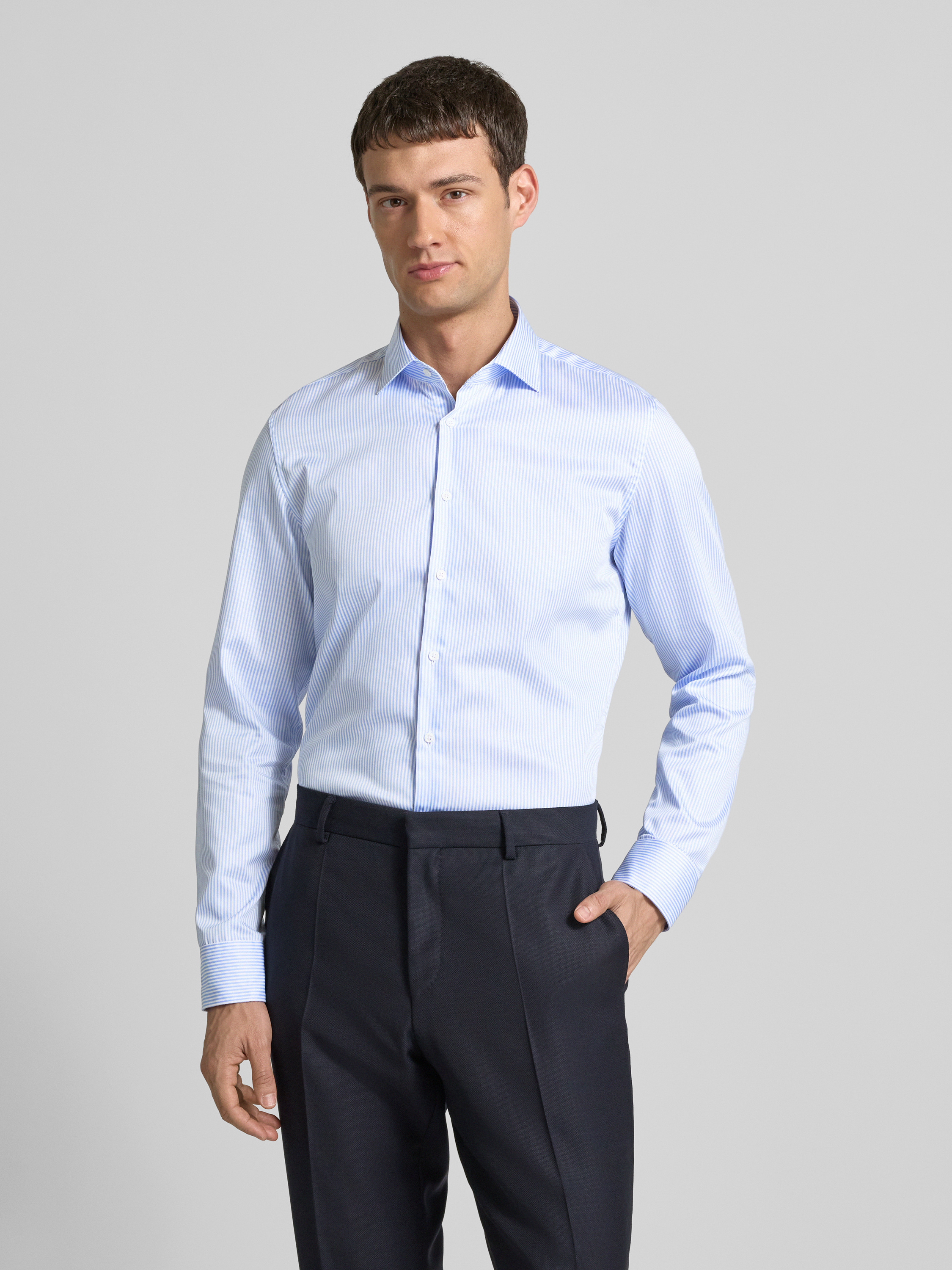 Koszula biznesowa o kroju slim fit z kołnierzykiem typu kent - błękitny