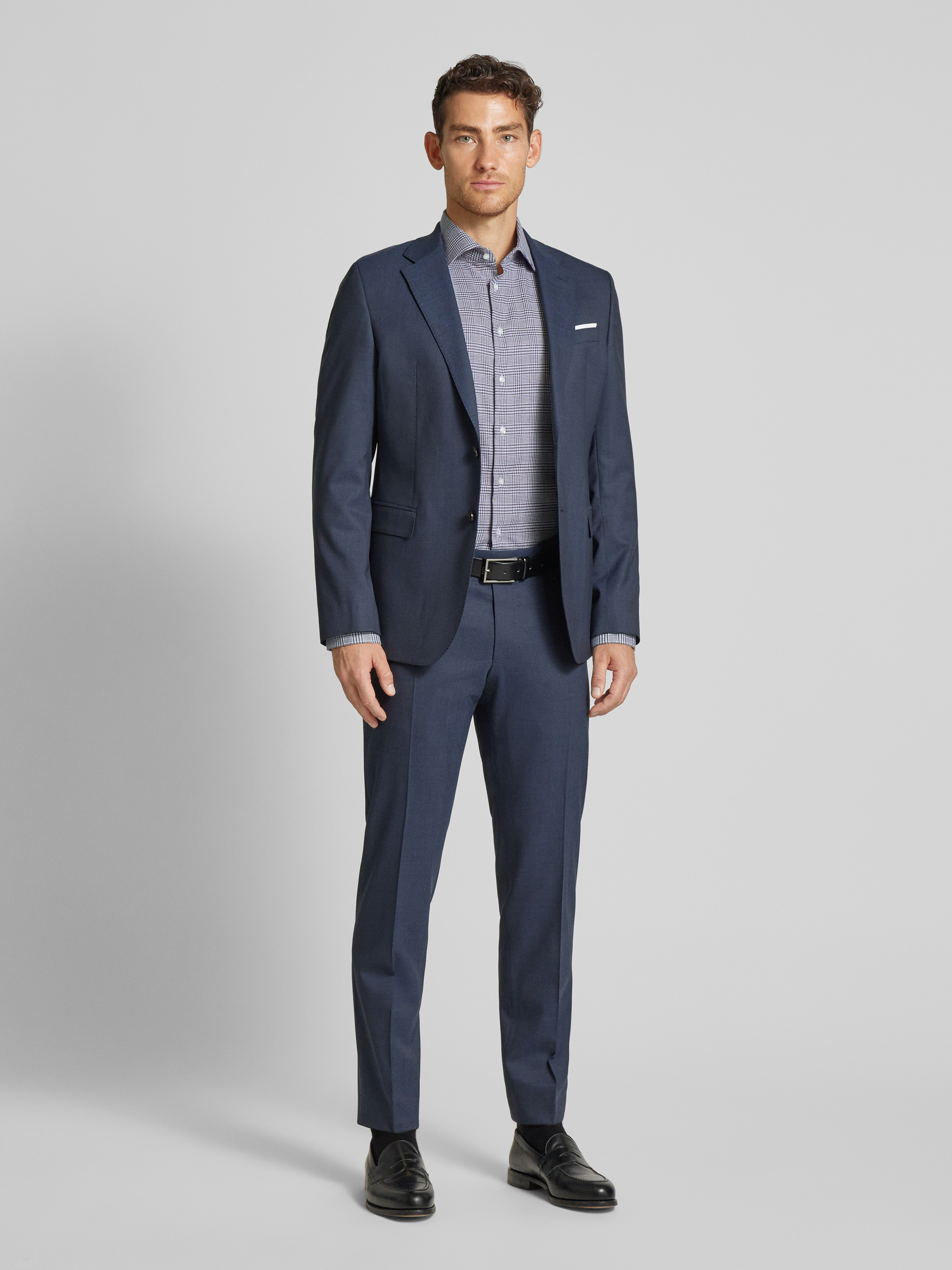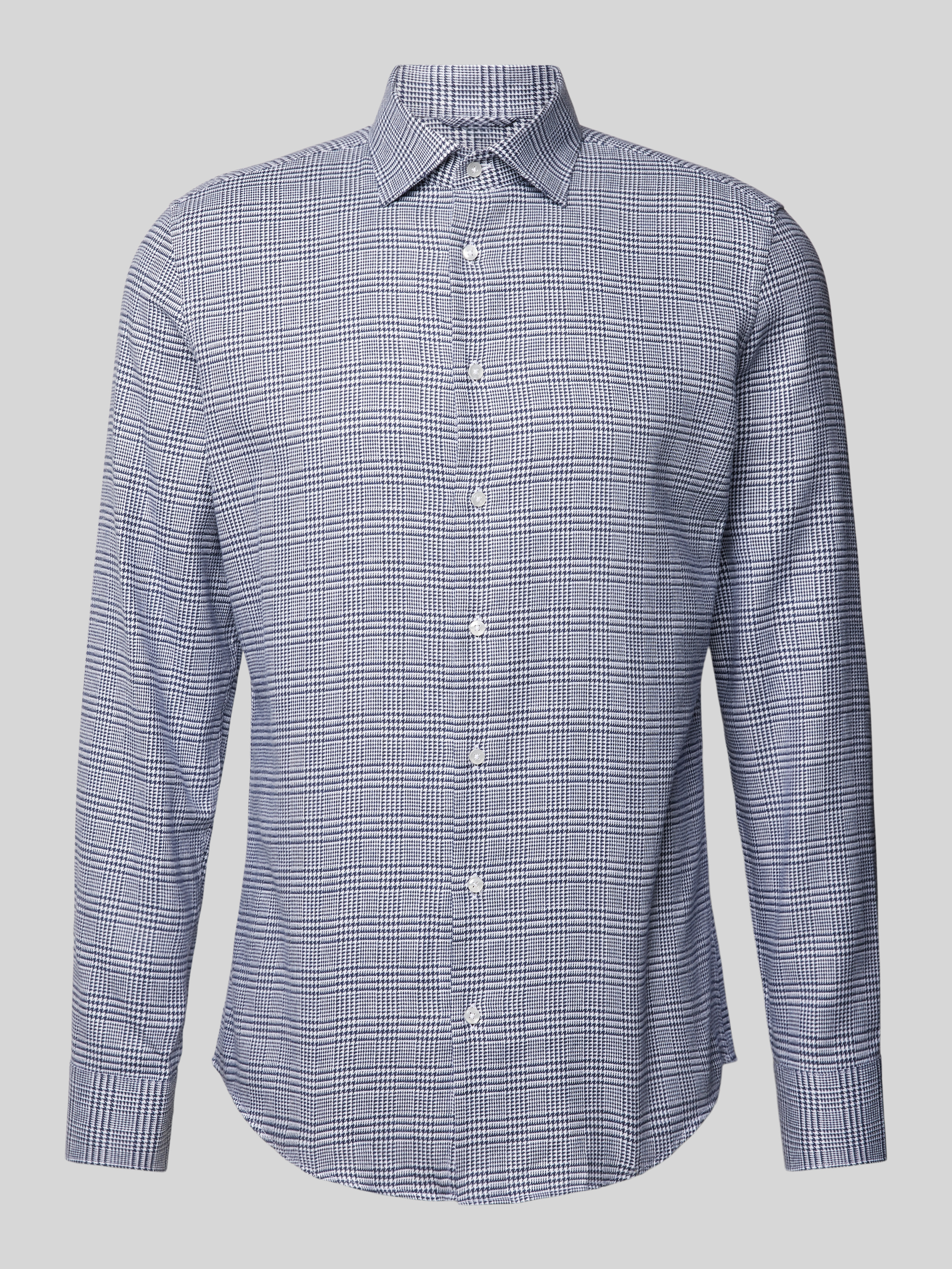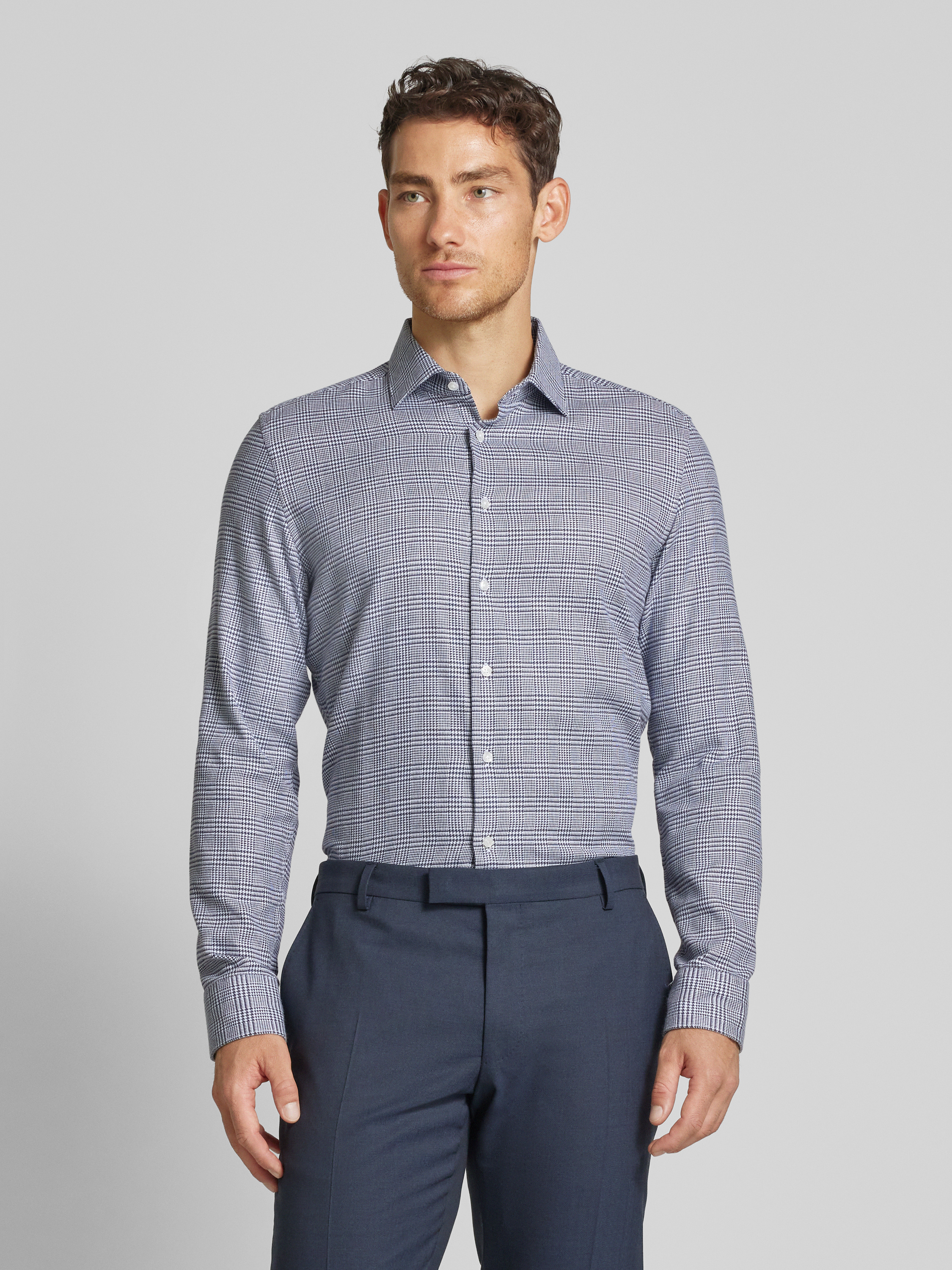 Koszula biznesowa o kroju slim fit z kołnierzykiem typu kent - granatowy
