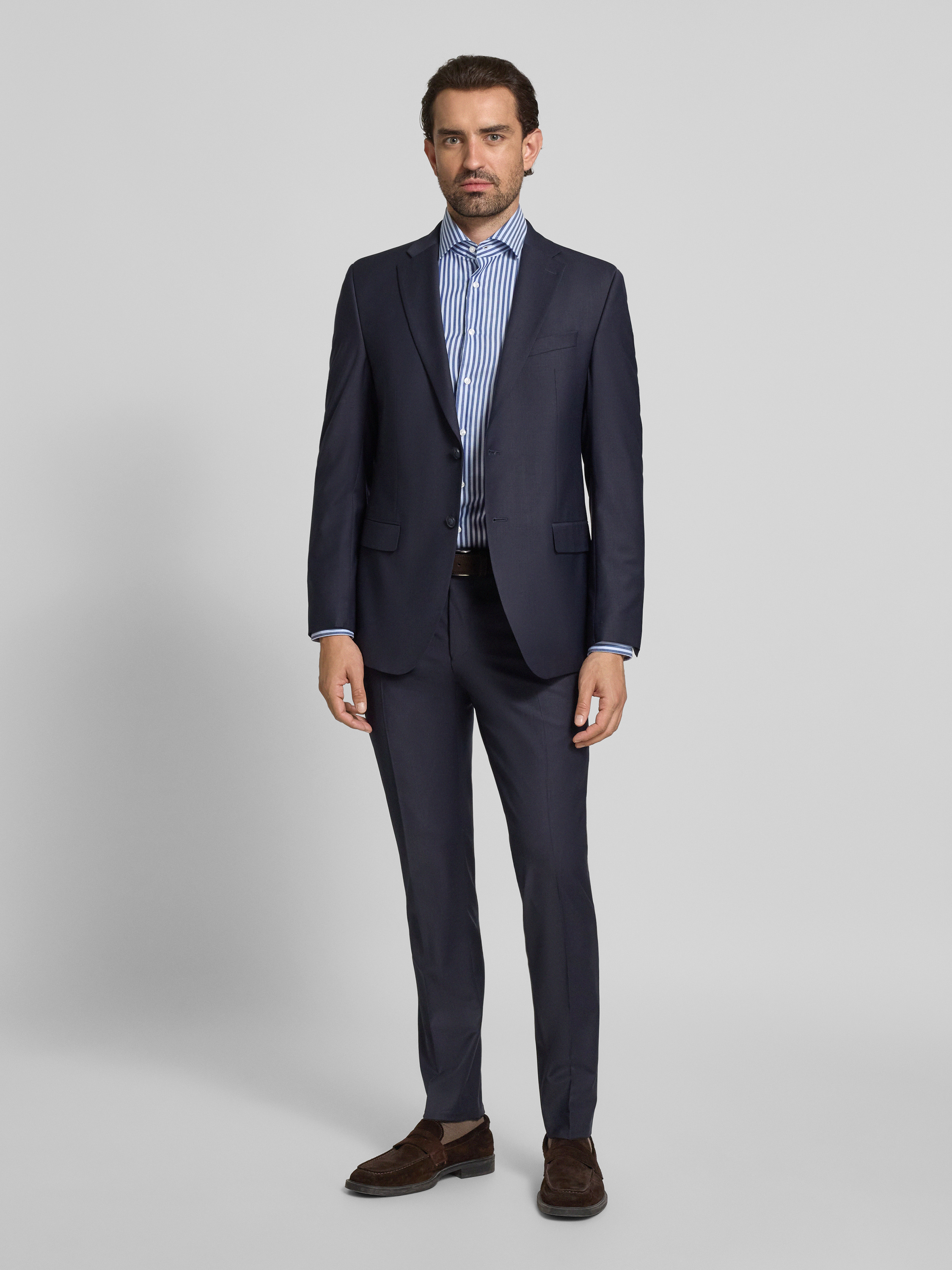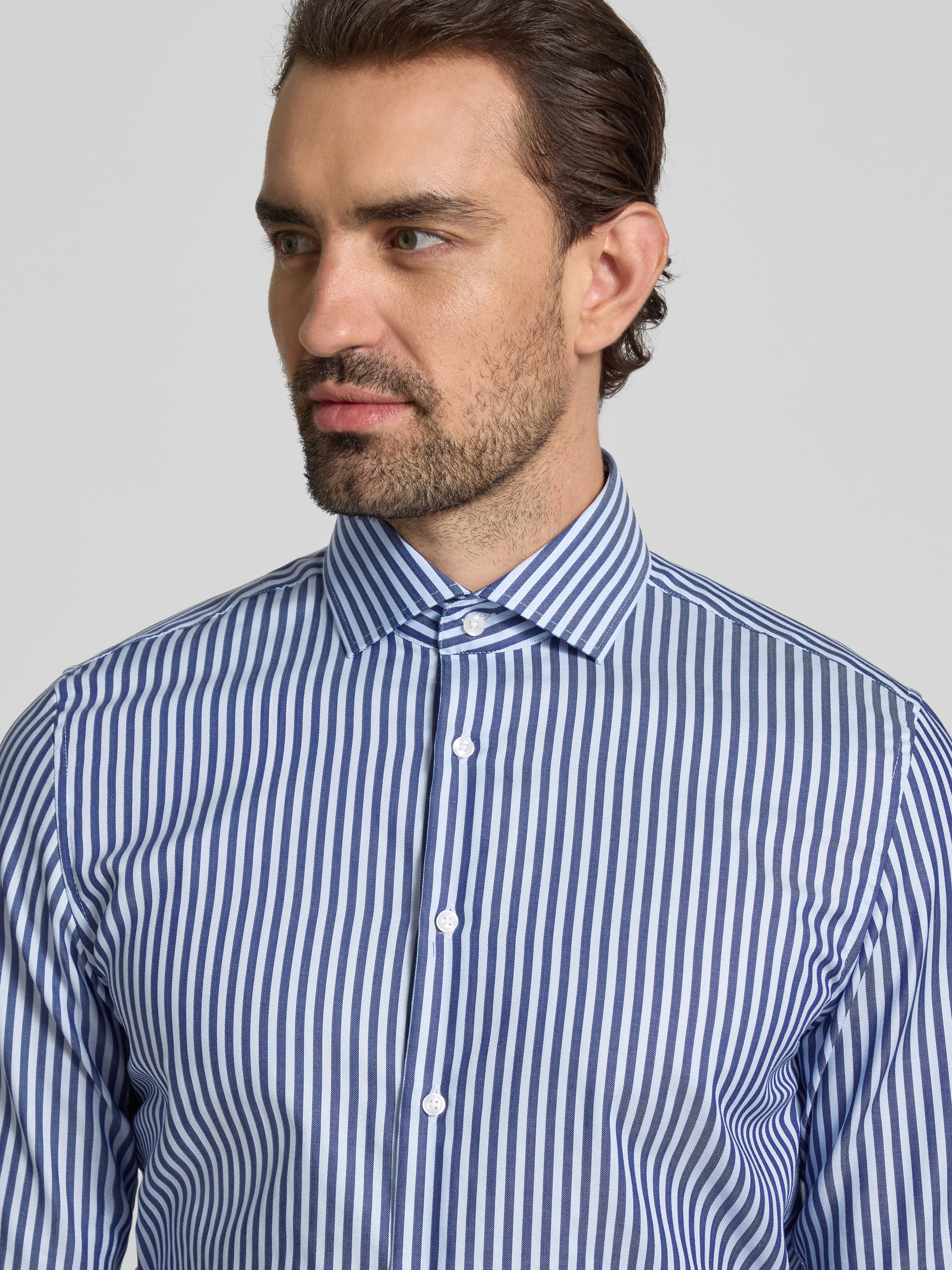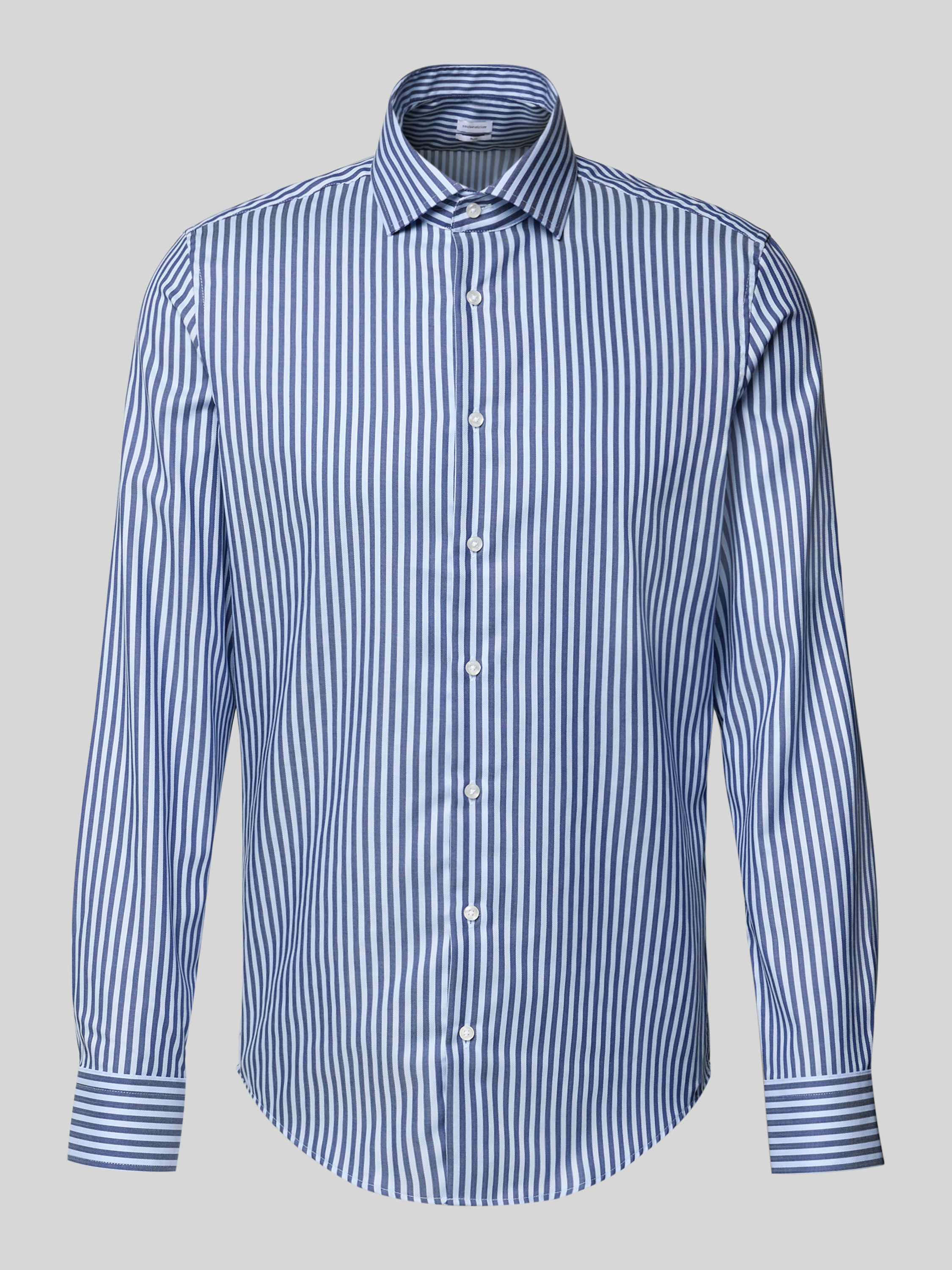 Koszula biznesowa o kroju slim fit z kołnierzykiem typu kent - niebieski