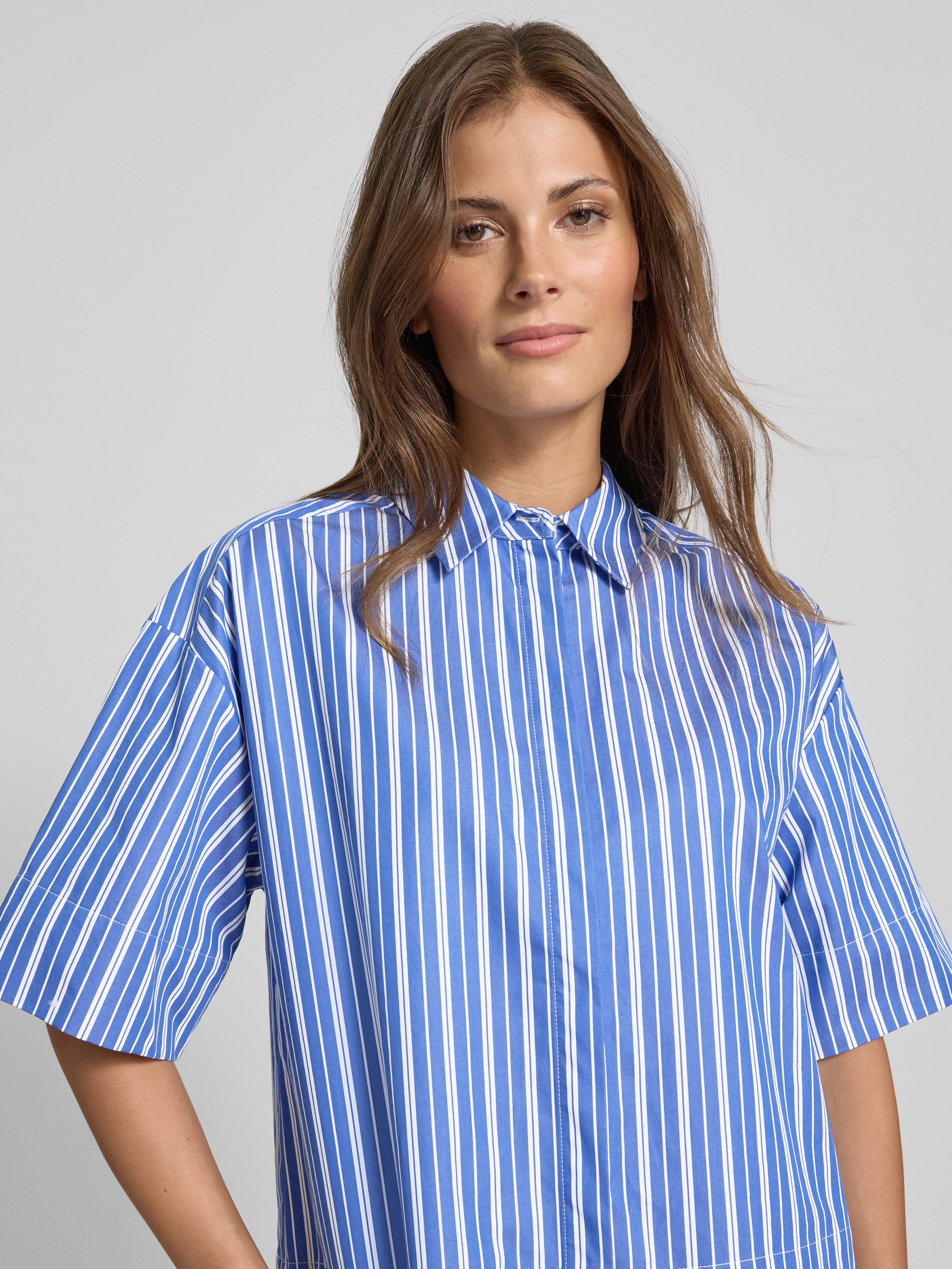 Bluzka koszulowa o pudełkowym kroju z czystej bawełny model ‘FIA’ - królewski niebieski