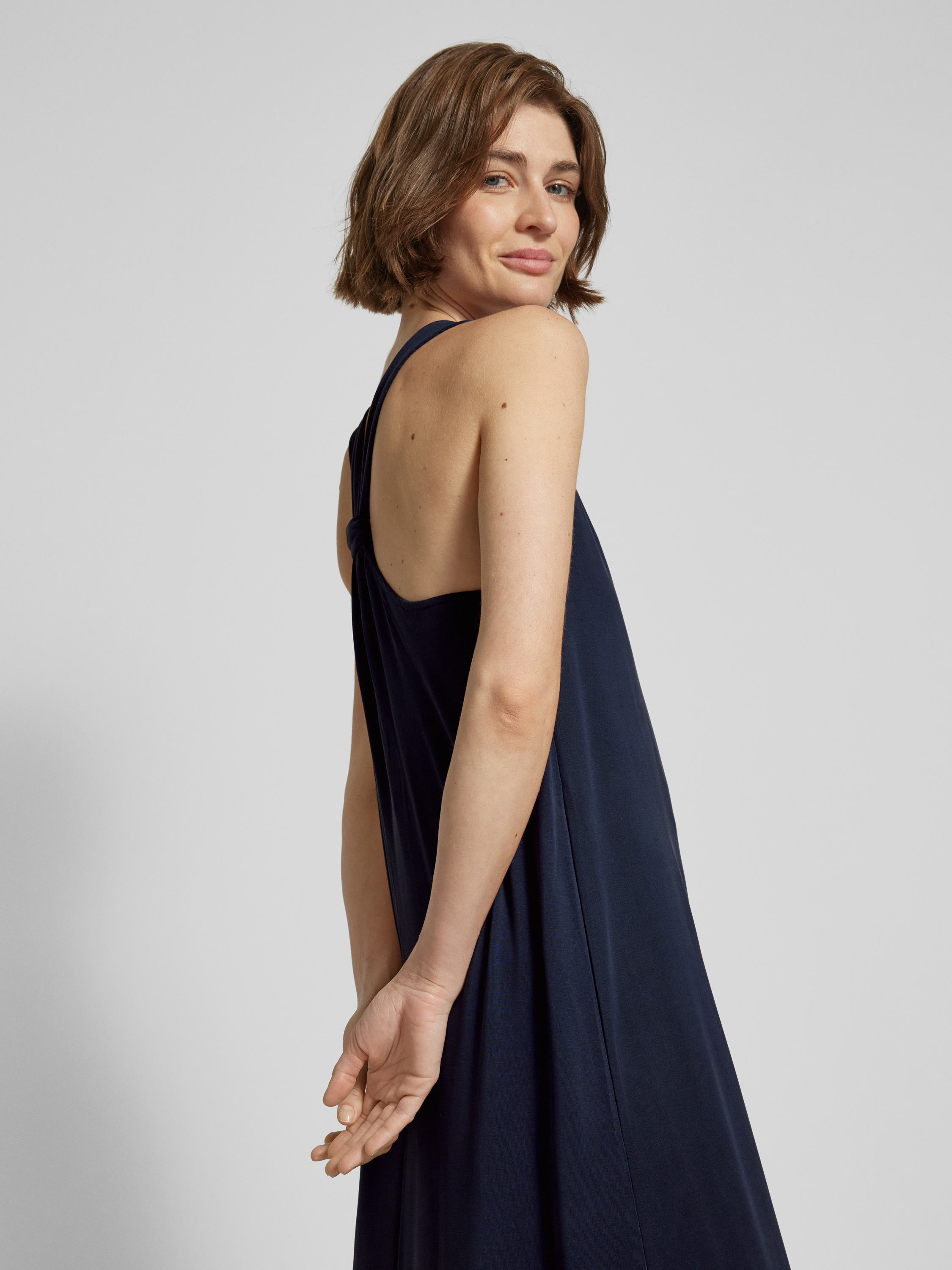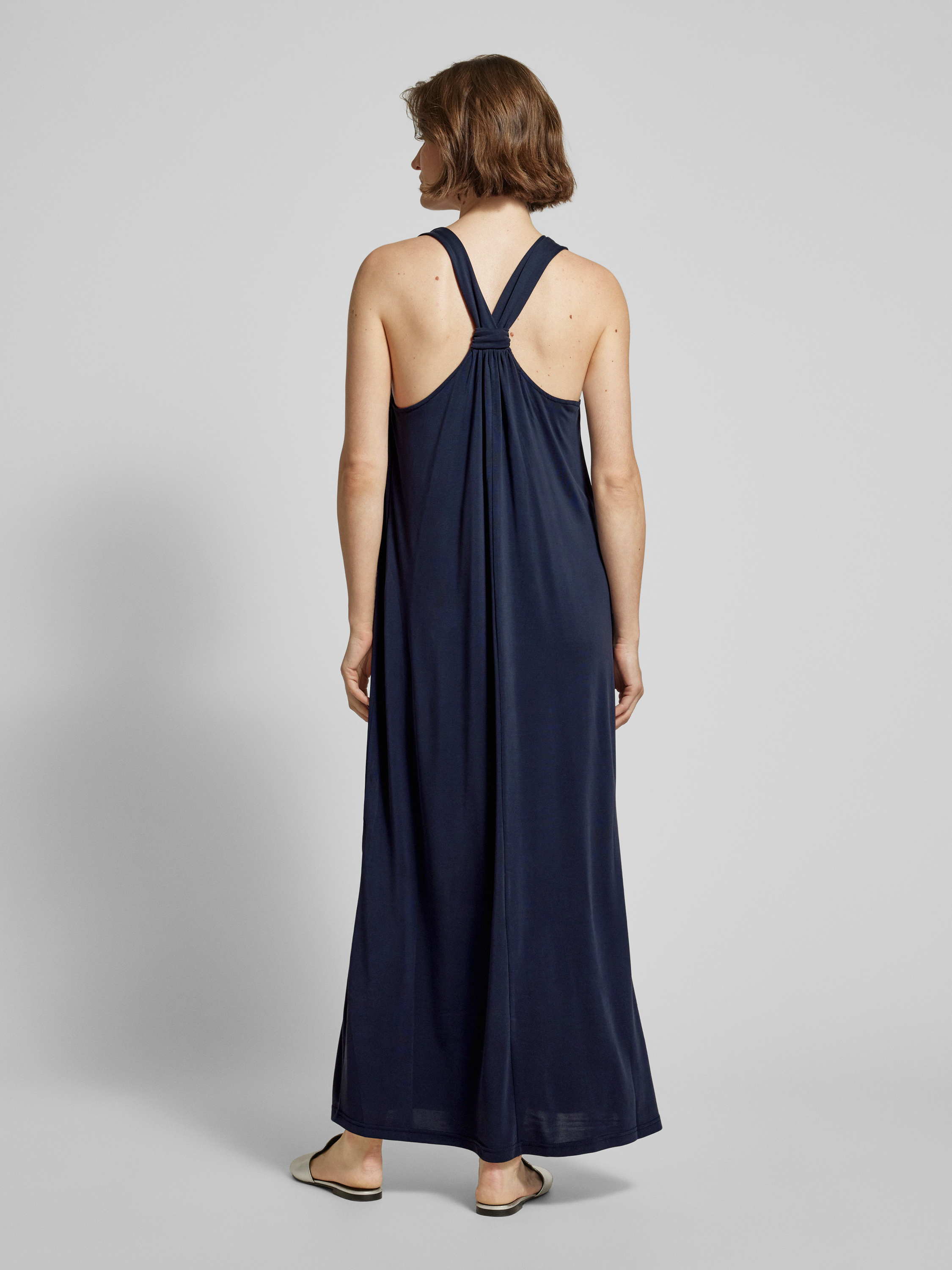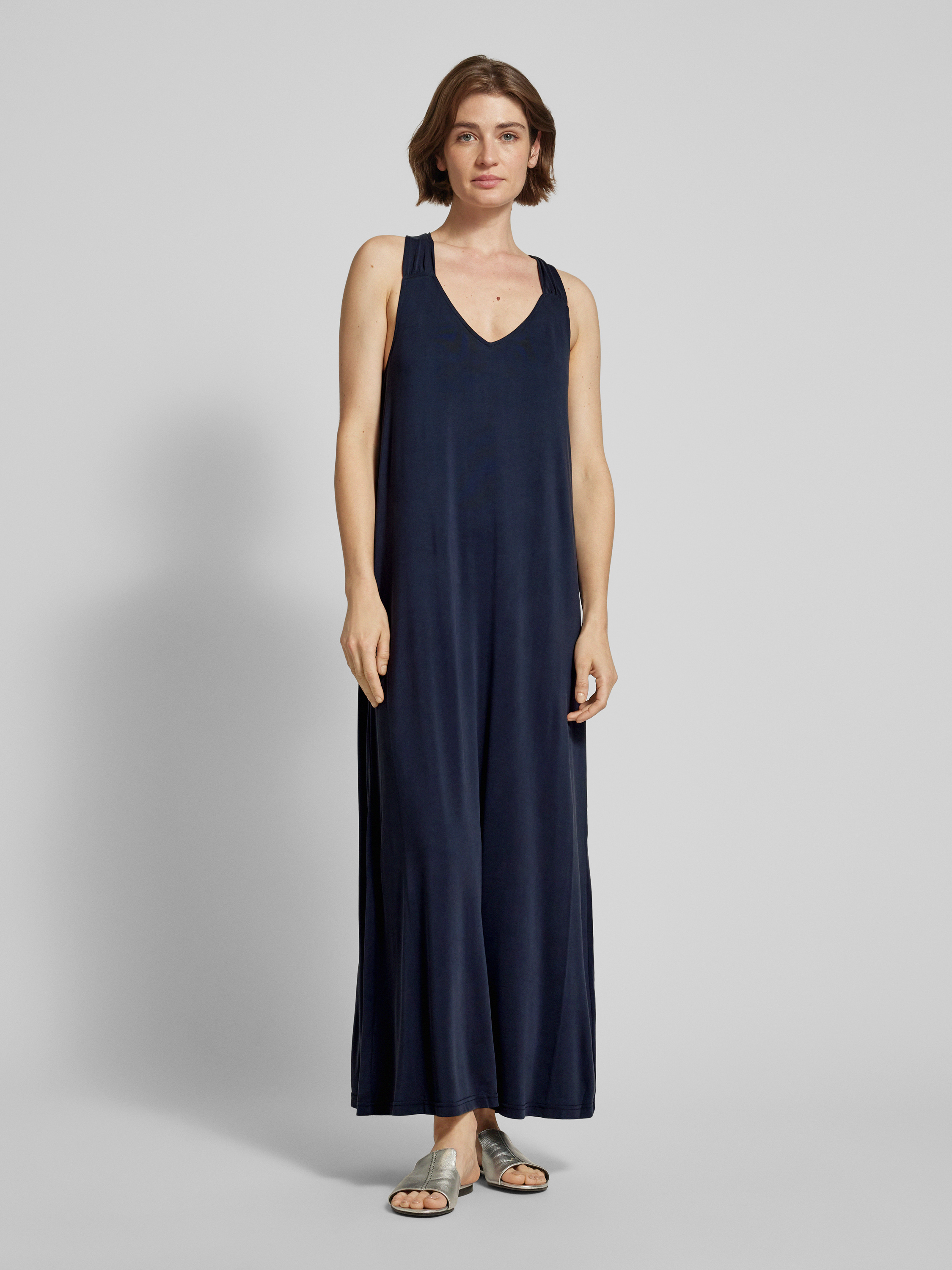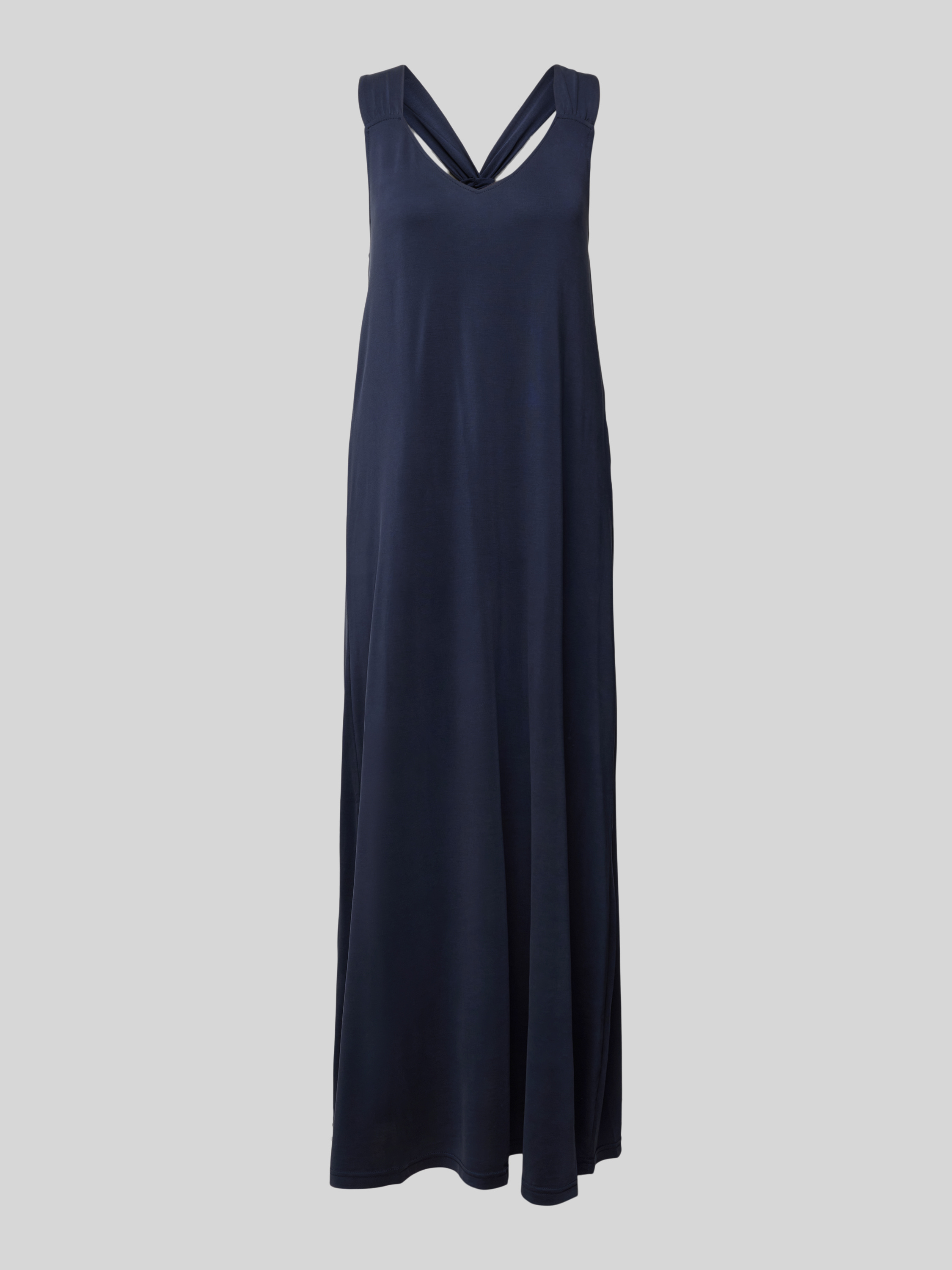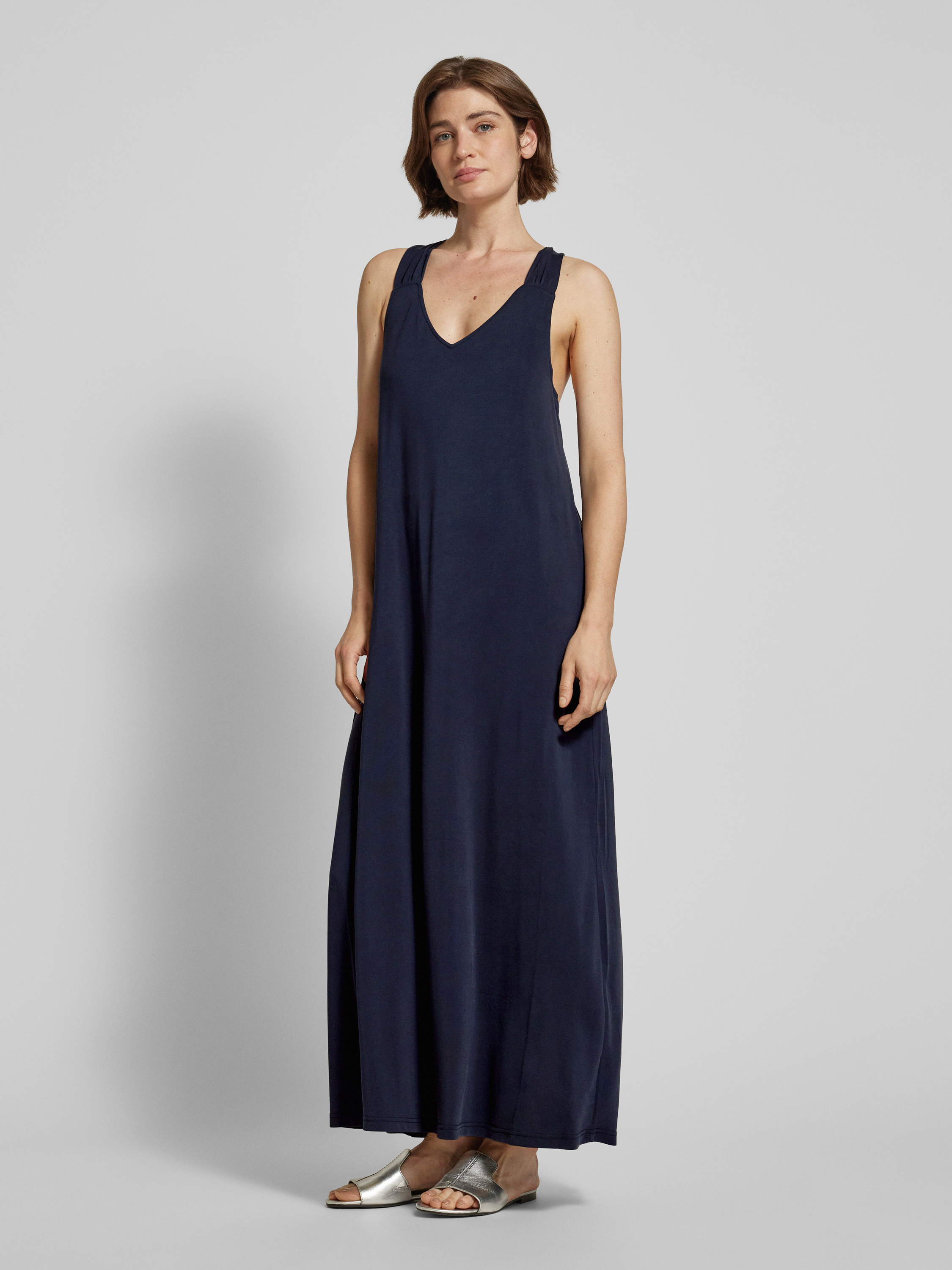Długa sukienka z głębokim dekoltem w serek - niebieski